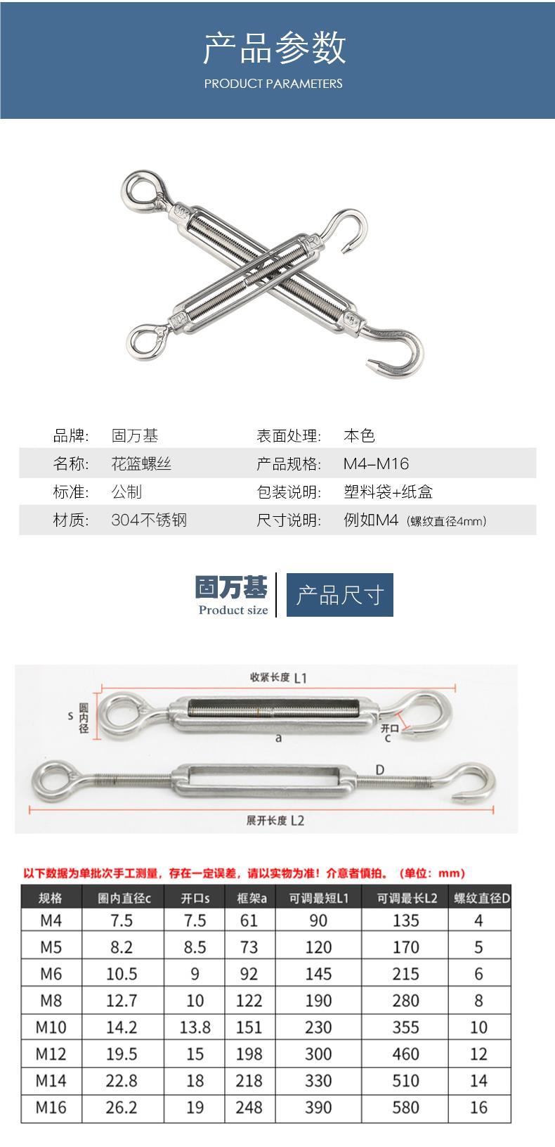 304 스테인레스 스틸 꽃 바구니 스크류 로프 타이너 와이어 로프 타이트너 오픈 바디 꽃 난초 볼트 M4M5M6M8-M16스토어 가기