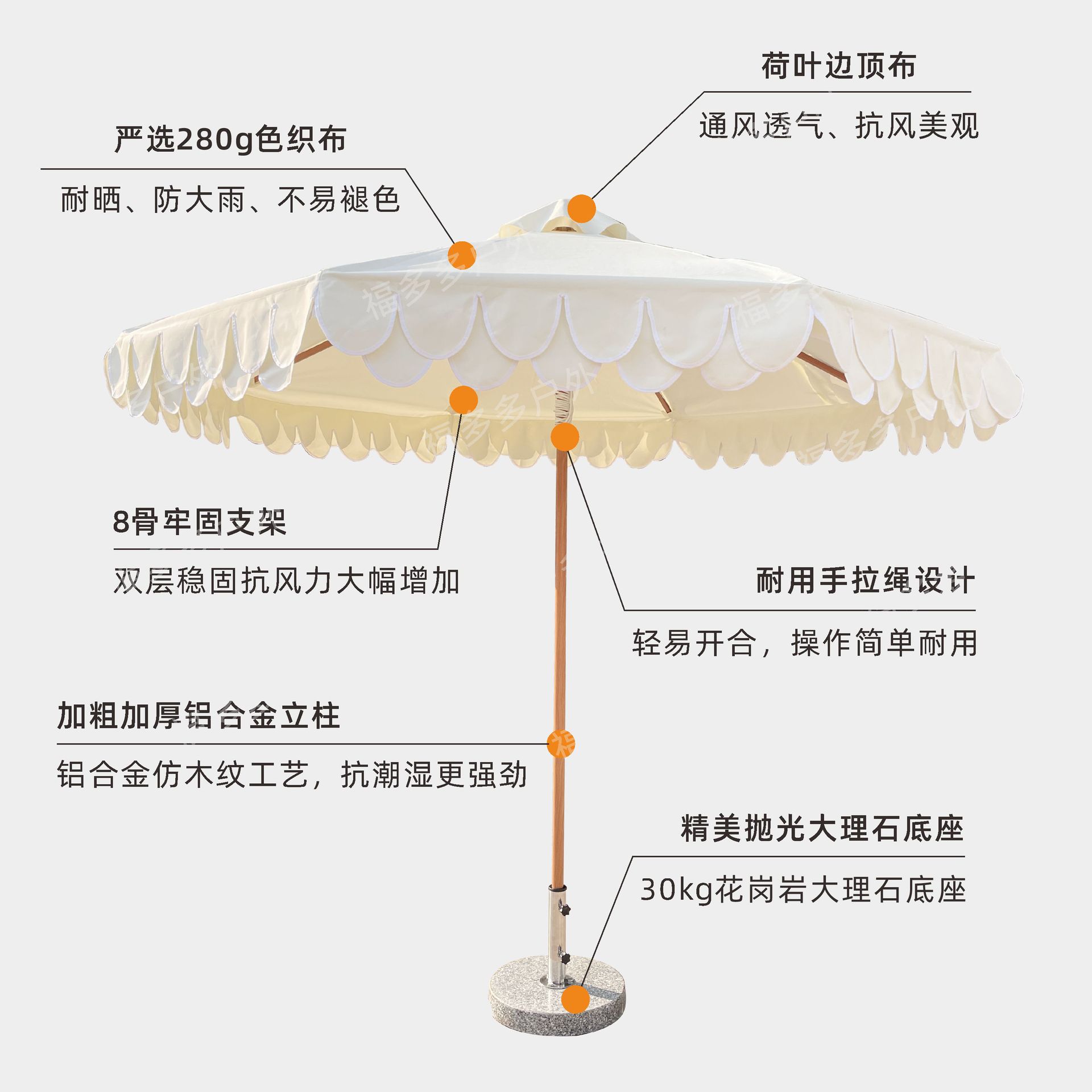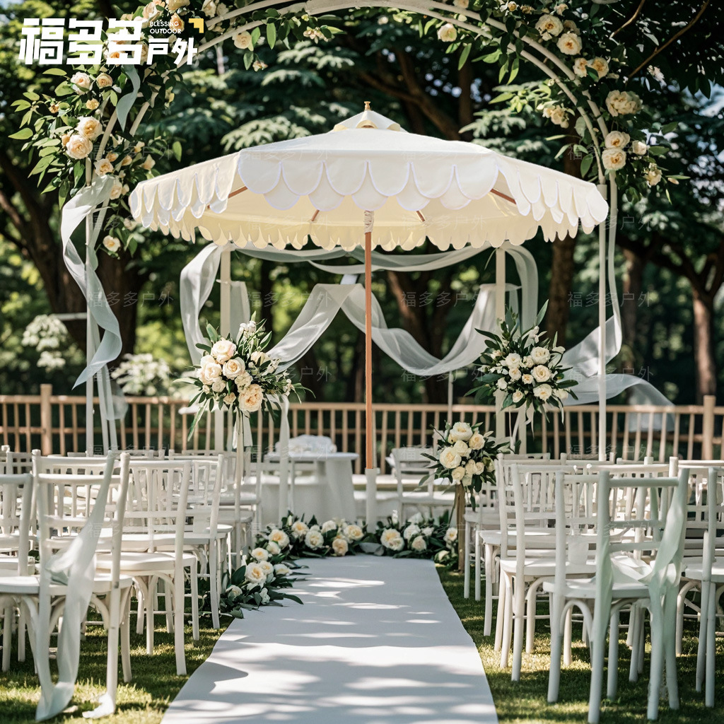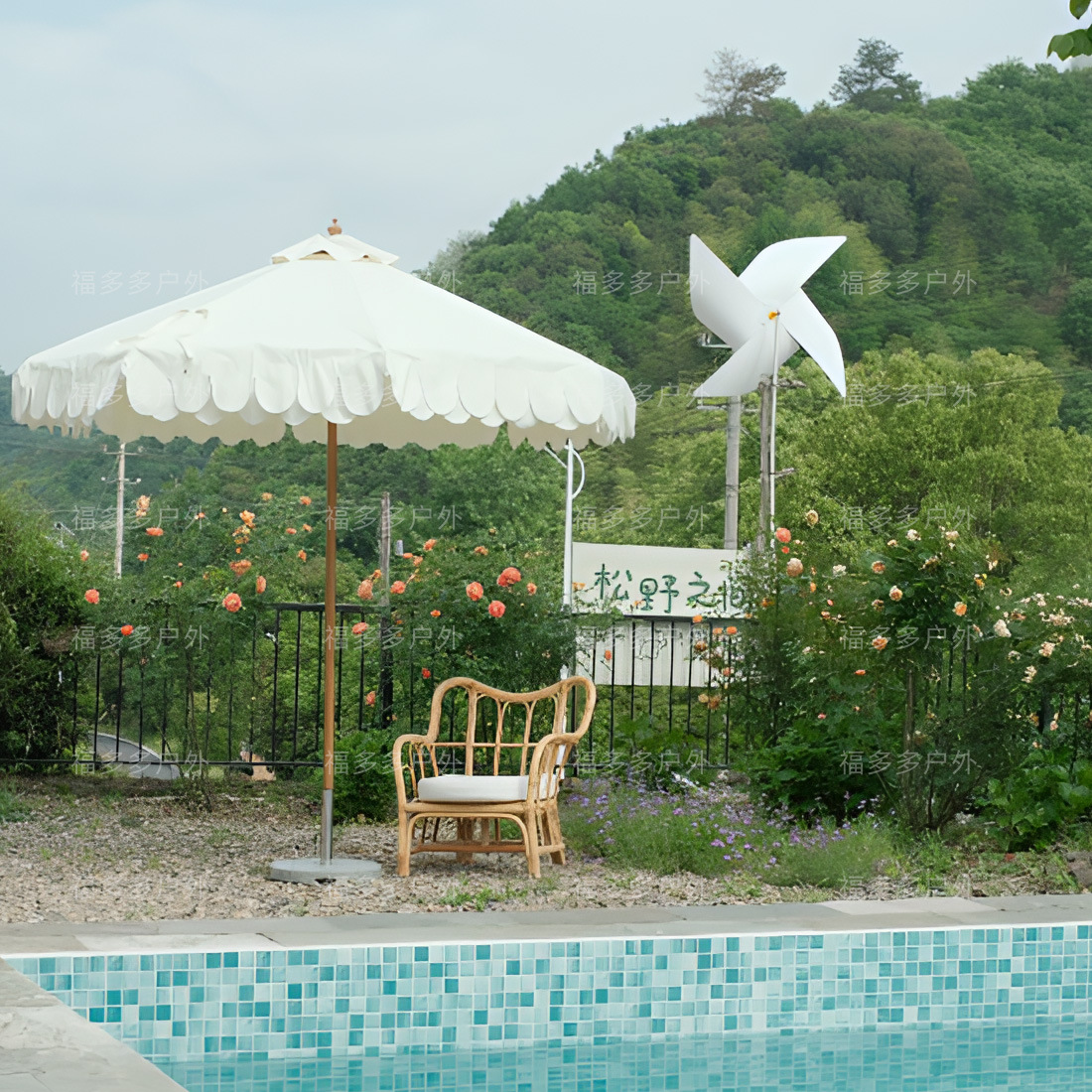 러플 장식 이중 웨이브 야외 캠핑 파라솔, 정원 웨딩 촬영, 가든 빌라 수영장 중앙 기둥 우산