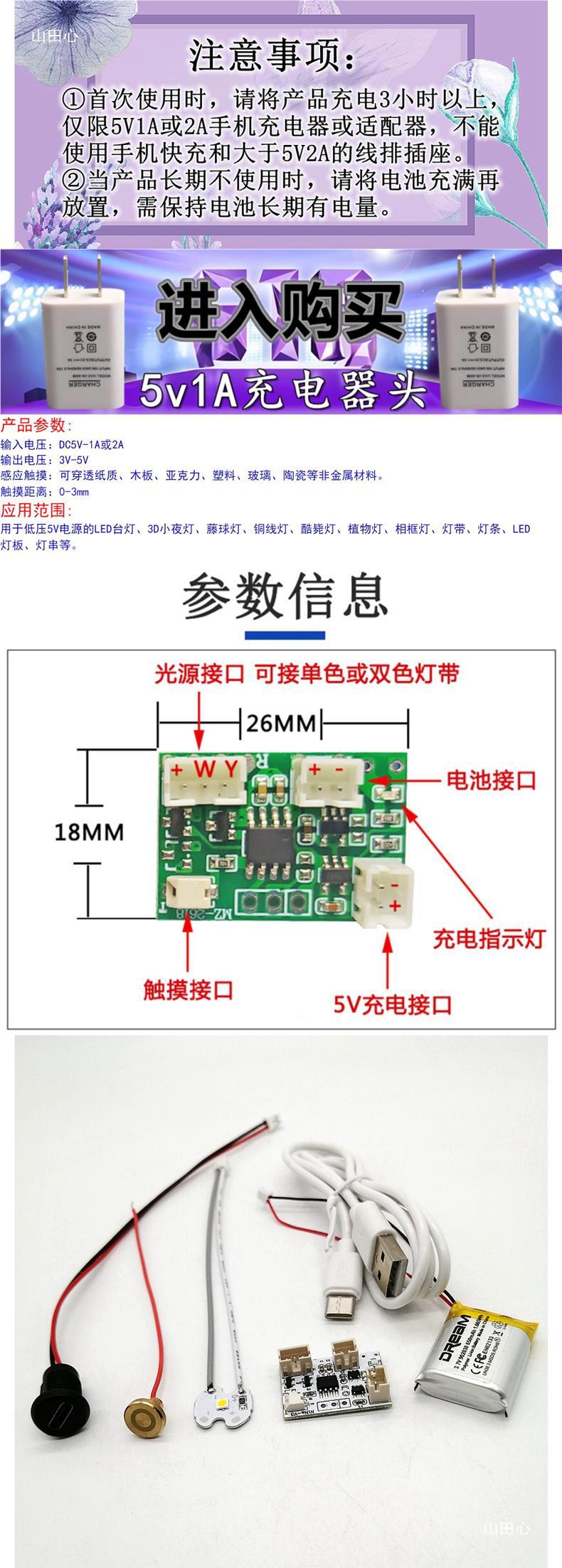 5V 충전 단일 및 이중 색상 터치 디밍 TYPEC 테이블 램프 컨트롤러 조명 그림 회로 기판 LED 사진 프레임 램프 모듈