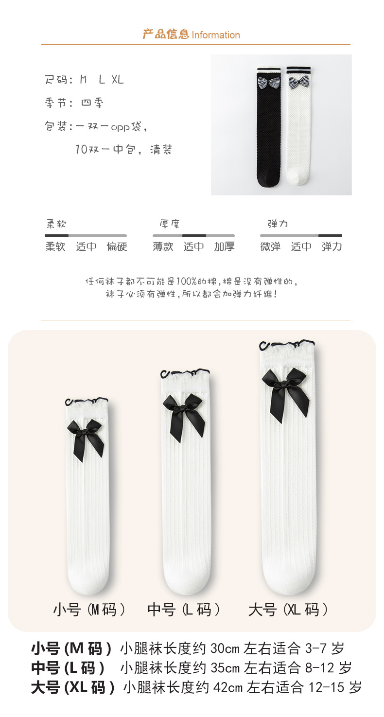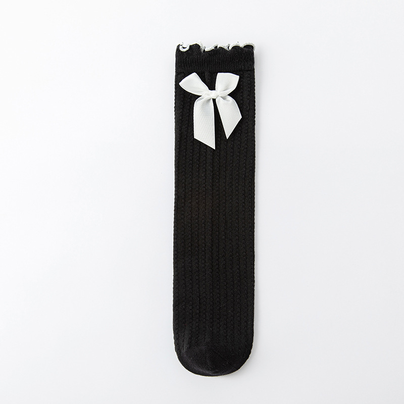 • T358 검은 양말 체크 무늬 활 종아리 양말