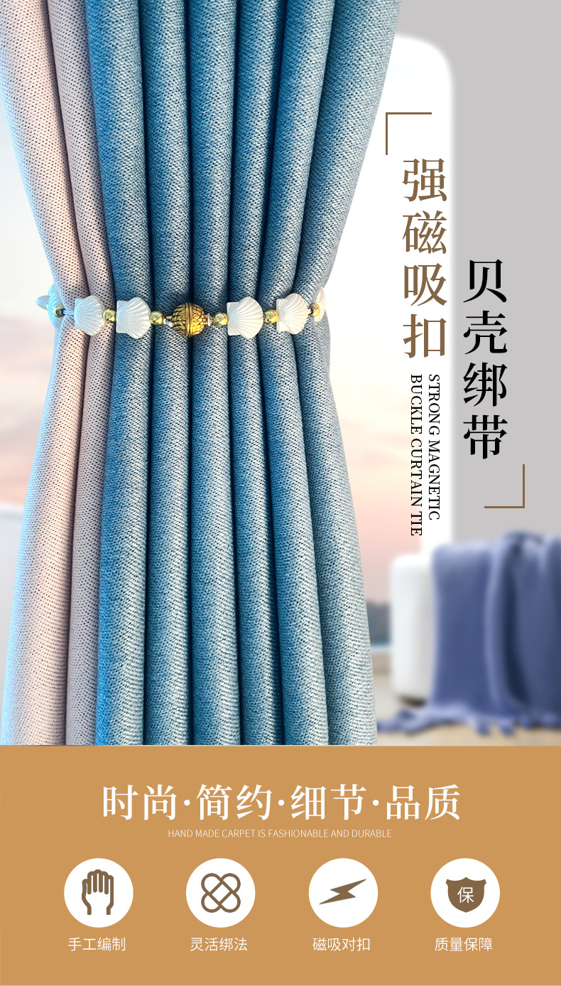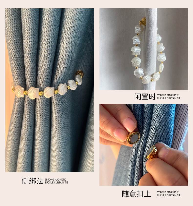 현대 빛 럭셔리 쉘 커튼 마그네틱 버클 새로운 창 화면 커튼 테이프 레이스 업 펀치 프리 커튼 보관 로프스토어 가기
