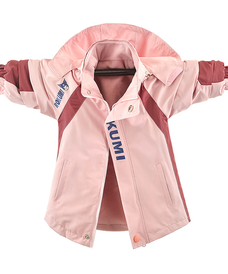 소녀의 봄과 가을과 겨울 새로운 서양식 어린이 분리 가능한 러시 의류 기모 만화 색상 매칭 3 대 1 따뜻한 재킷