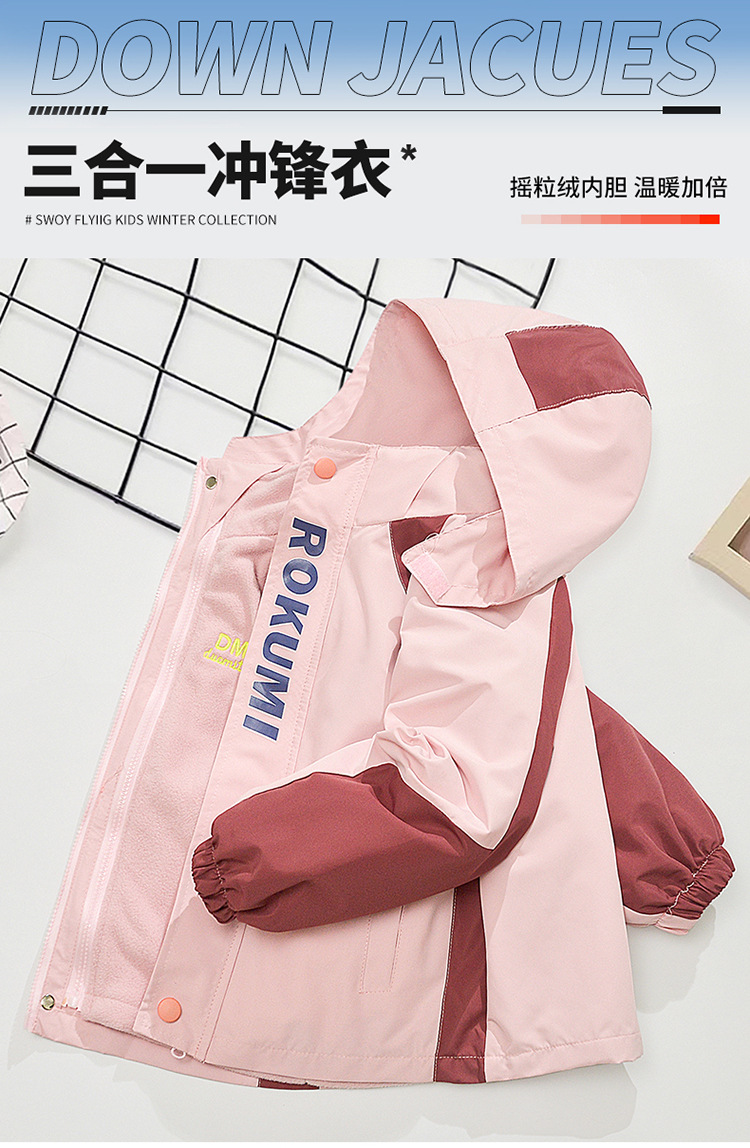 소녀의 봄과 가을과 겨울 새로운 서양식 어린이 분리 가능한 러시 의류 기모 만화 색상 매칭 3 대 1 따뜻한 재킷스토어 가기