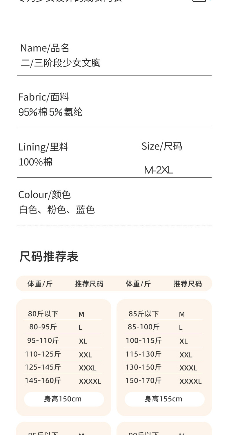 중학교 고등학생 한 단어 속옷 사춘기 조절 어깨 끈 고정 컵면 발달 소녀 브래지어스토어 가기