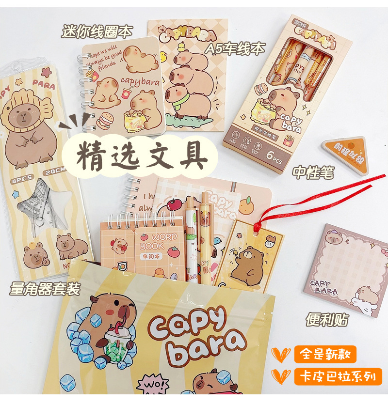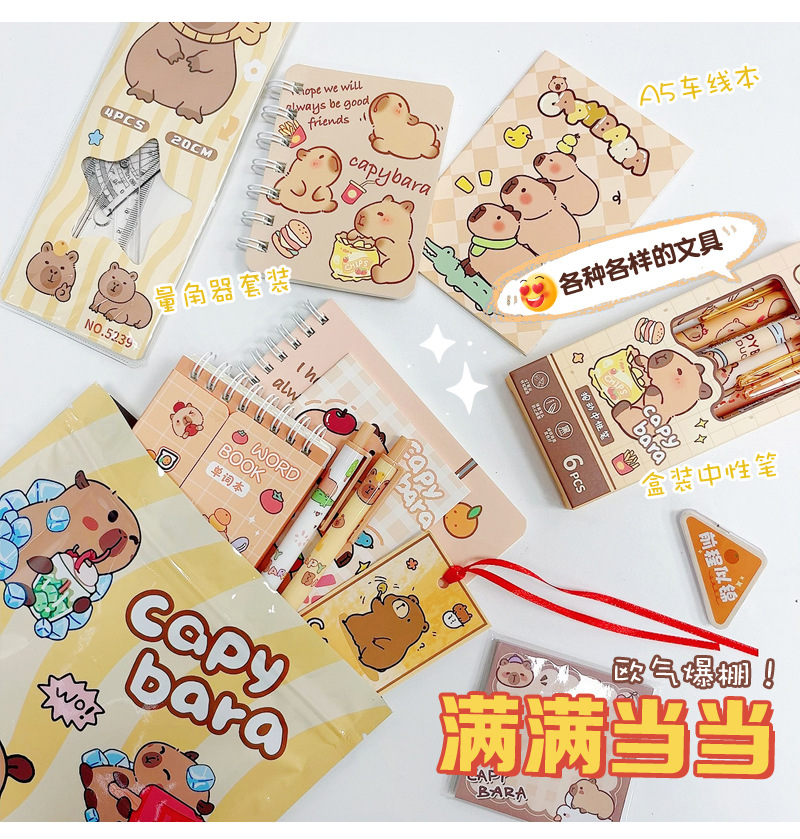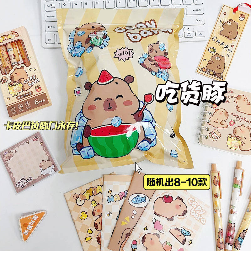 内物随机,非全部都是卡皮巴拉系列文具,如需要内物全部卡皮巴拉系列的,请咨询客服!