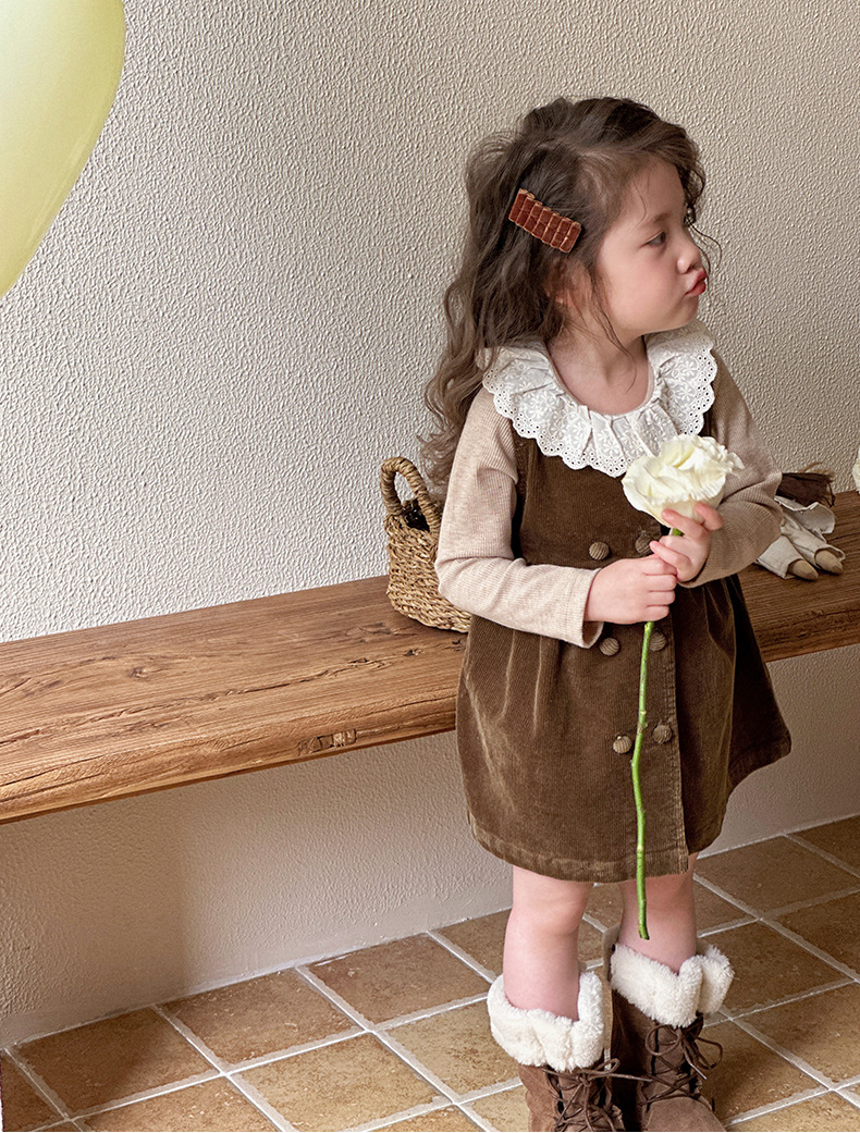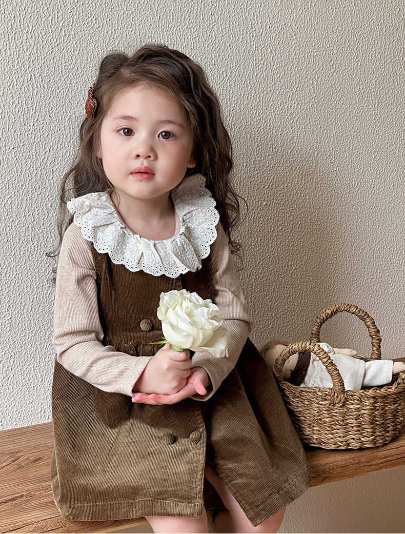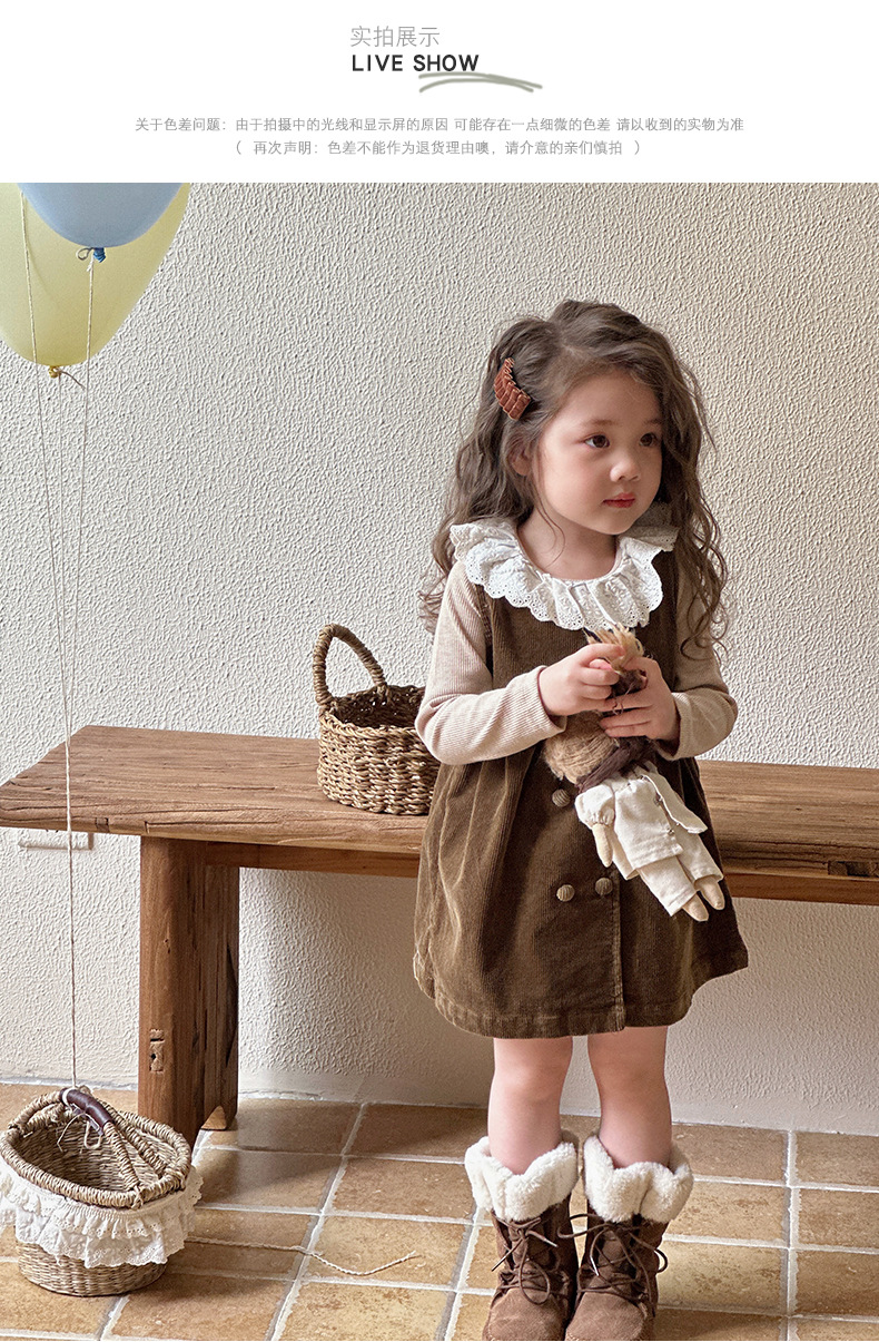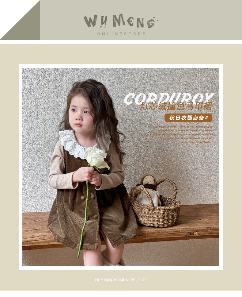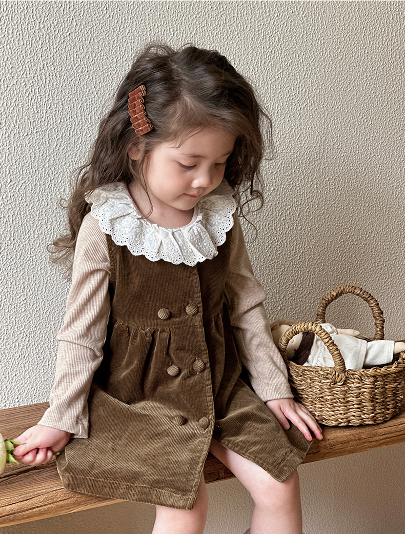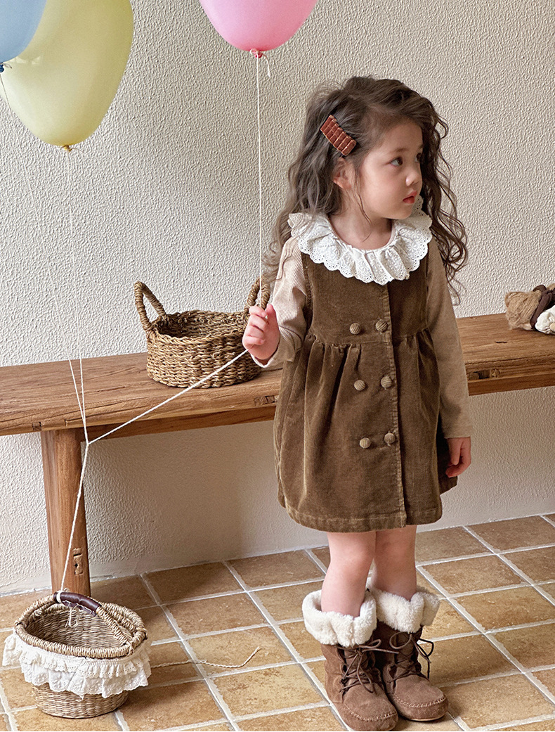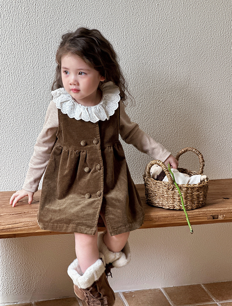 여자 봄, 가을 조끼 스커트 2025 새로운 어린이 한국 코듀로이 아기 소녀 가을 달콤한 드레스스토어 가기