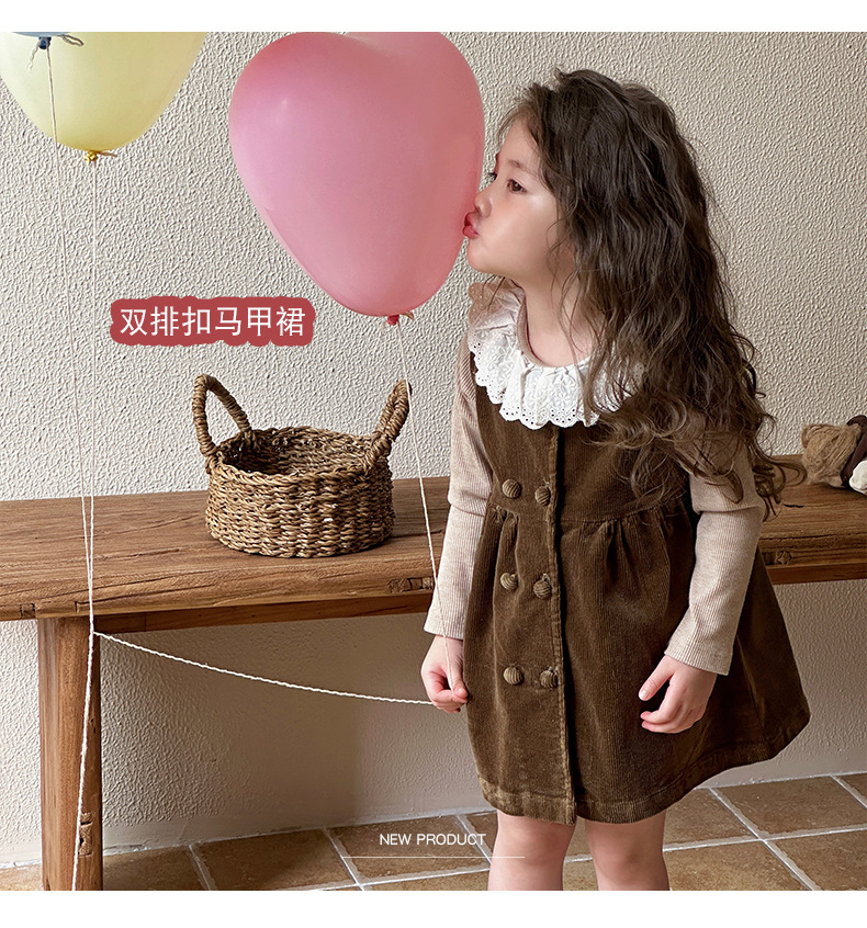 여자 봄, 가을 조끼 스커트 2025 새로운 어린이 한국 코듀로이 아기 소녀 가을 달콤한 드레스