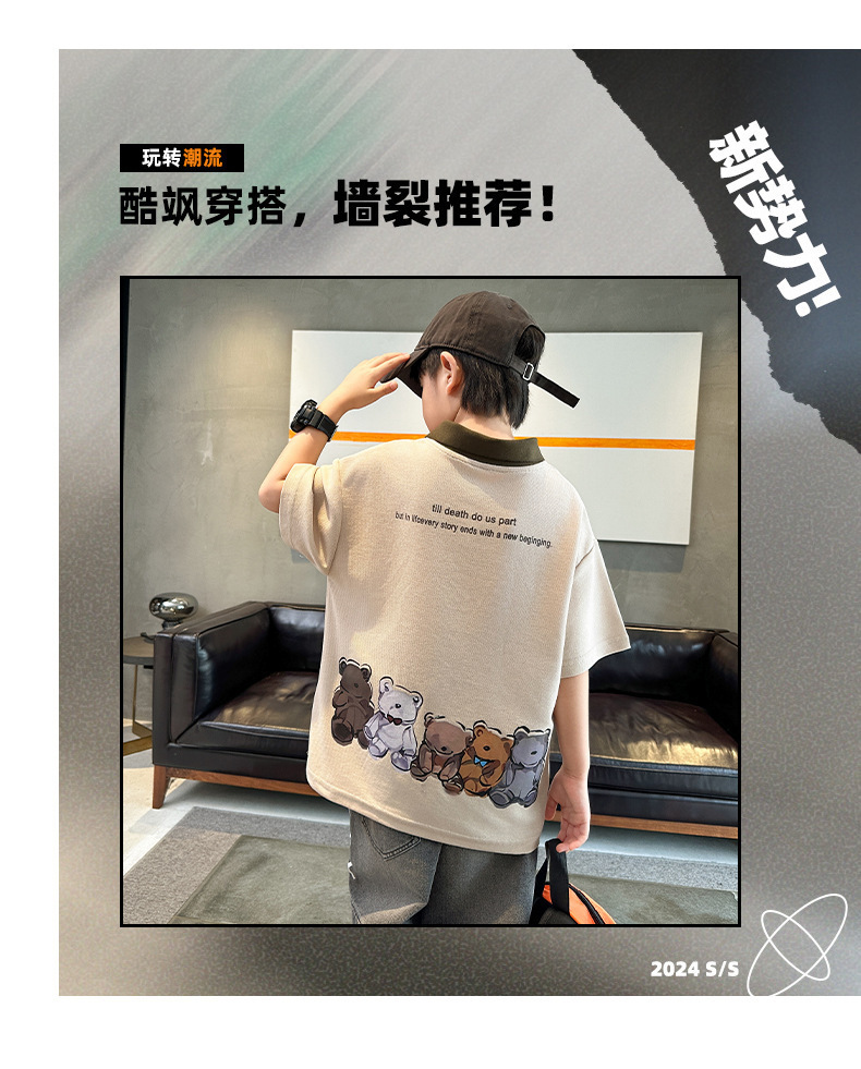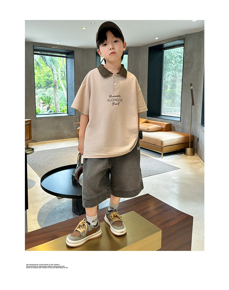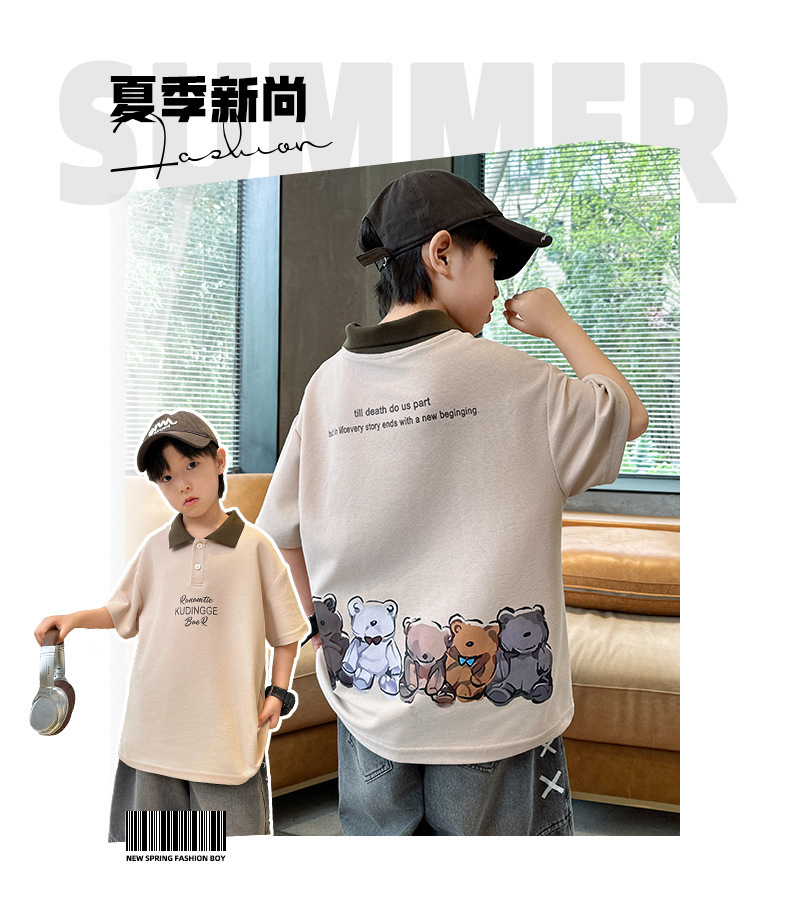 아동복 소년 여름 반팔 폴로 셔츠 2025 새로운 잘 생긴 소년 여름 티셔츠 중대형 아동 티셔츠 유행스토어 가기