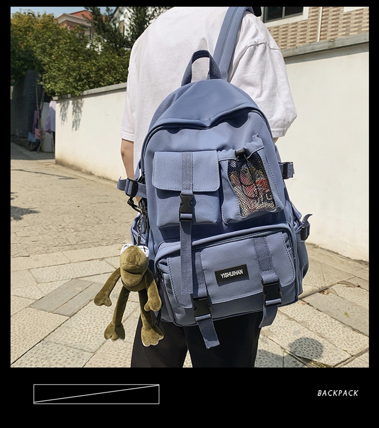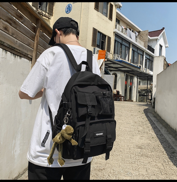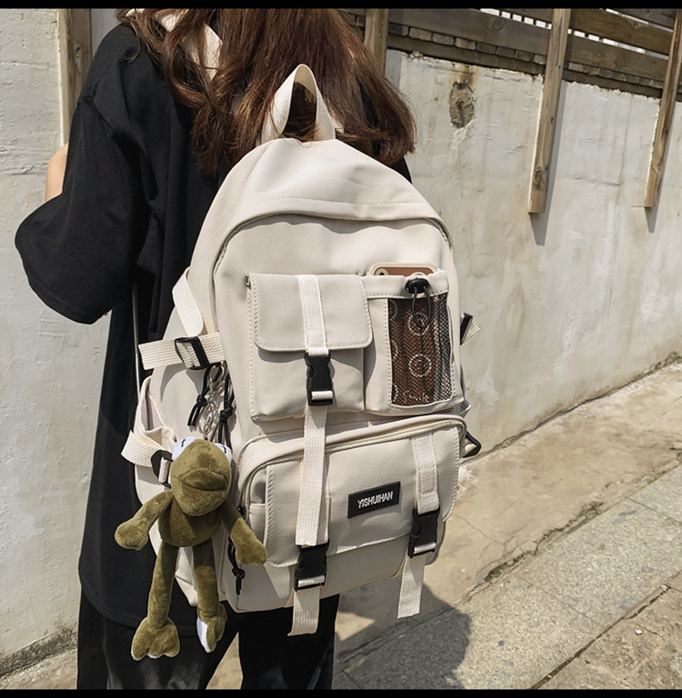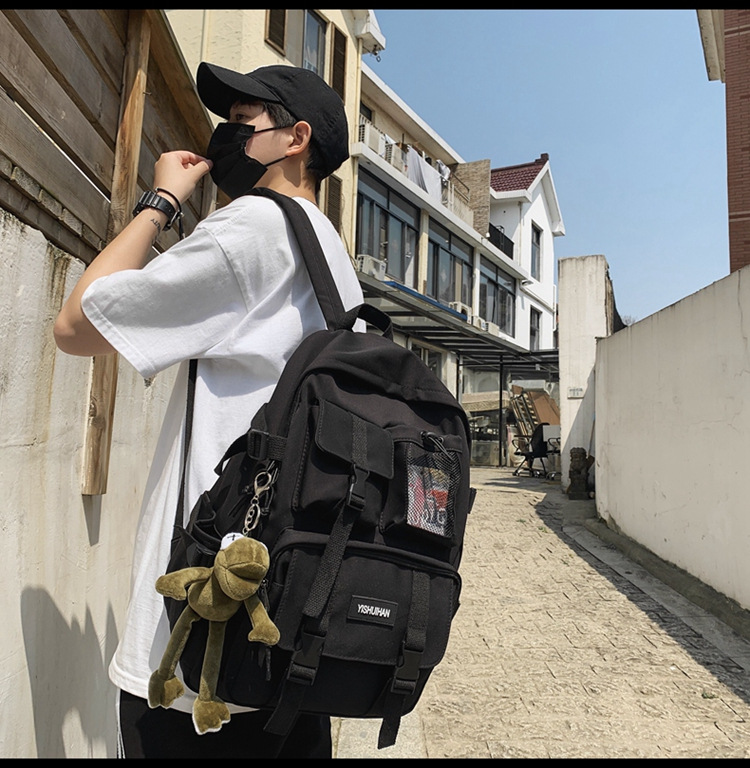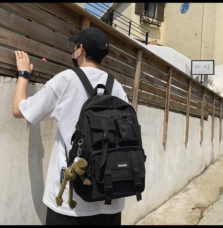 남성과 여성을위한 캐주얼 올 매치 백팩 귀여운 펜던트 서양식 유행 학생 스쿨백 대용량 툴링 스타일 배낭