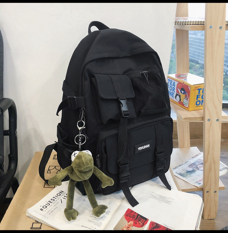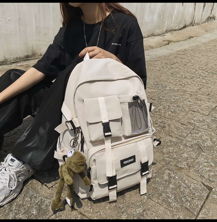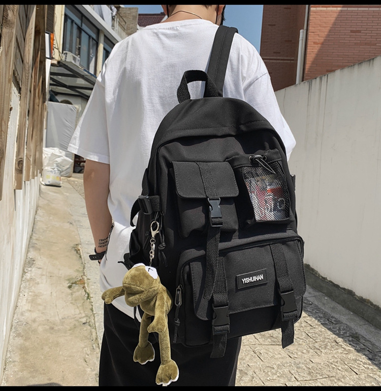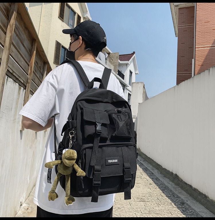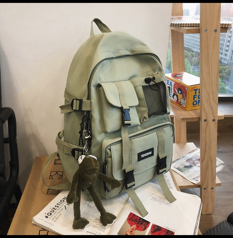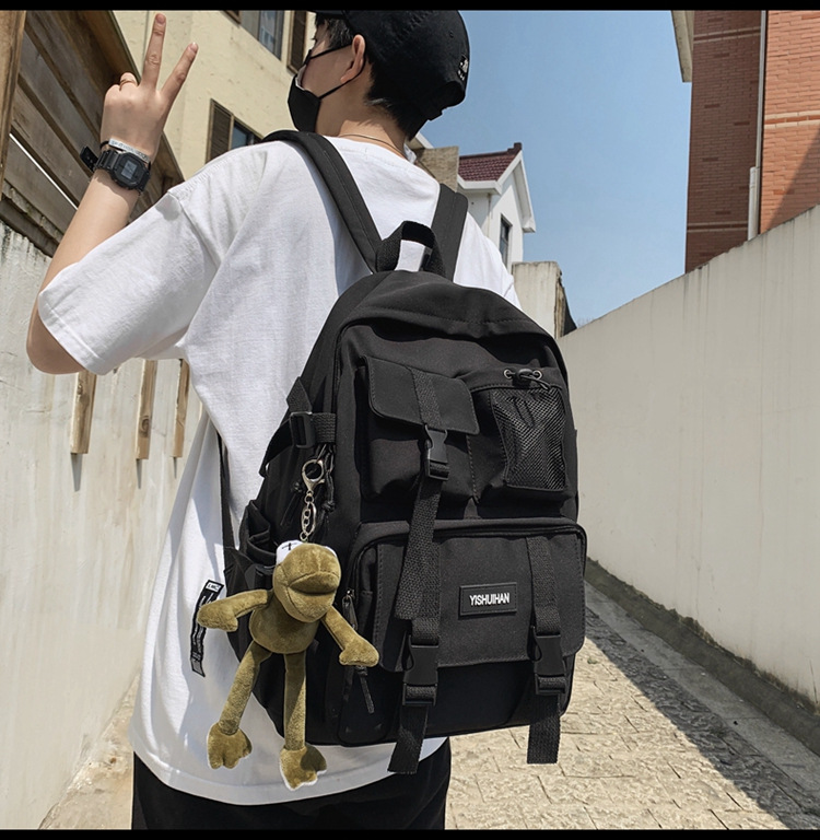 남성과 여성을위한 캐주얼 올 매치 백팩 귀여운 펜던트 서양식 유행 학생 스쿨백 대용량 툴링 스타일 배낭