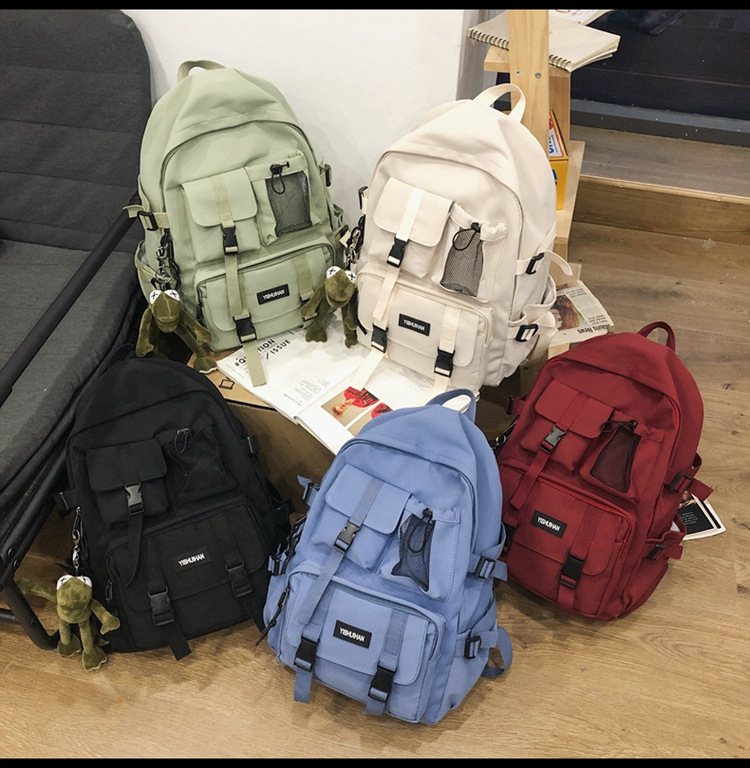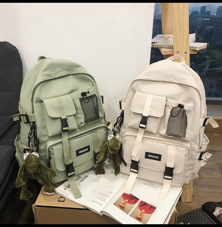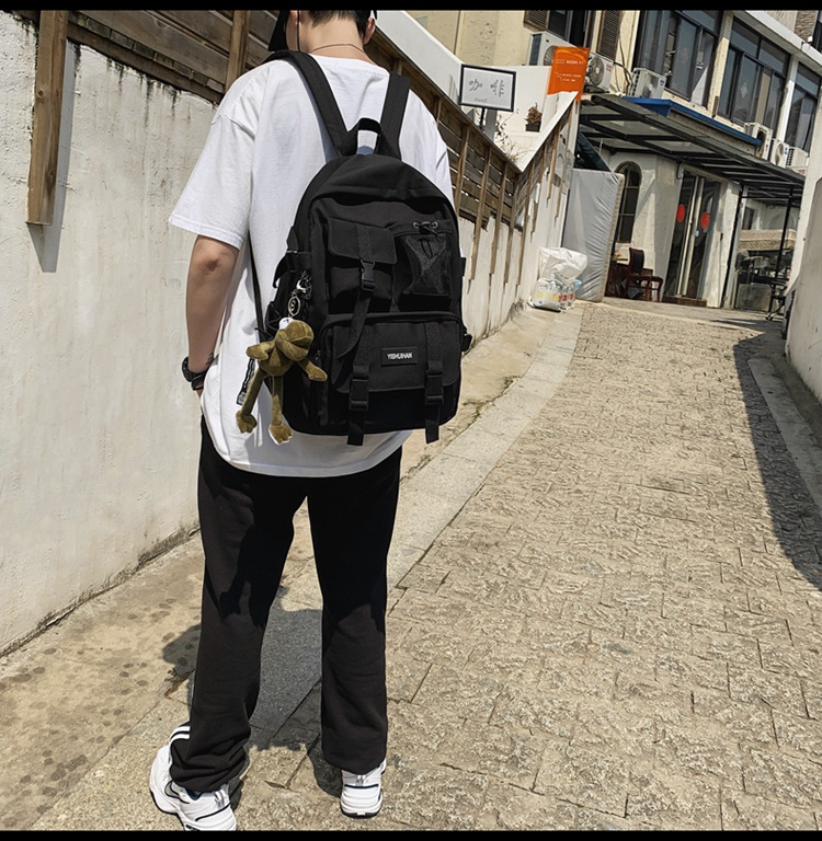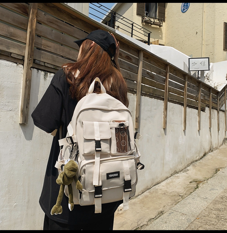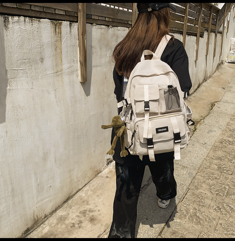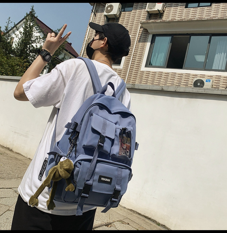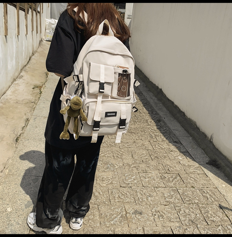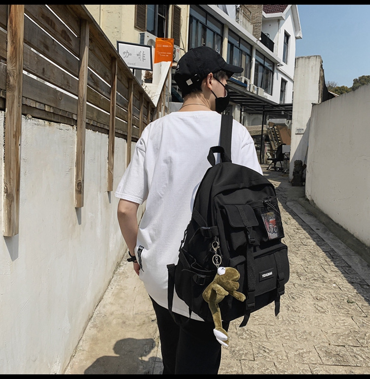 남성과 여성을위한 캐주얼 올 매치 백팩 귀여운 펜던트 서양식 유행 학생 스쿨백 대용량 툴링 스타일 배낭스토어 가기