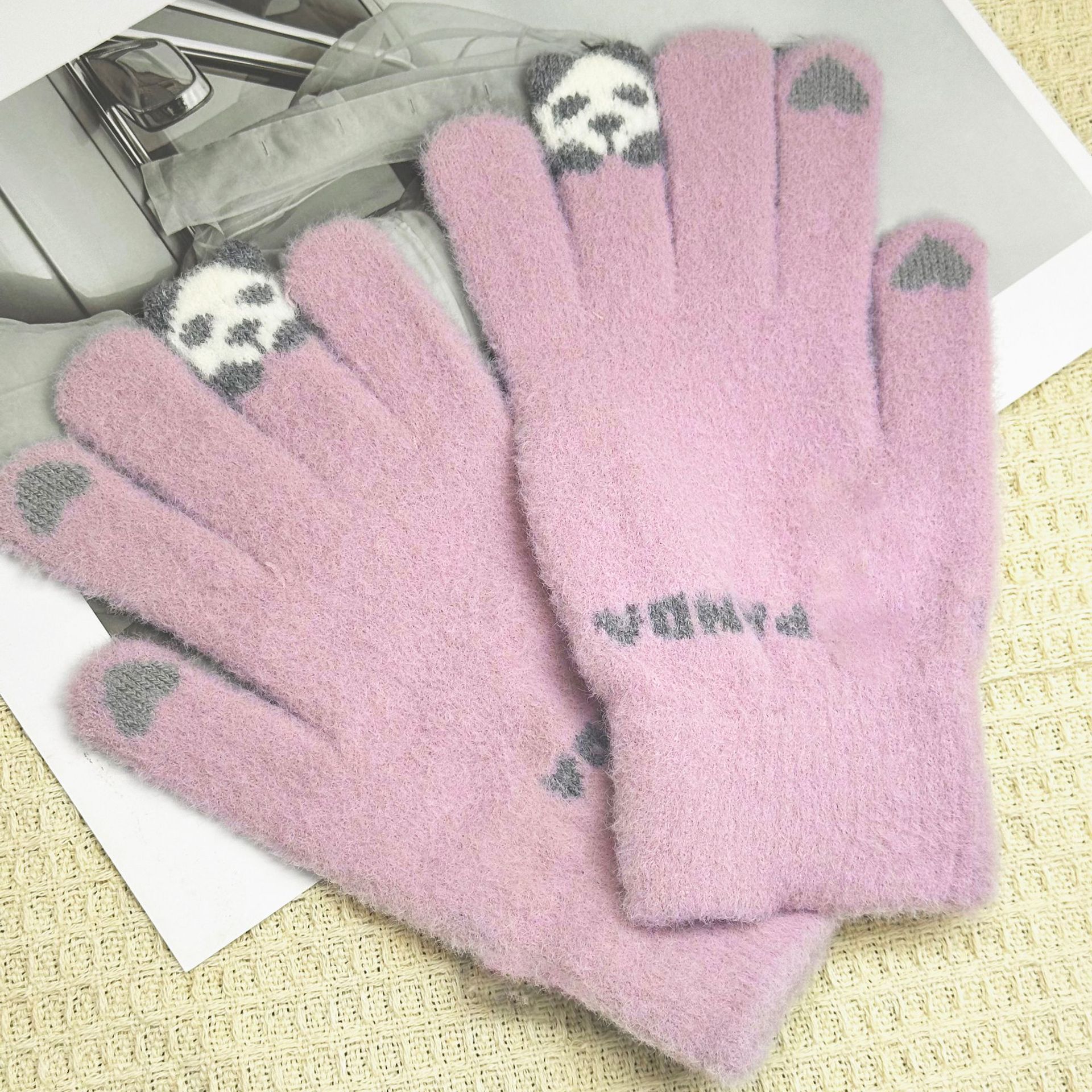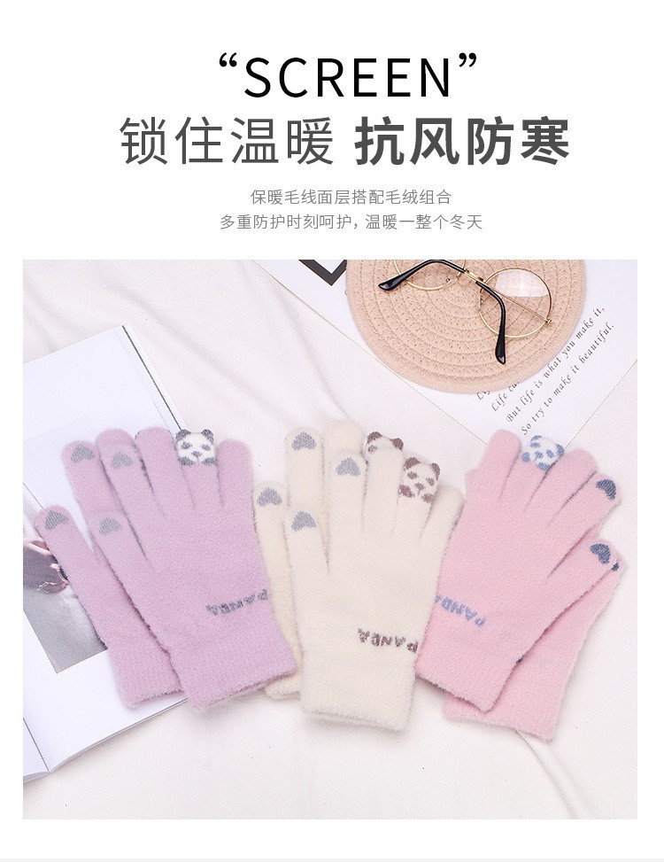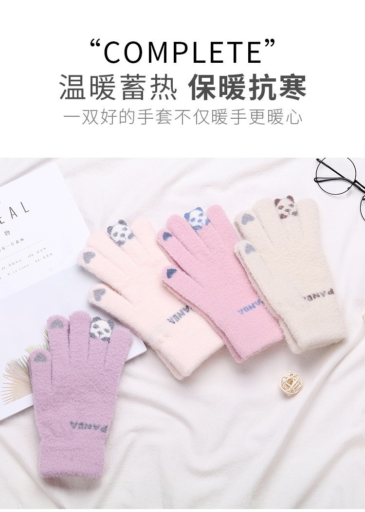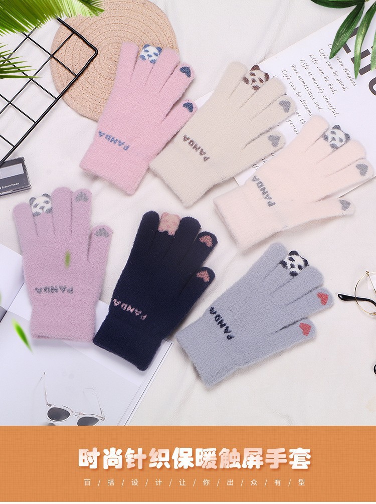 팬더 모양 장갑 겨울 여성용 보온 방한 터치스크린 학생용 다섯 손가락 자전거 타기 가을 겨울 터치스크린 해외 인기 상품