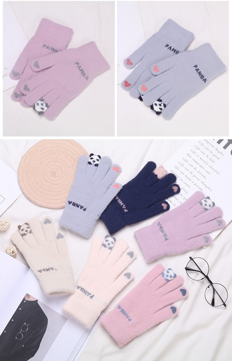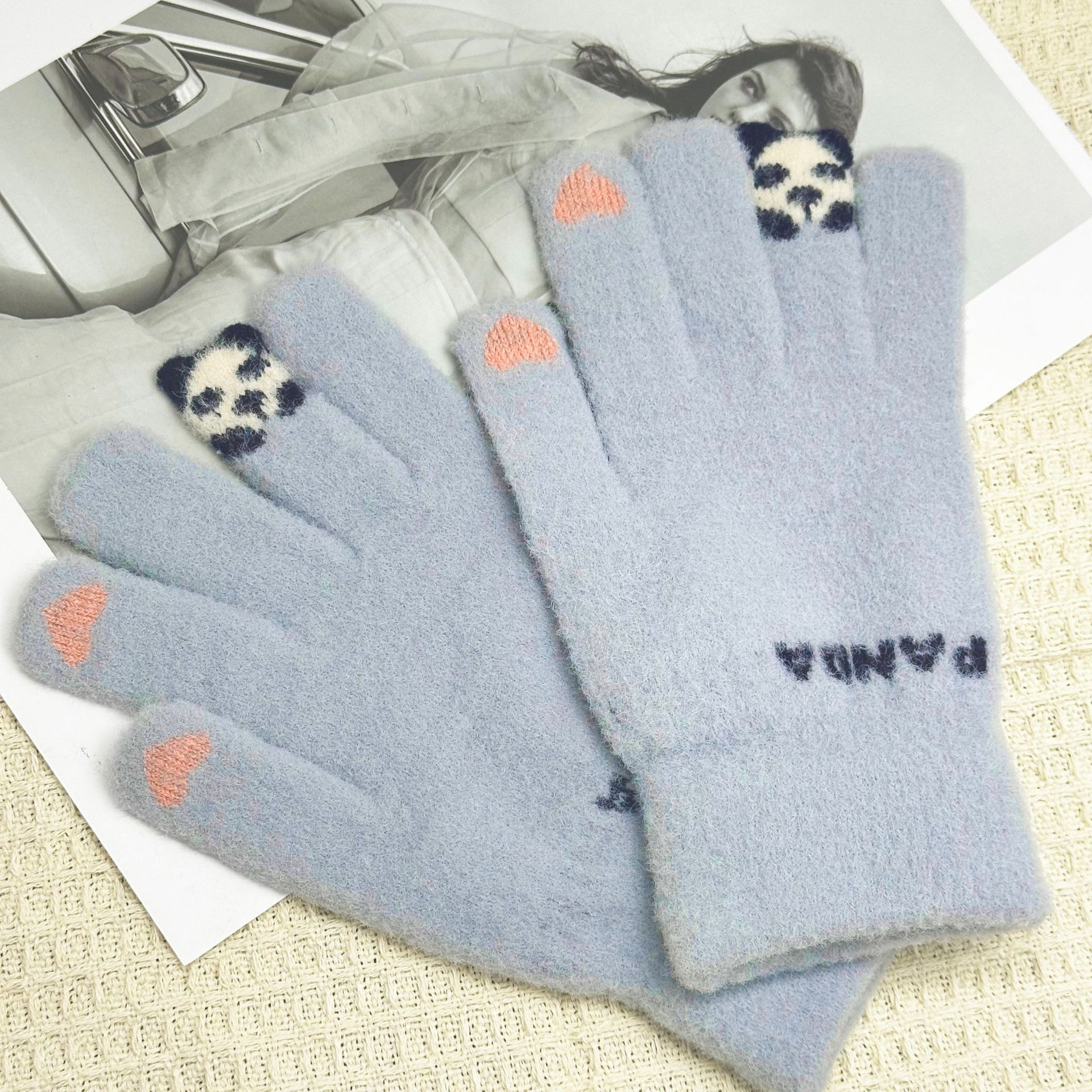 팬더 모양 장갑 겨울 여성용 보온 방한 터치스크린 학생용 다섯 손가락 자전거 타기 가을 겨울 터치스크린 해외 인기 상품스토어 가기
