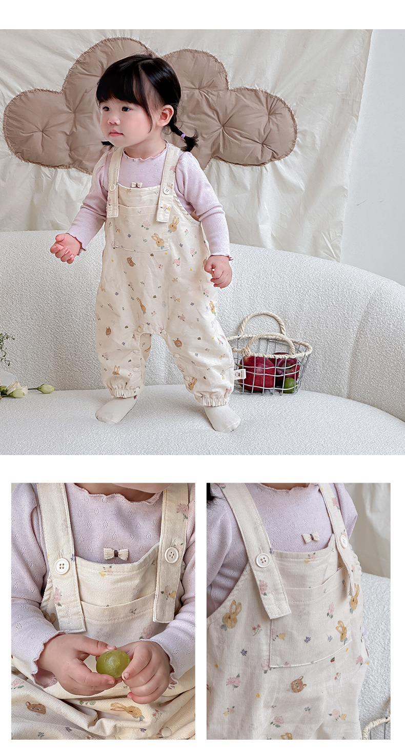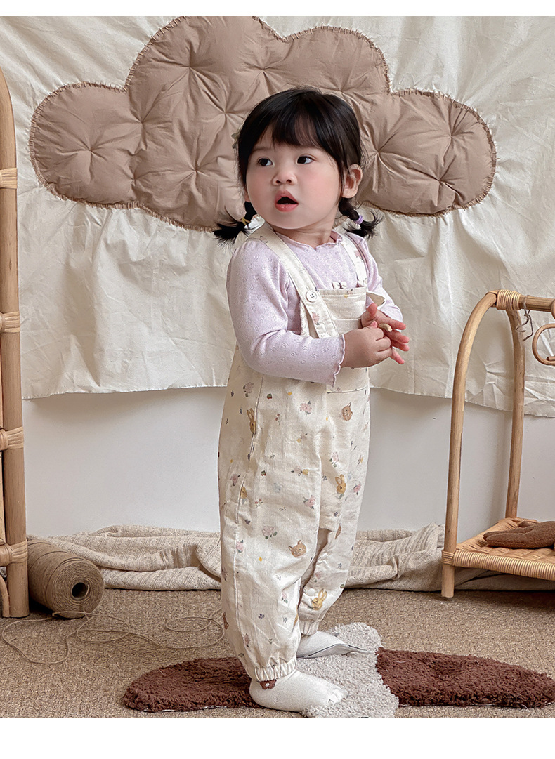 2025 가을 아기 세트 북유럽 스타일 꽃무늬 외출복 여자 아기 이너웨어 서스펜더 팬츠 숲속 스타일 유아 투피스 세트