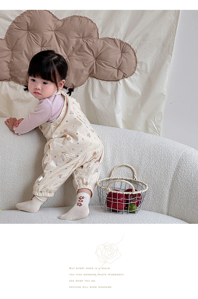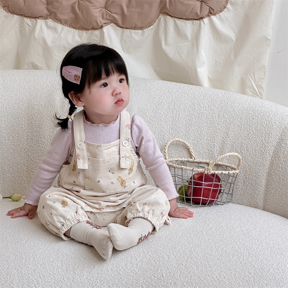 2025 가을 아기 세트 북유럽 스타일 꽃무늬 외출복 여자 아기 이너웨어 서스펜더 팬츠 숲속 스타일 유아 투피스 세트스토어 가기