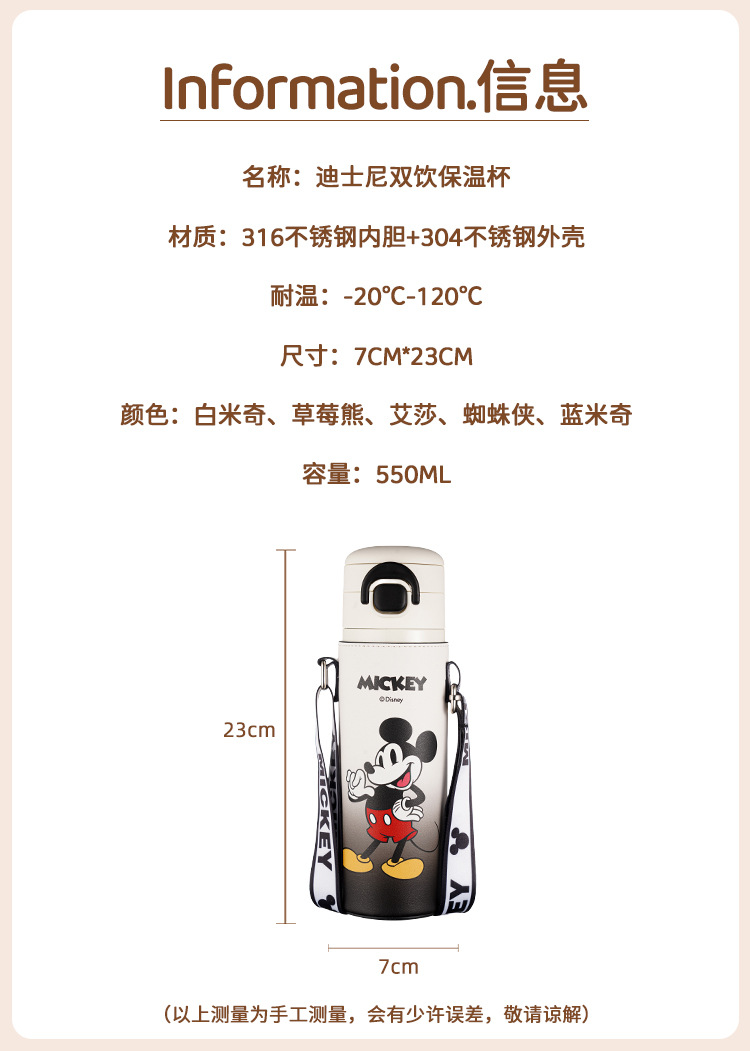 디즈니 어린이 보온병 컵 더블 마시는 입 높은 색상 가치 316 귀여운 학생 주전자 휴대용 학교 스트레이트 컵스토어 가기