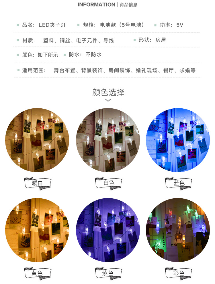 창조적 인 사진 벽 클립 조명 끈 led 조명 파티 크리스마스 장식 사진 클립 조명 제안 실내 레이아웃
