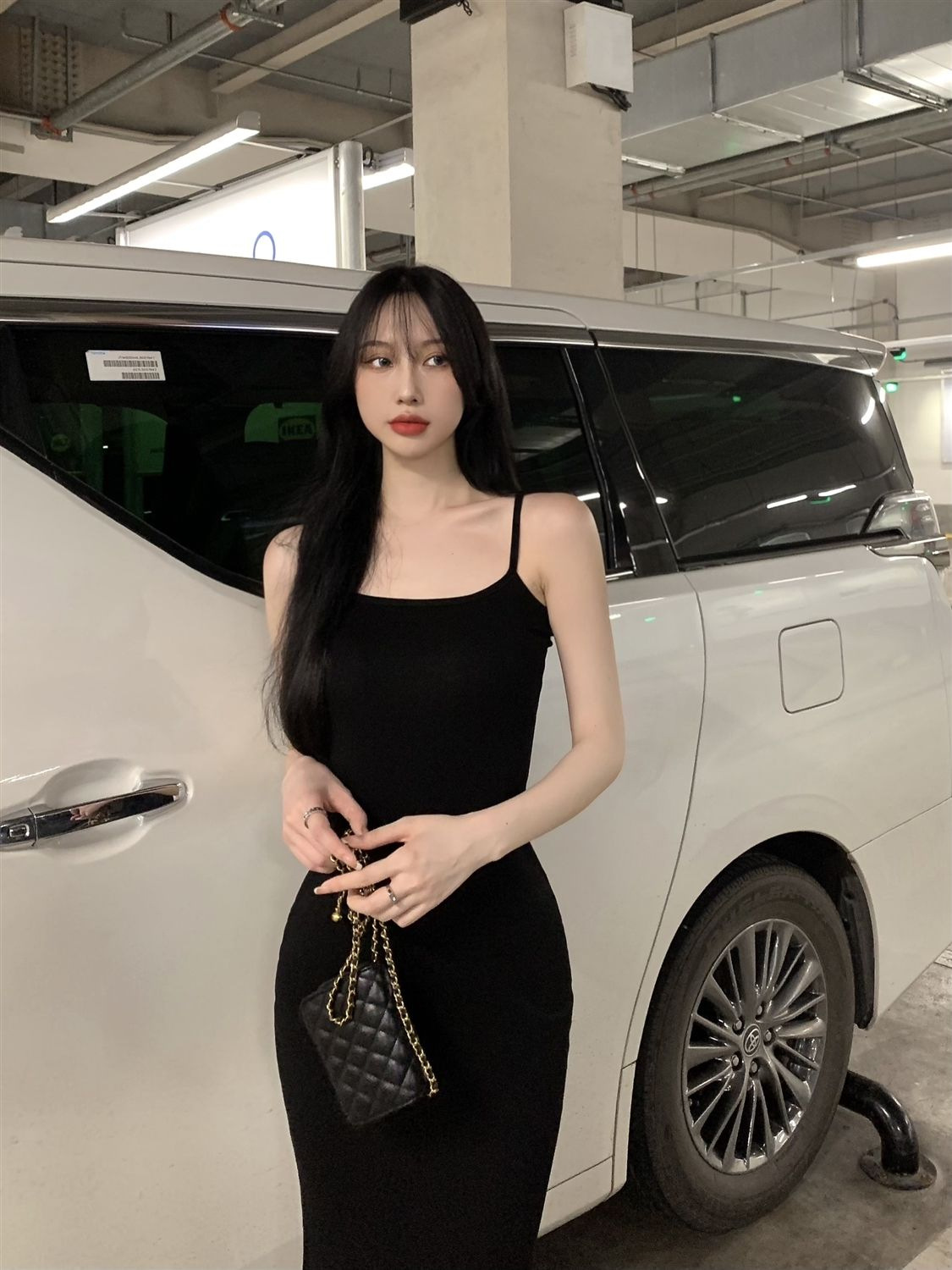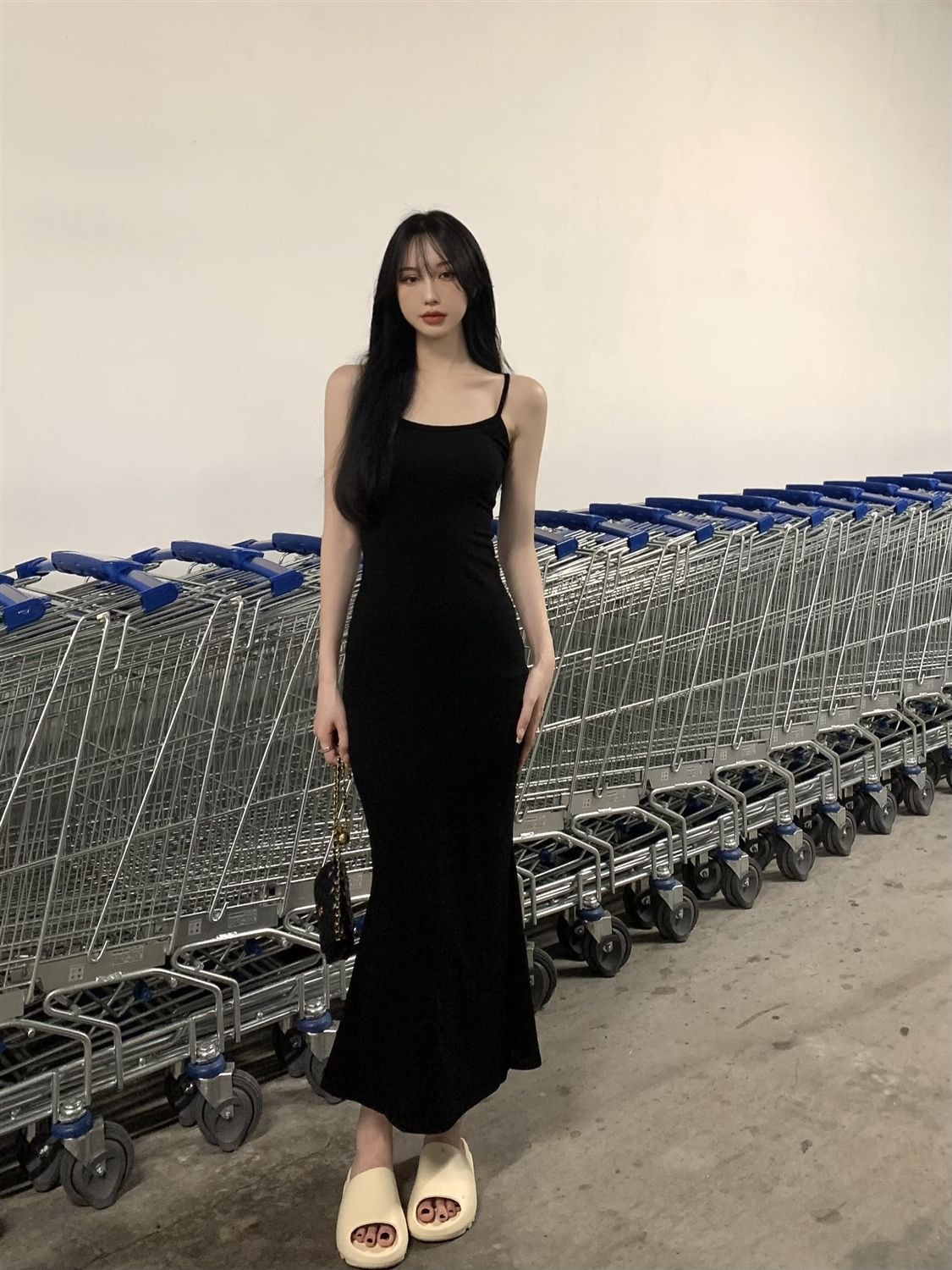 2025 달콤하고 섹시한 민소매 허리 조임 반팔 백리스 슬립 드레스 여성 여름 순수하고 매력적인 머메이드 핏 드레스