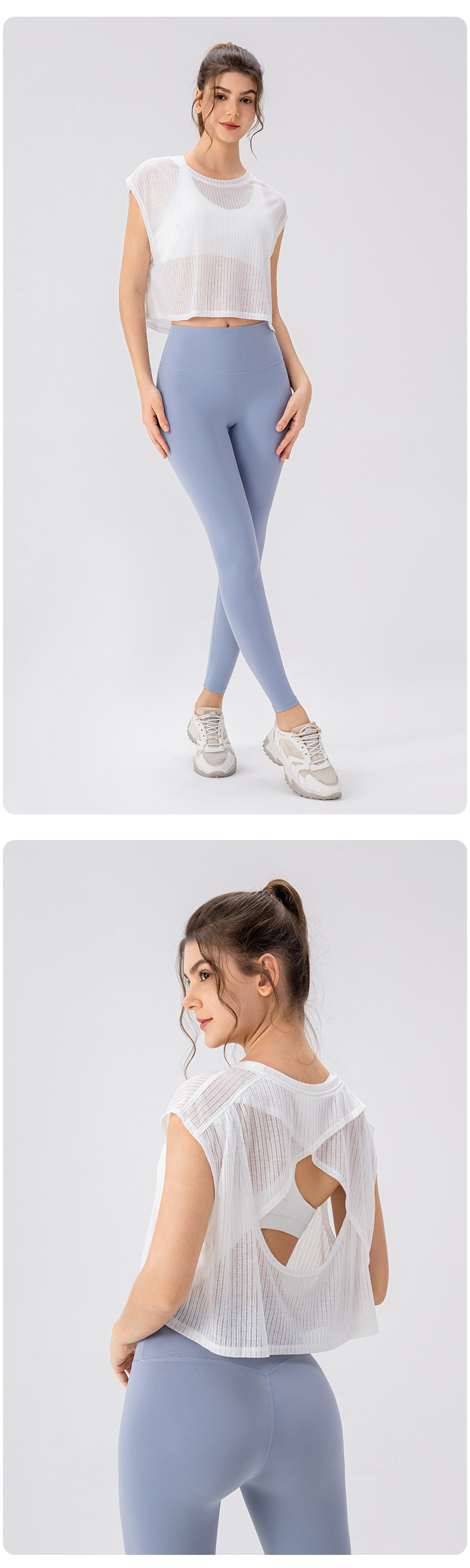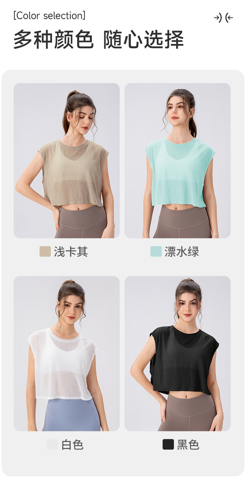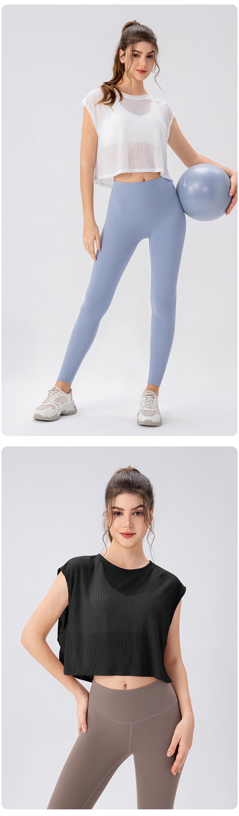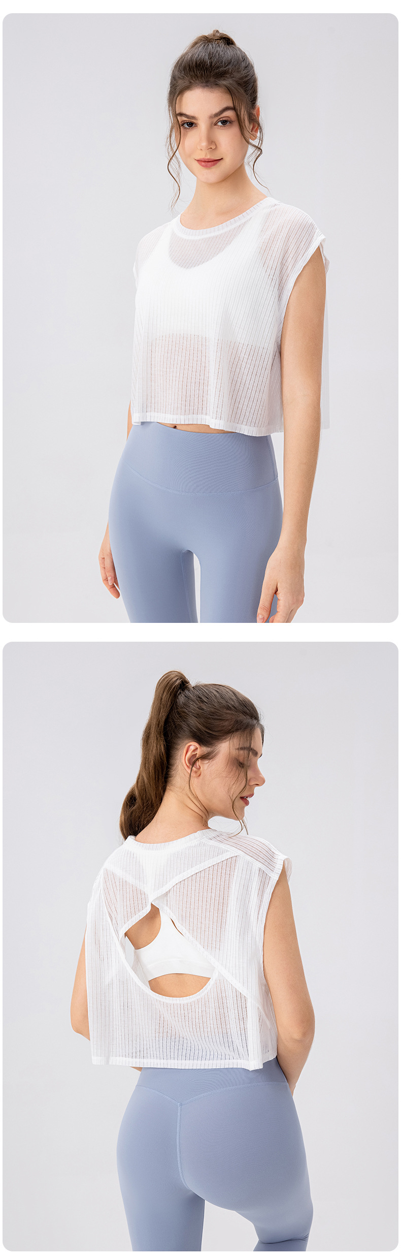 여름 요가 블라우스 여성의 중공 통기성 민소매 최고 짧은 느슨한 달리기 스포츠 피트니스 블라우스 42160