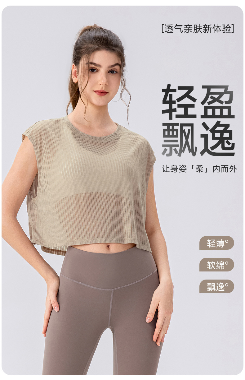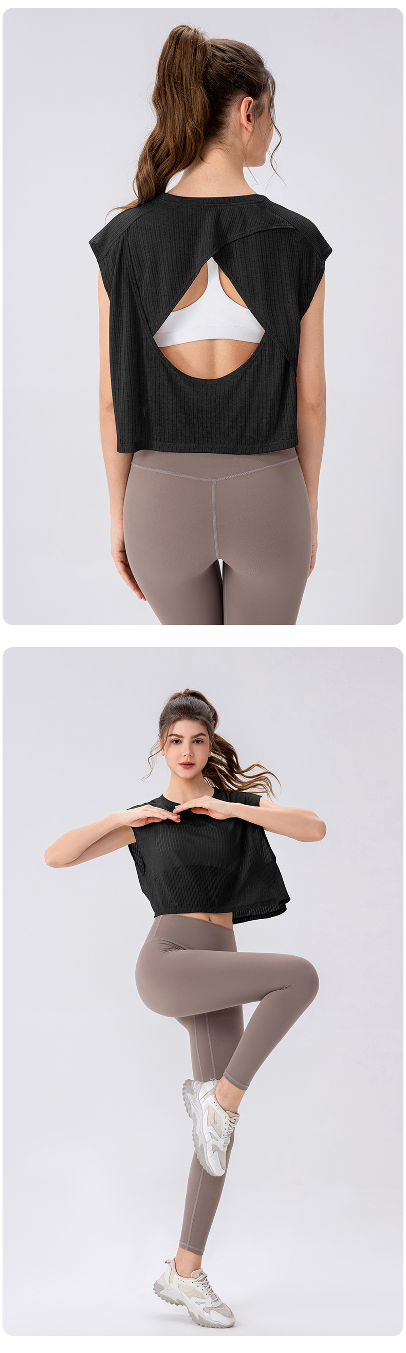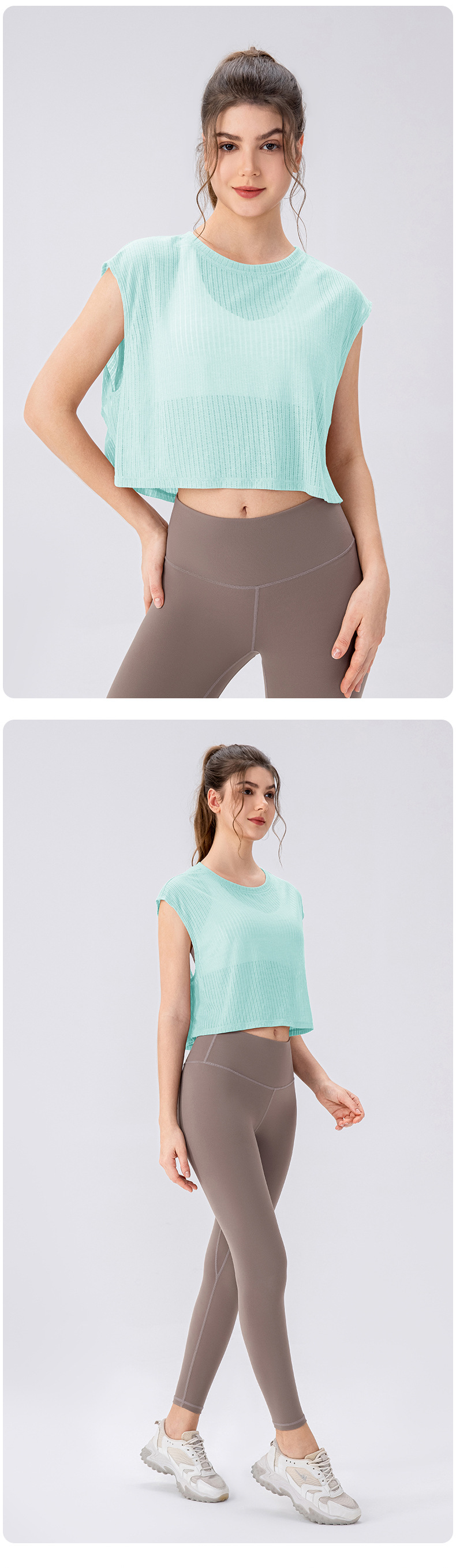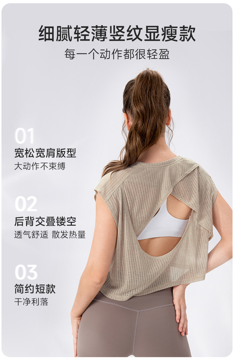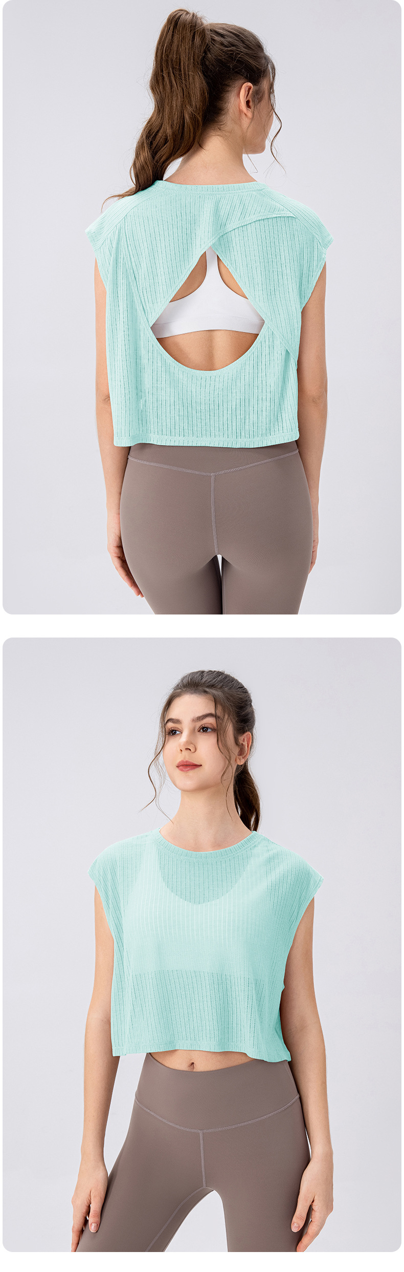 여름 요가 블라우스 여성의 중공 통기성 민소매 최고 짧은 느슨한 달리기 스포츠 피트니스 블라우스 42160