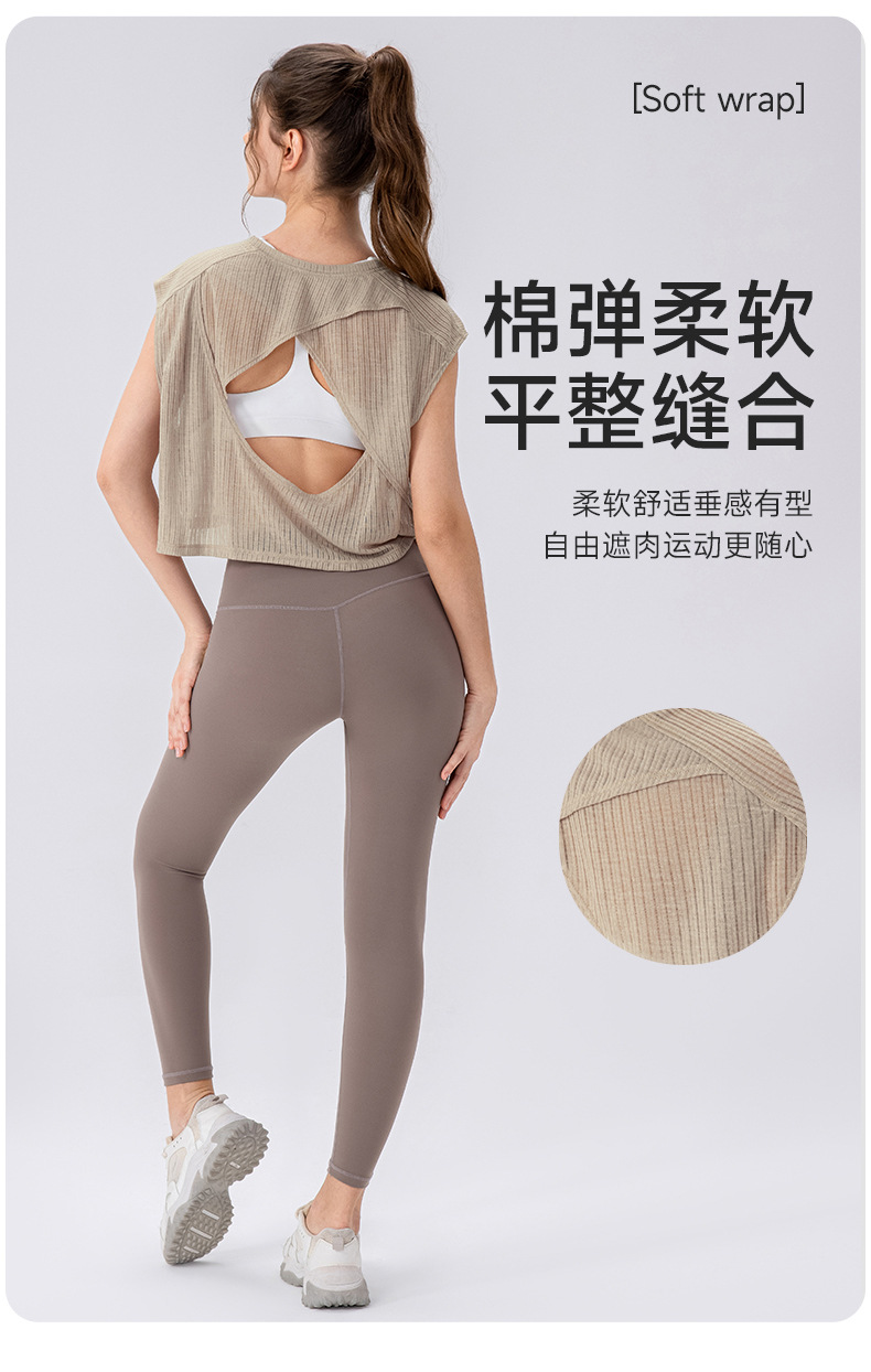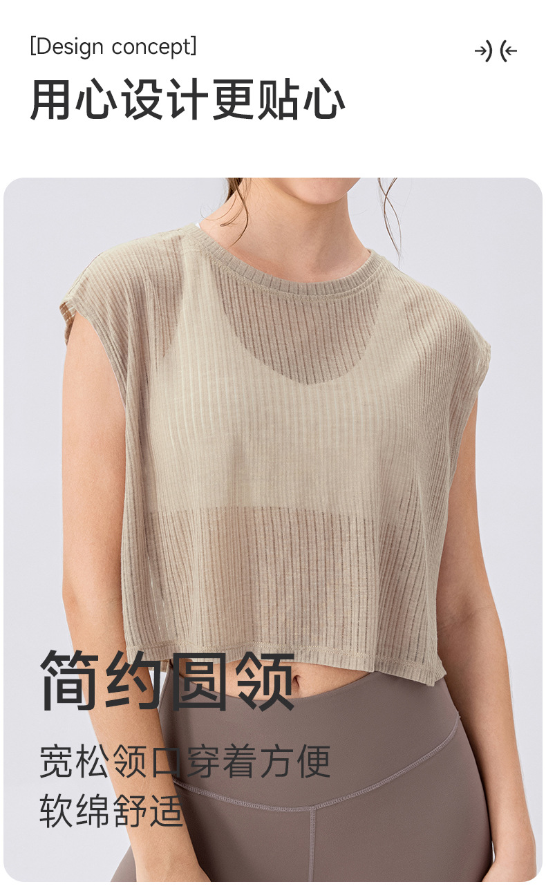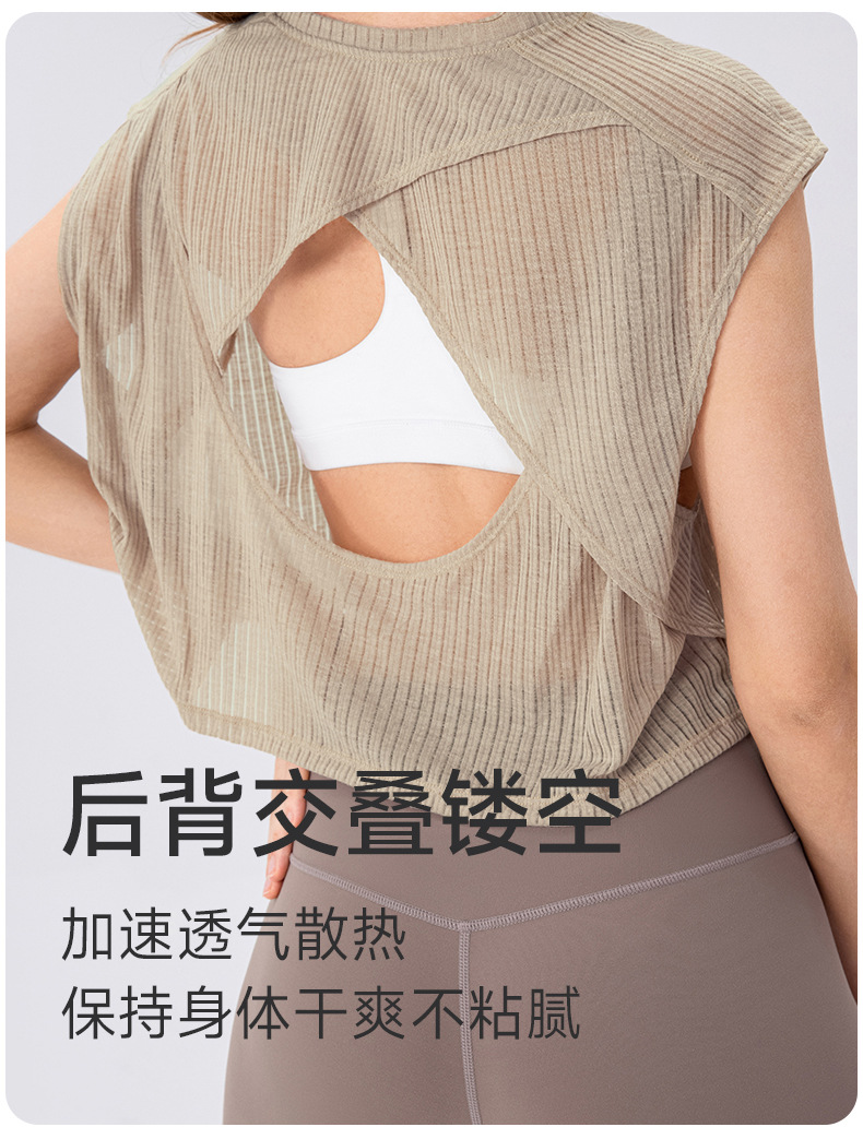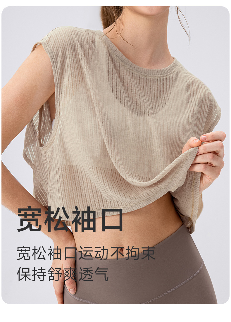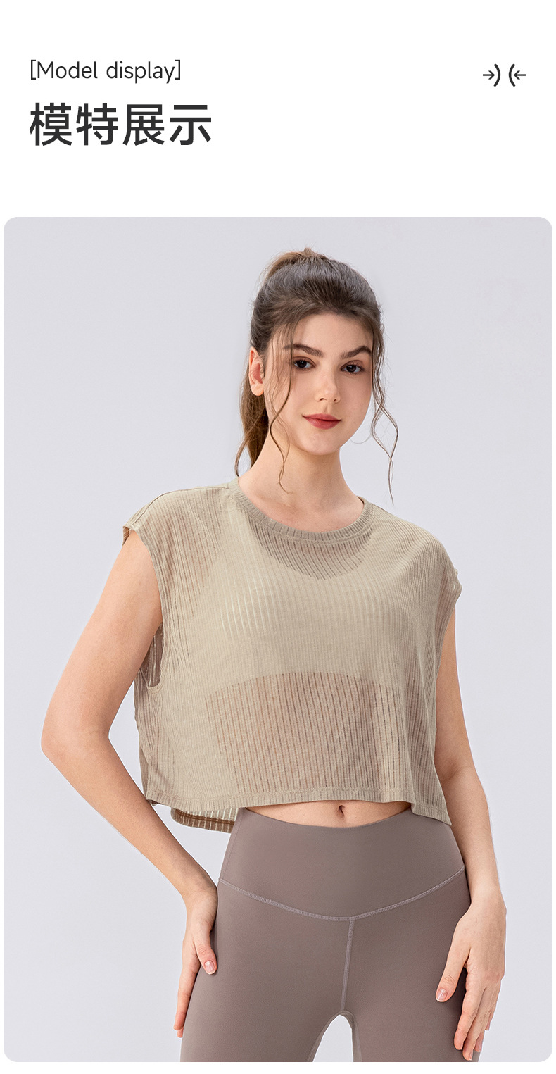 여름 요가 블라우스 여성의 중공 통기성 민소매 최고 짧은 느슨한 달리기 스포츠 피트니스 블라우스 42160