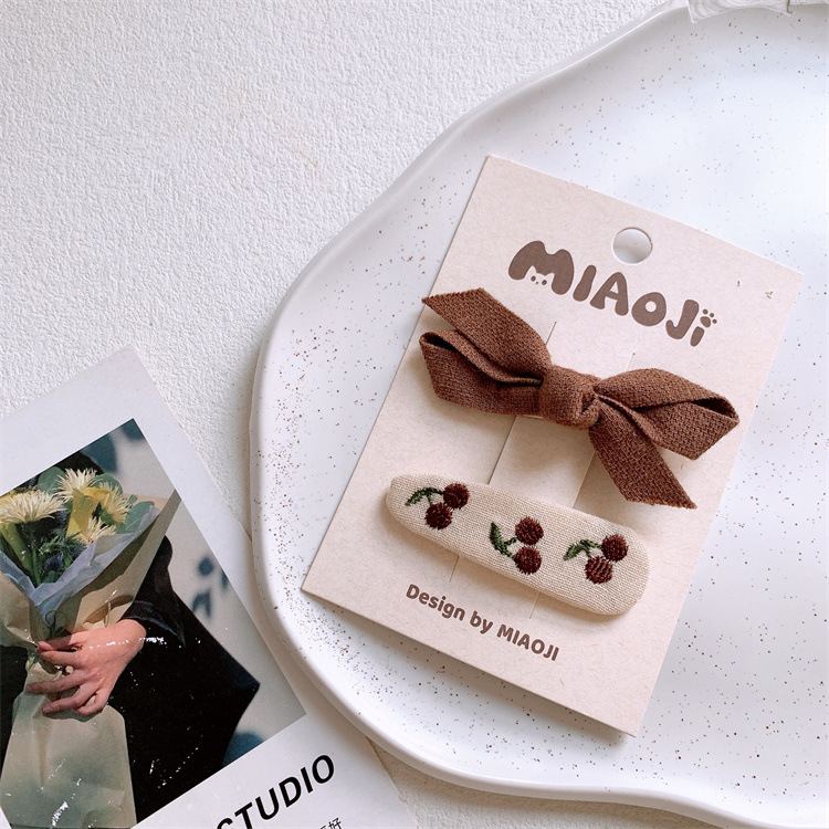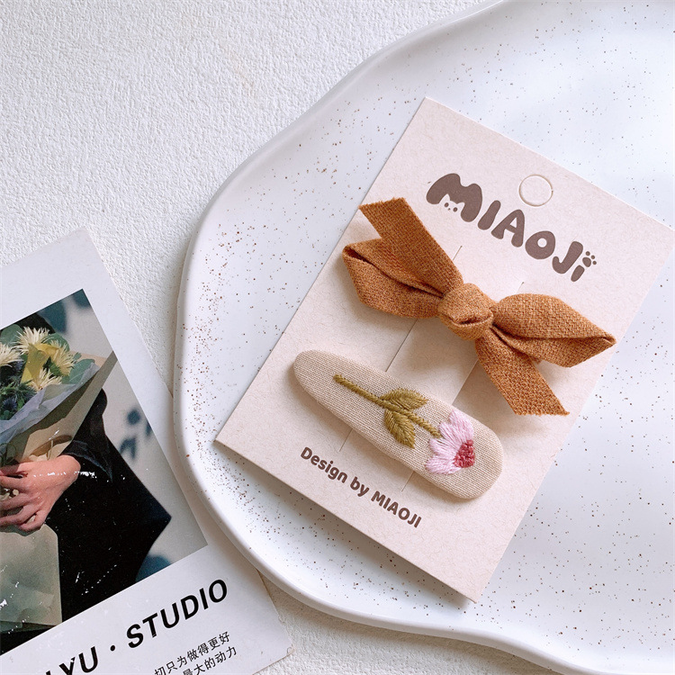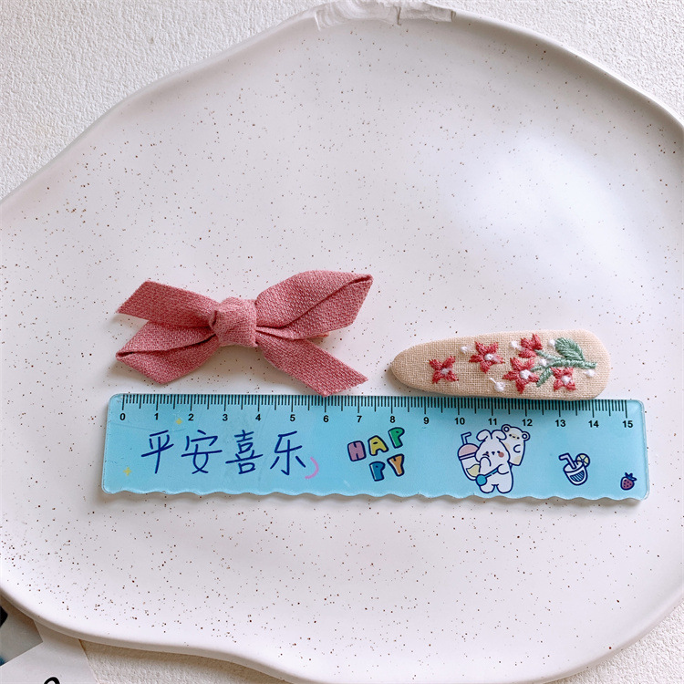 새로운 어린이 원단 활 헤어핀 달콤한 소녀의 수놓은 꽃 깨진 머리 BB 클립 측면 머리핀