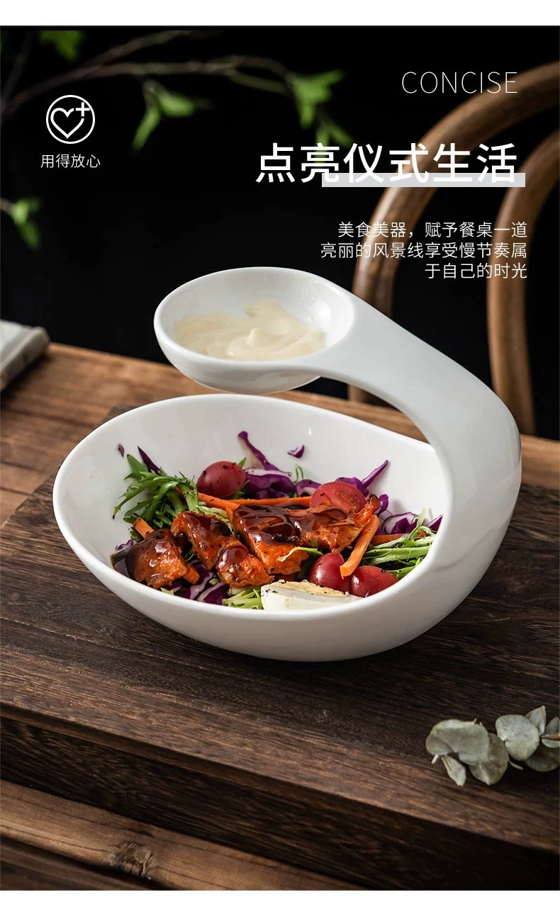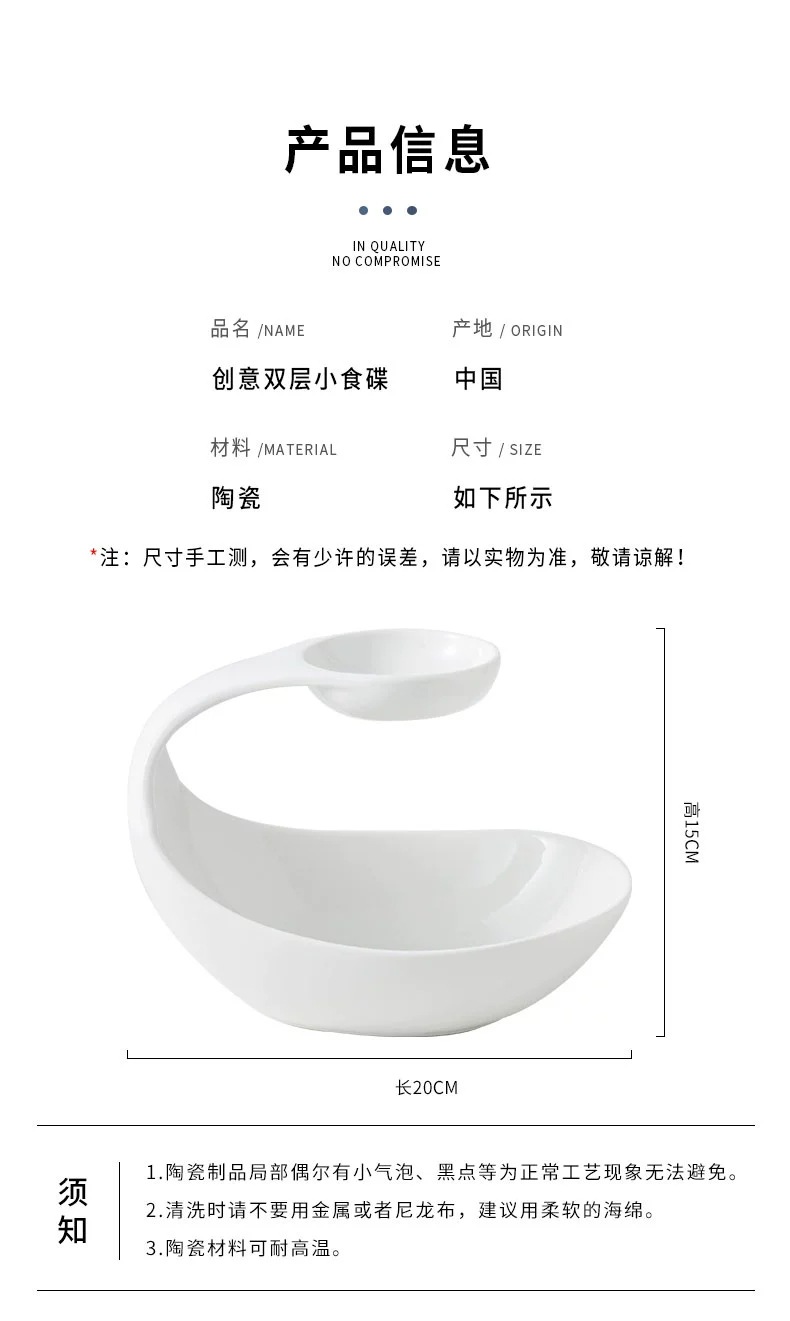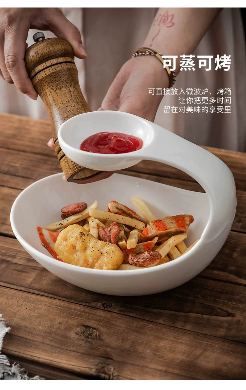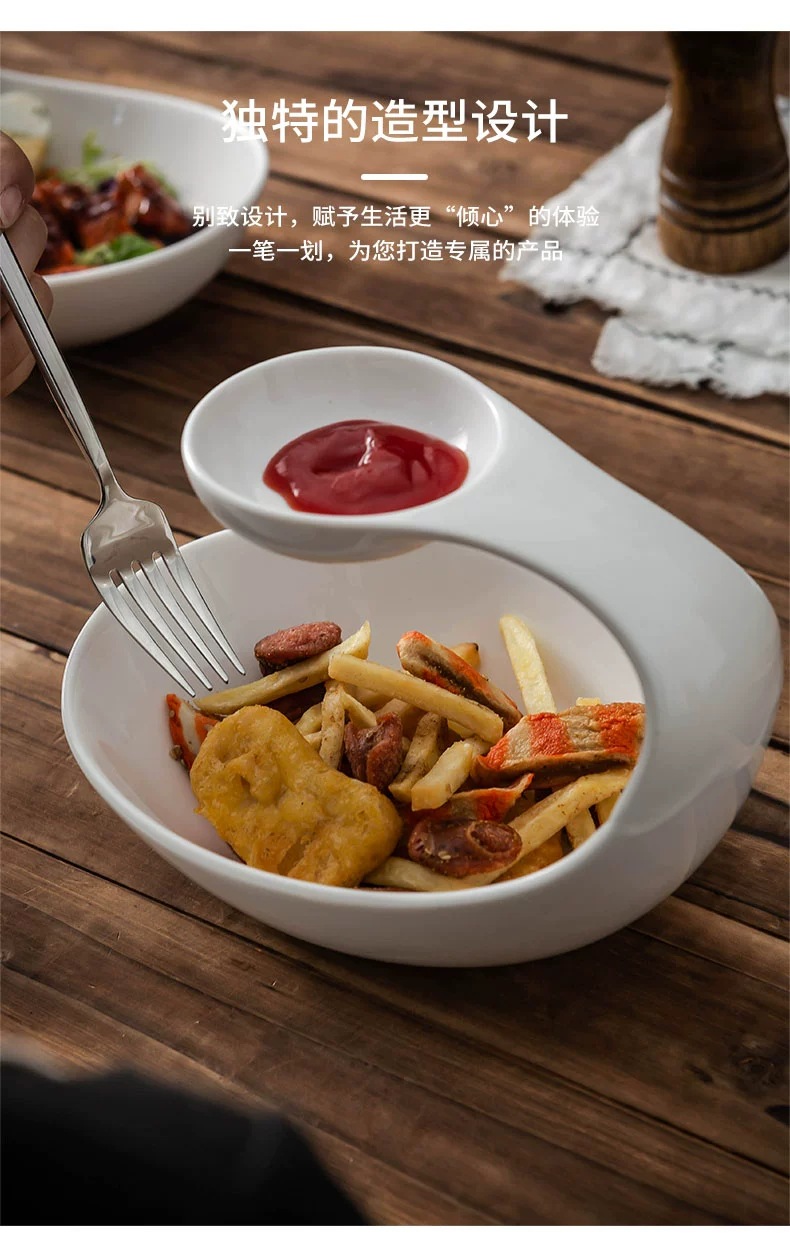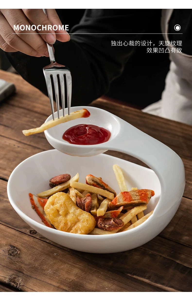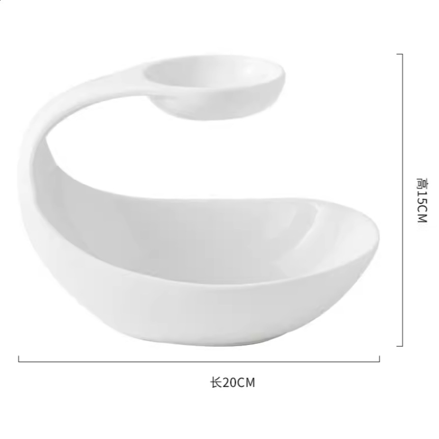 창조적 인 더블 레이어 세라믹 흰색 KTV 스낵 그릇 감자 칩 플레이트 바 차가운 접시 상업 예술적 개념 불규칙한 과일 그릇