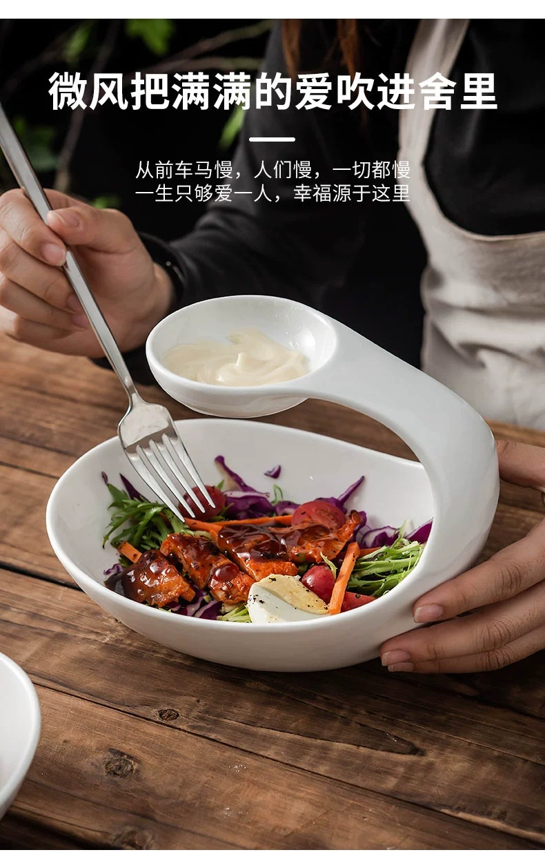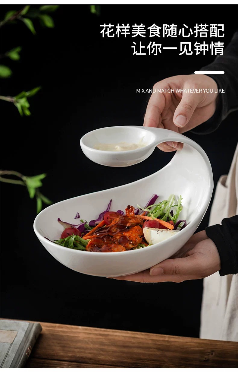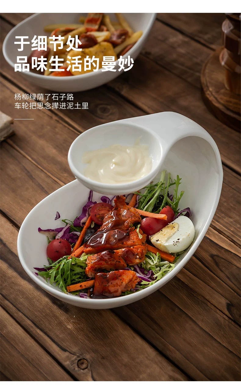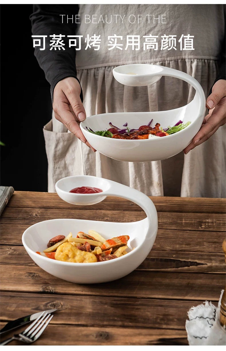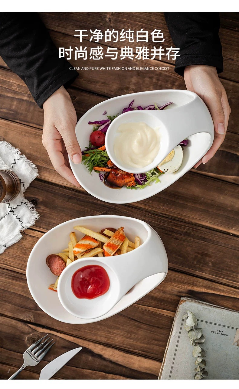 창조적 인 더블 레이어 세라믹 흰색 KTV 스낵 그릇 감자 칩 플레이트 바 차가운 접시 상업 예술적 개념 불규칙한 과일 그릇스토어 가기