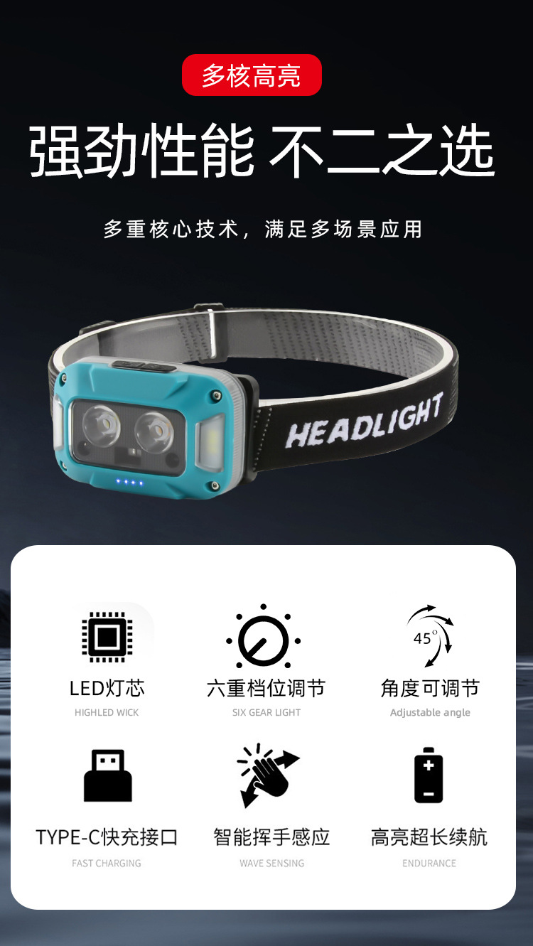 LED 야외 강한 헤드라이트 COB 작업 빛 충전식 헤드 라이트 라이딩 나이트 낚시 실행 라이트 화이트 옐로우 레드 3 라이트스토어 가기