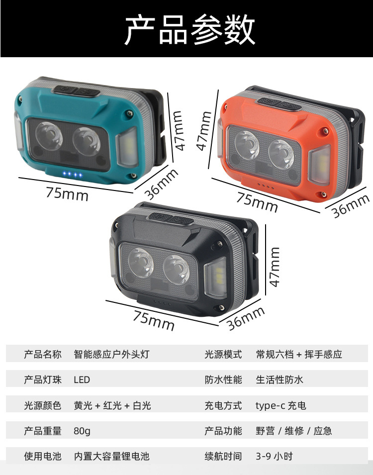 LED 야외 강한 헤드라이트 COB 작업 빛 충전식 헤드 라이트 라이딩 나이트 낚시 실행 라이트 화이트 옐로우 레드 3 라이트