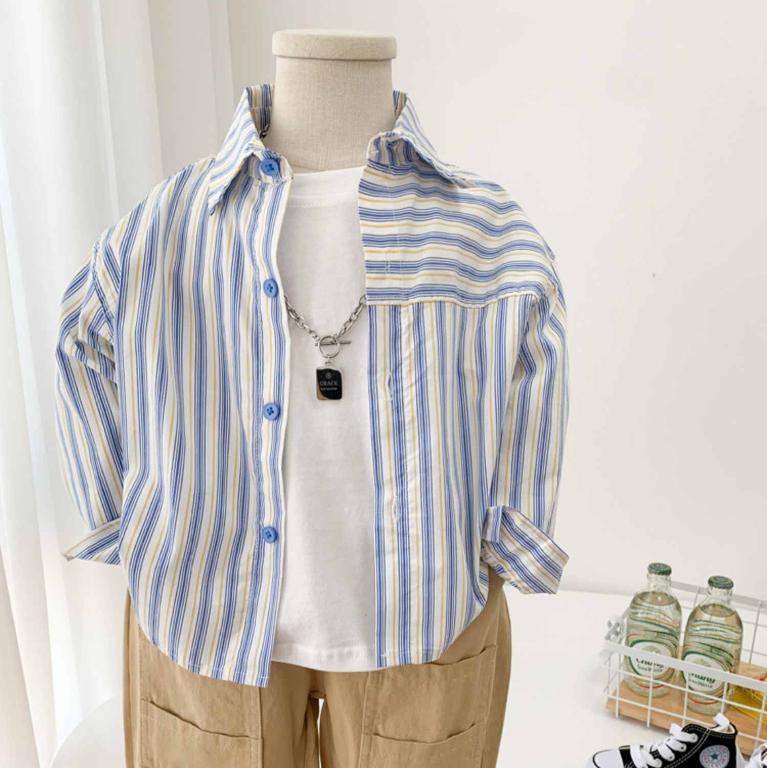 소년 얇은 셔츠 2025 서양식 어린이 봄, 가을 긴팔 셔츠 어린이 한국 스타일 스트라이프 캐주얼 탑 유행