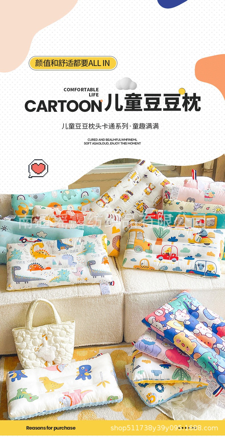 새로운 면화 어린이 진정 콩 베개 어린이 베개 유치원 학교 기숙사 베개 코어 목 보호대 측면 수면스토어 가기