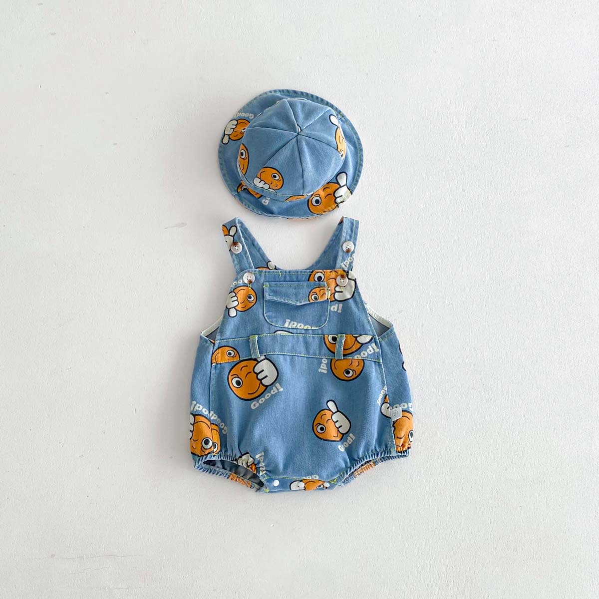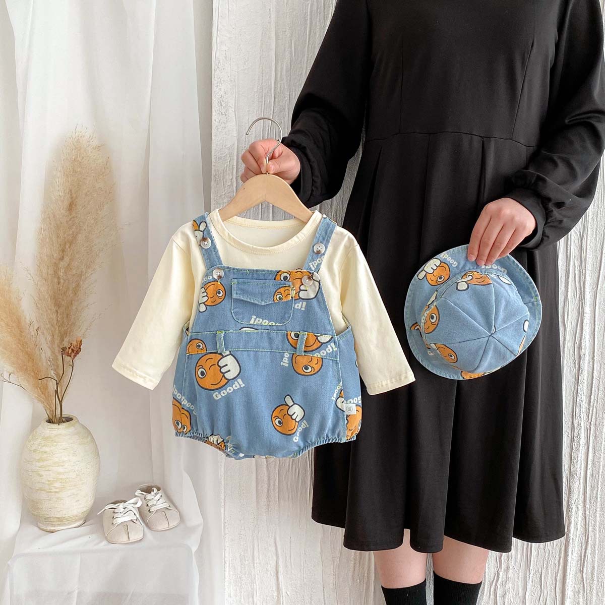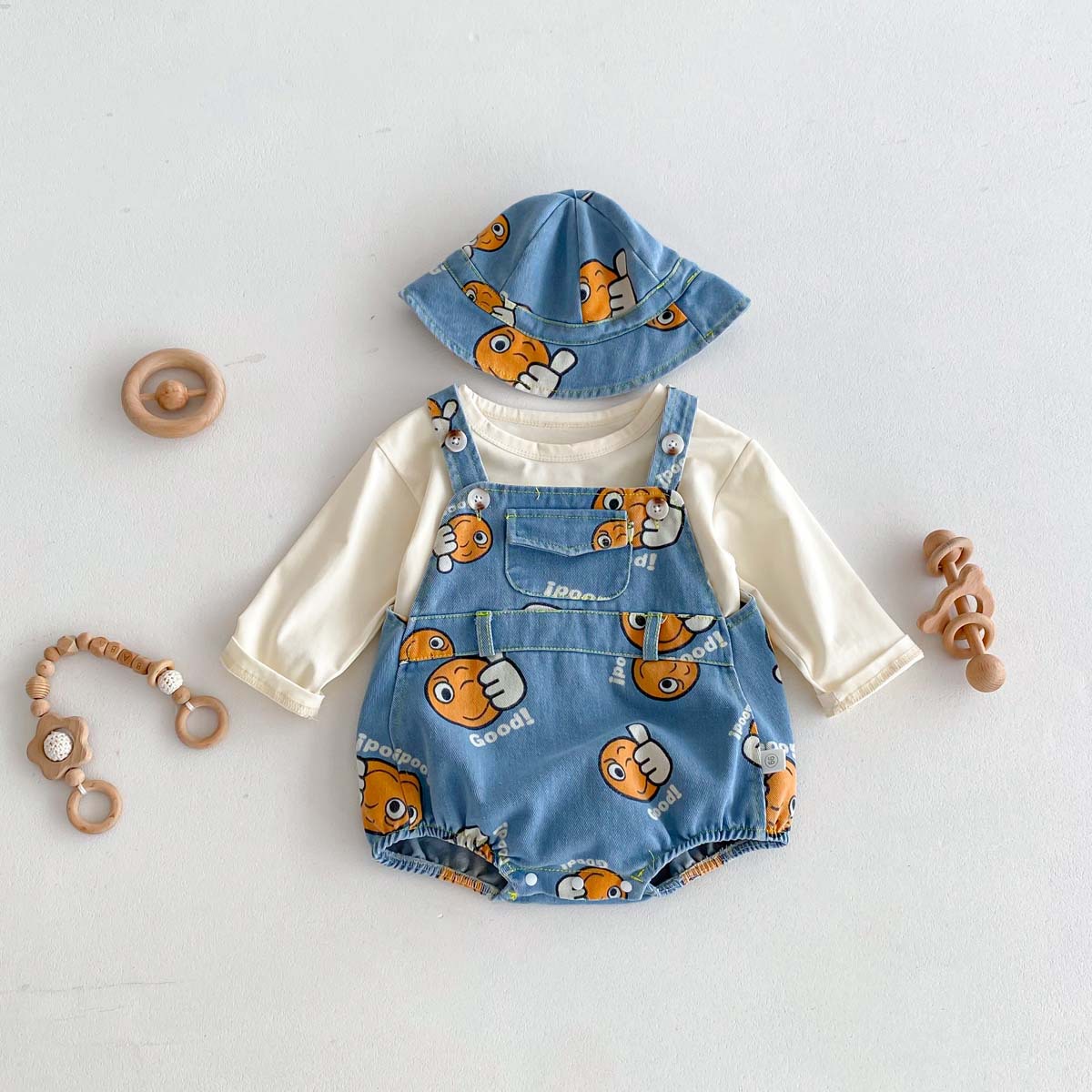 가을 남자와 여자의 새로운 만화 잘 생긴 데님 인쇄 하이 한국식 신생아 가방 방귀 옷 등반 옷 모자 보내기스토어 가기