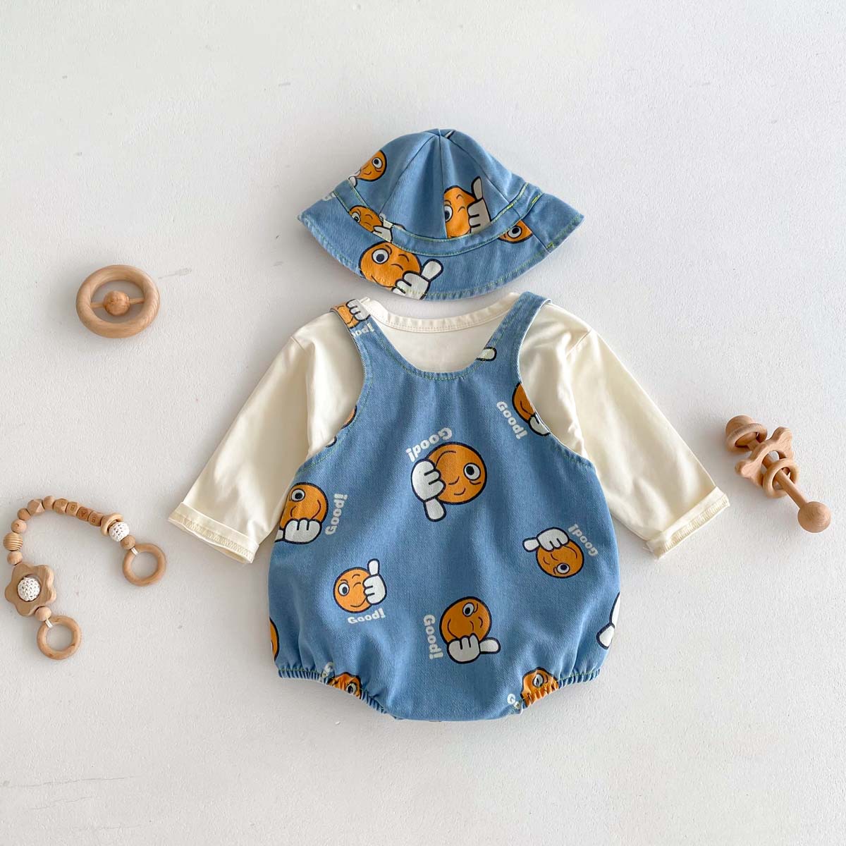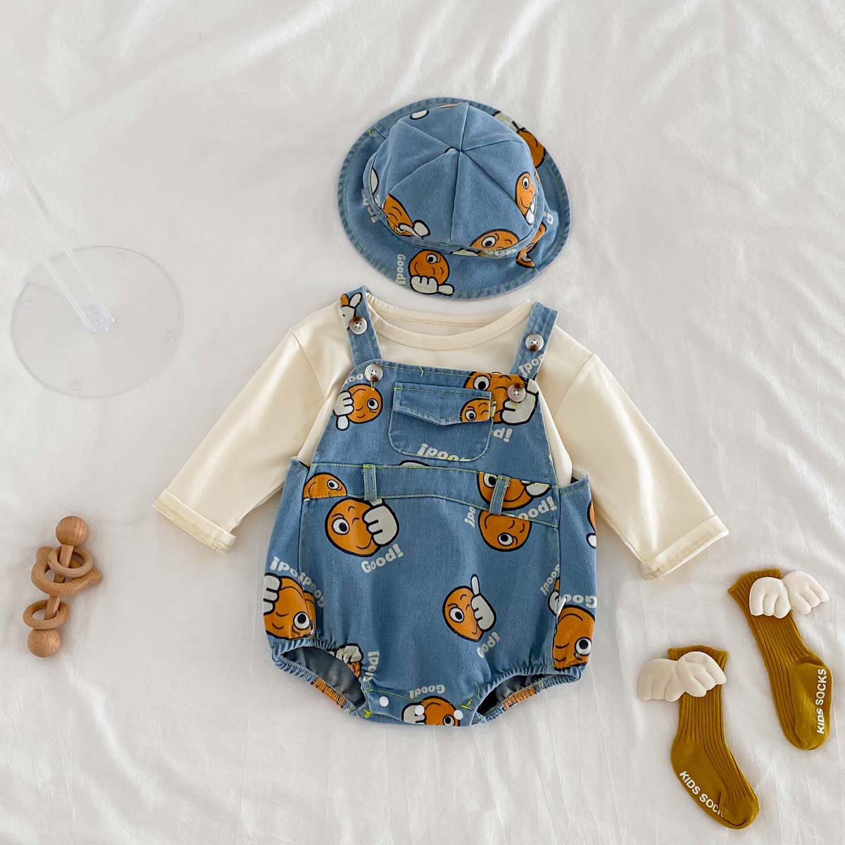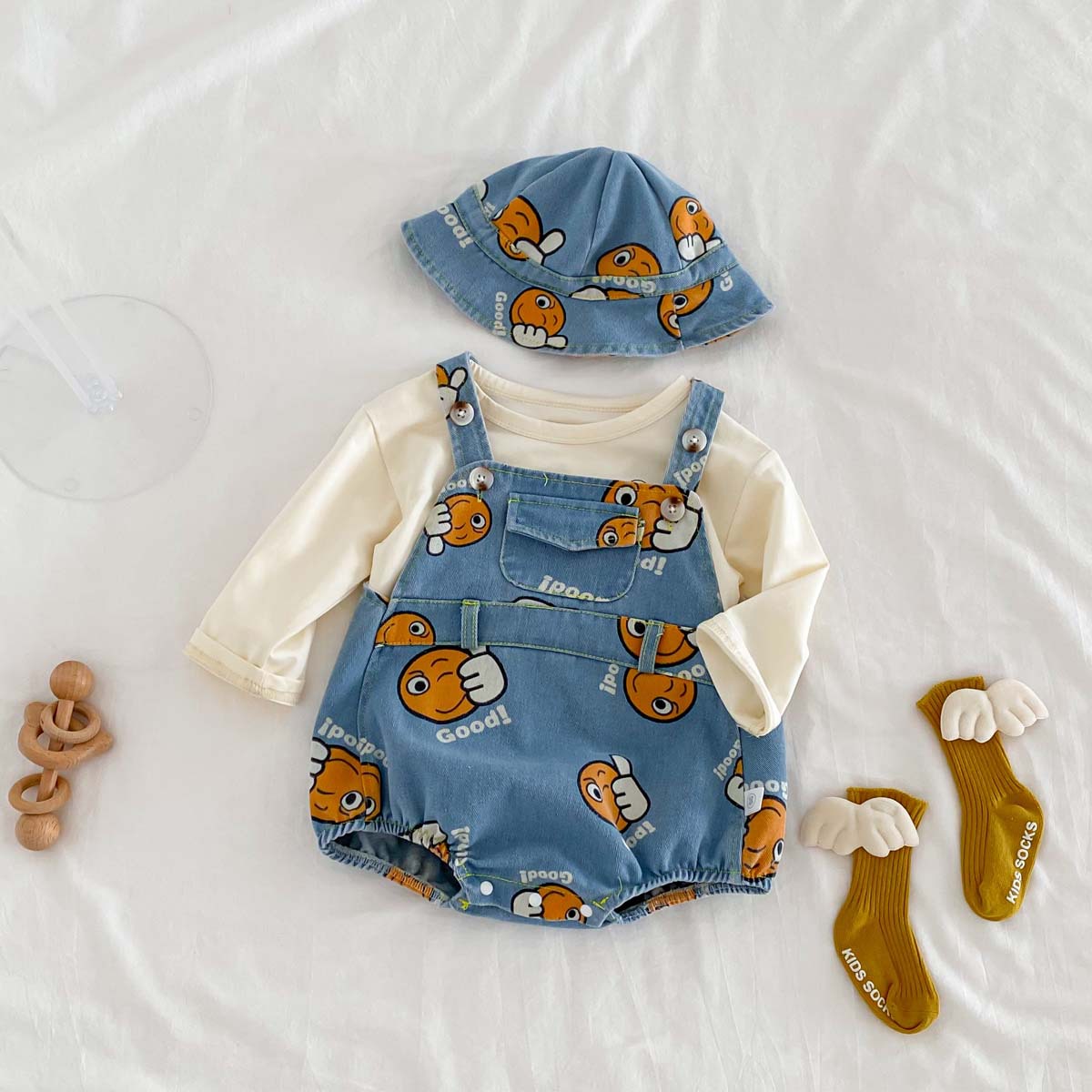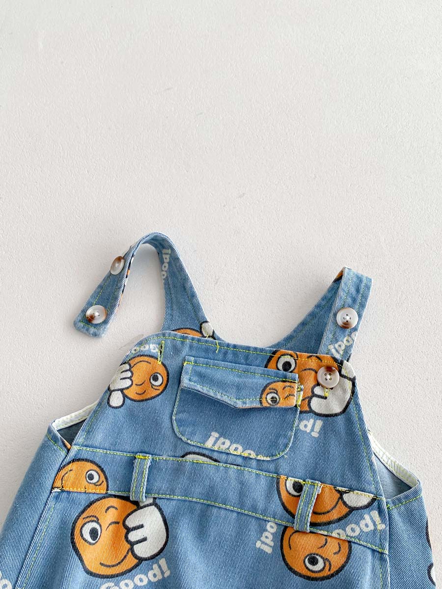가을 남자와 여자의 새로운 만화 잘 생긴 데님 인쇄 하이 한국식 신생아 가방 방귀 옷 등반 옷 모자 보내기스토어 가기