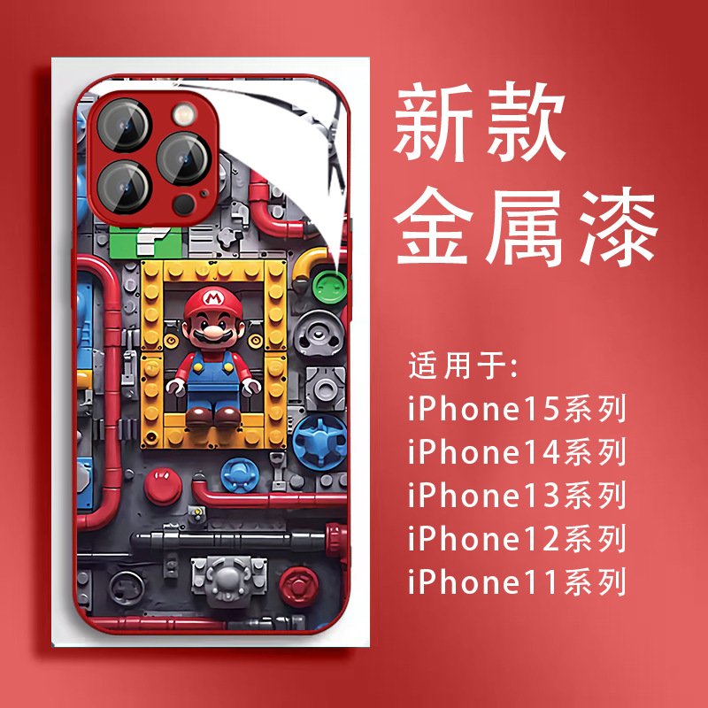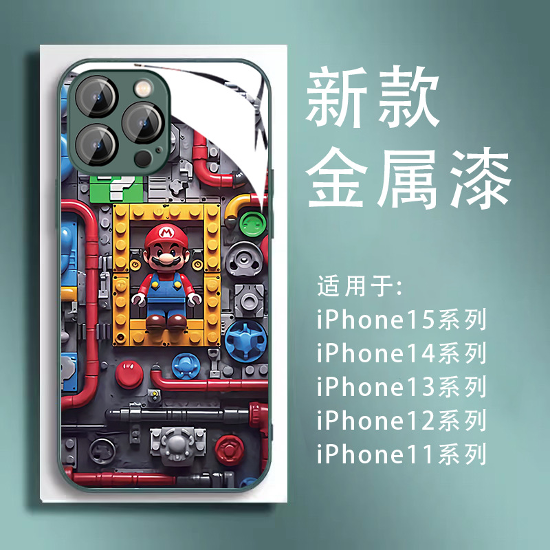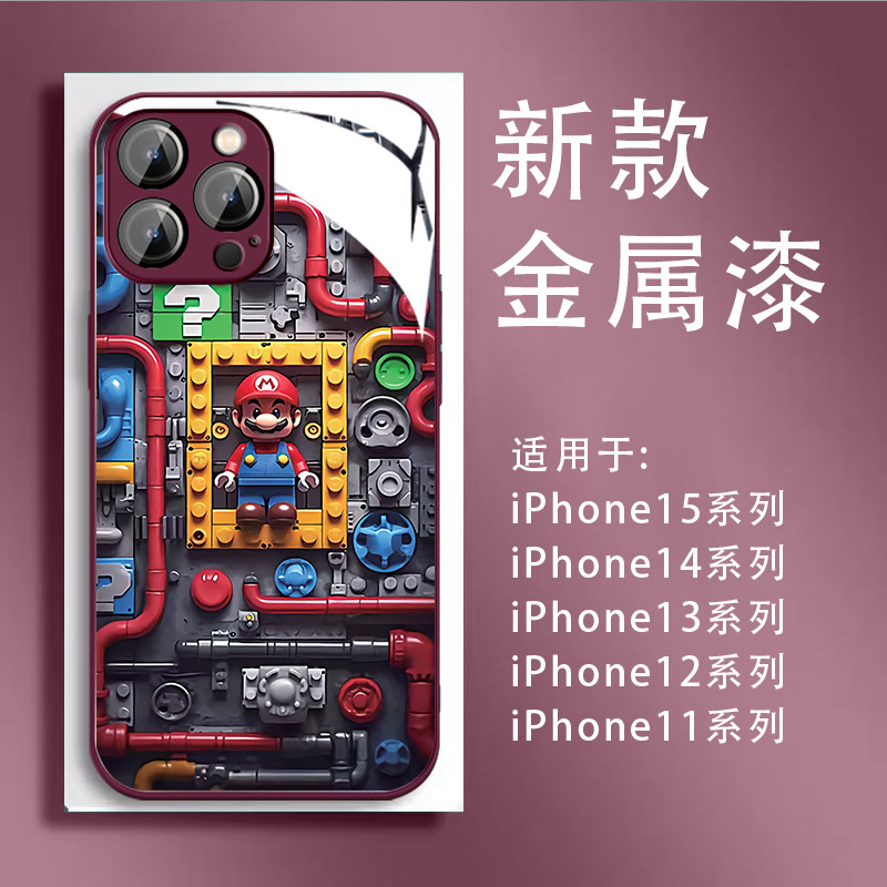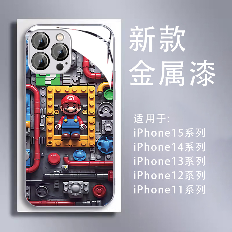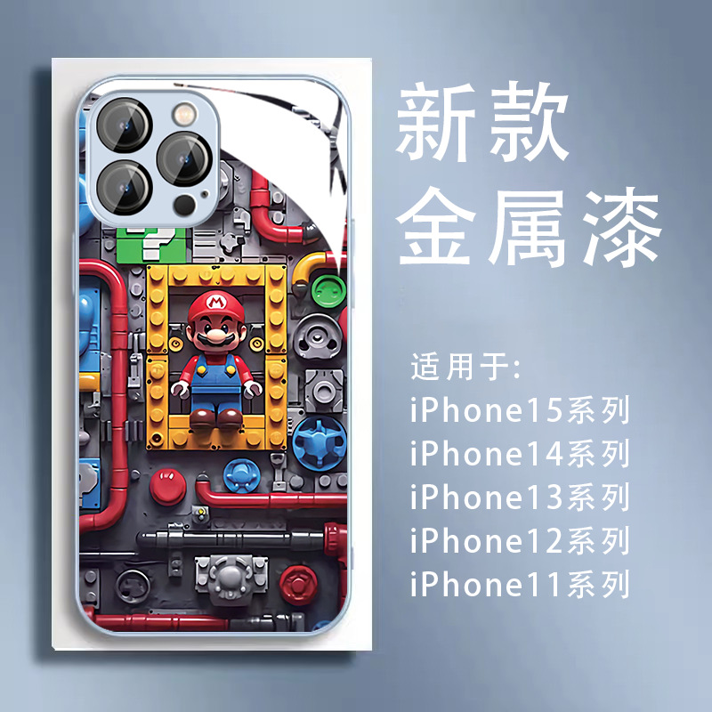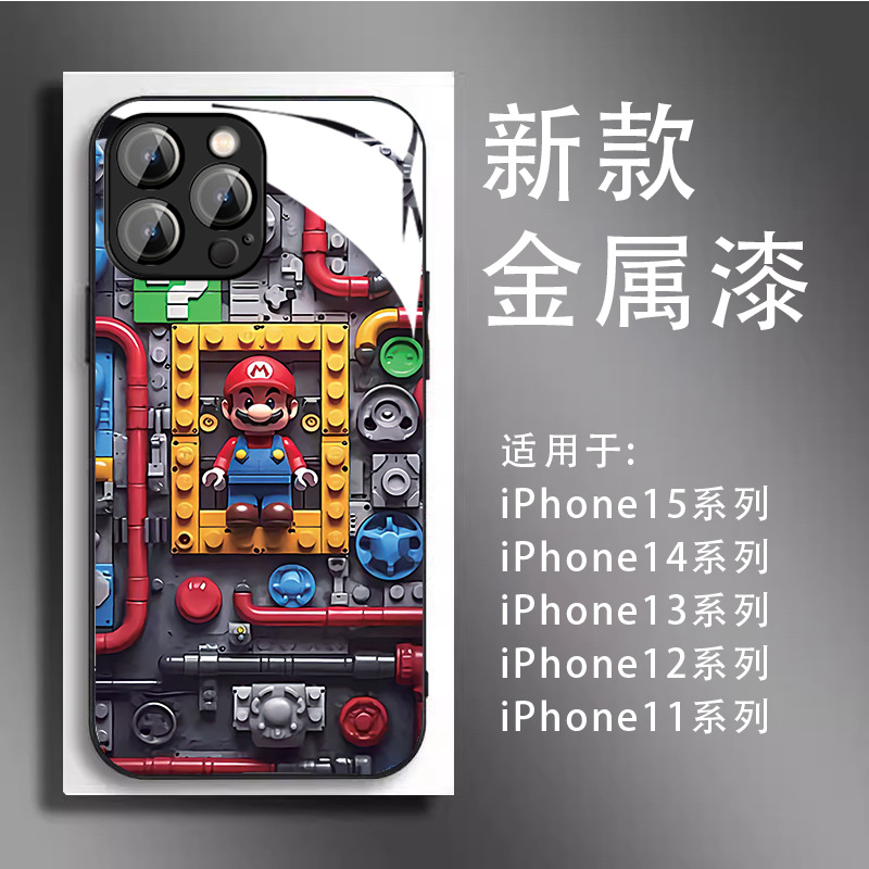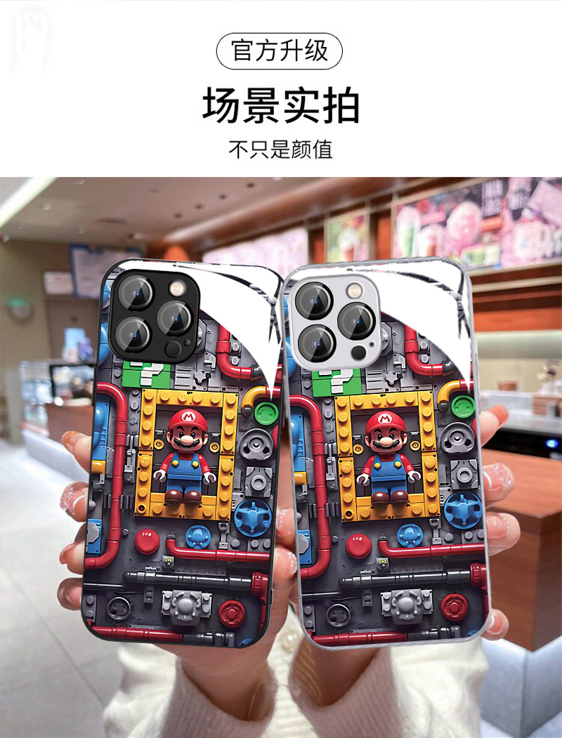 레고 브릭 마리오 애플 15promax 휴대 전화 케이스 14 액체 13 유리 케이스 12 안티 드롭 11 폭발스토어 가기