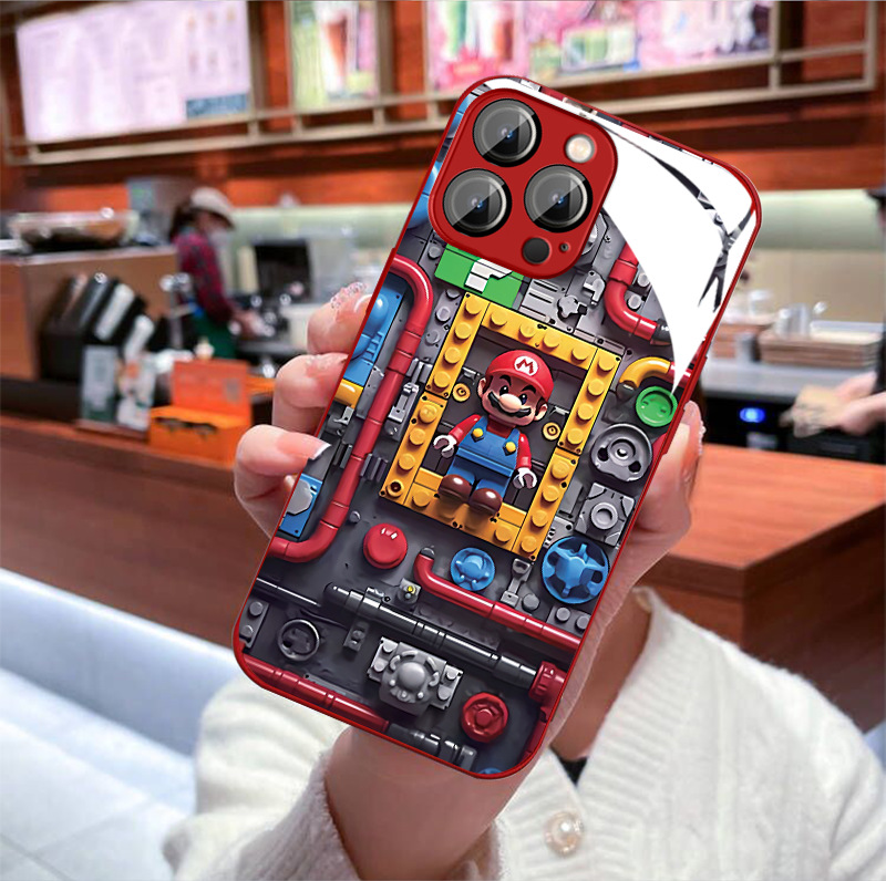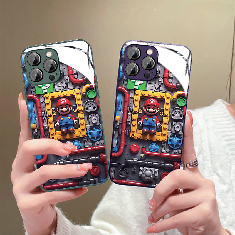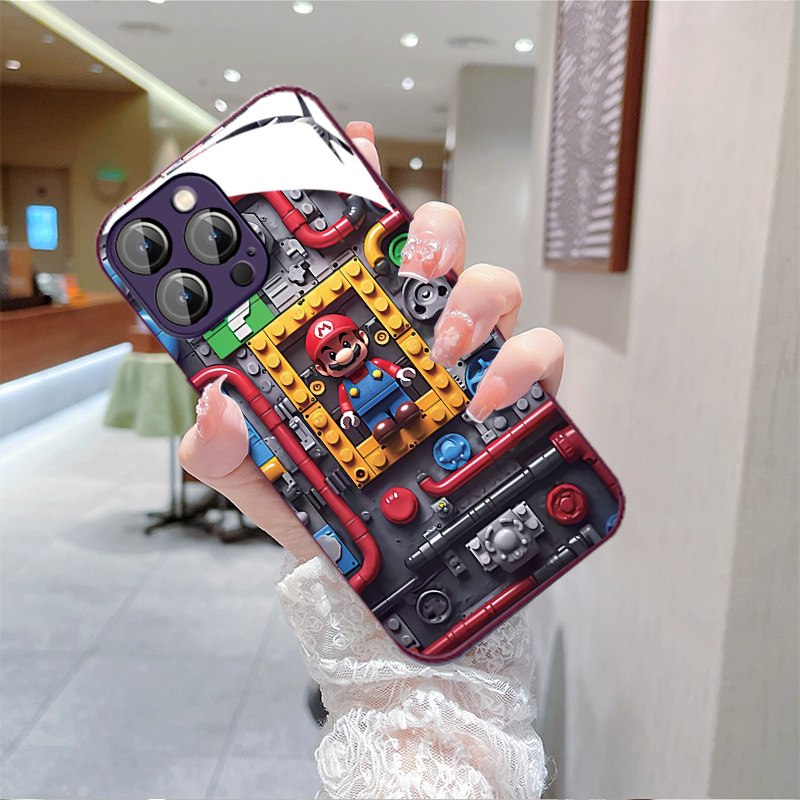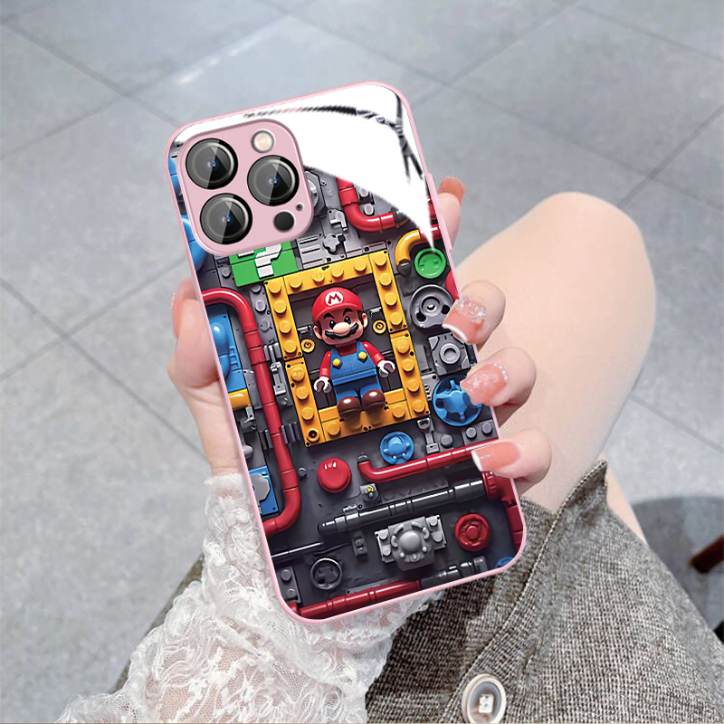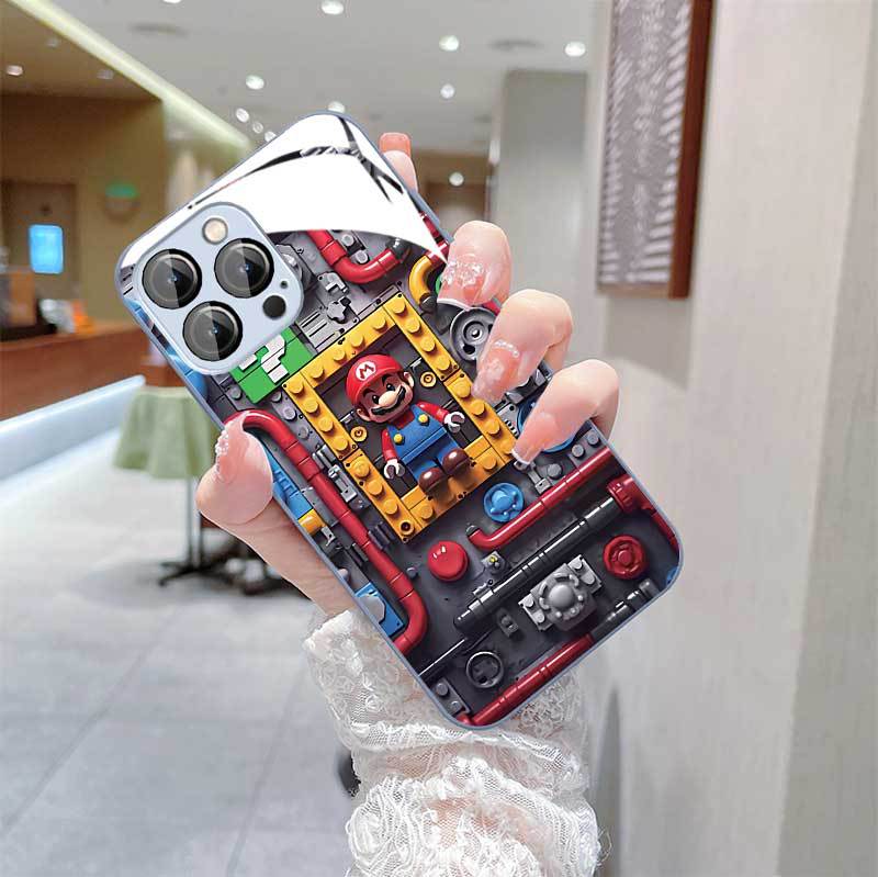 레고 브릭 마리오 애플 15promax 휴대 전화 케이스 14 액체 13 유리 케이스 12 안티 드롭 11 폭발