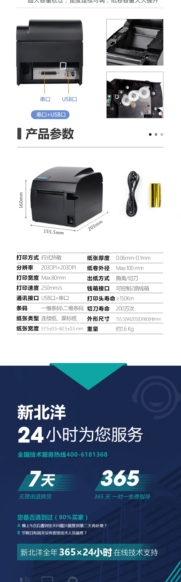 신형 북양 R580II 열전사 프린터, 프론트 데스크 계산대, 주방 주문 영수증 방수 바코드 프린터