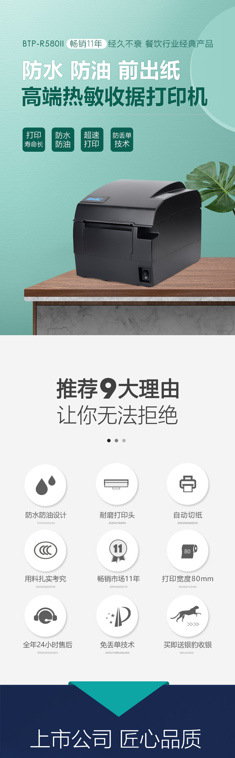 신형 북양 R580II 열전사 프린터, 프론트 데스크 계산대, 주방 주문 영수증 방수 바코드 프린터스토어 가기