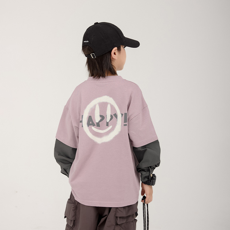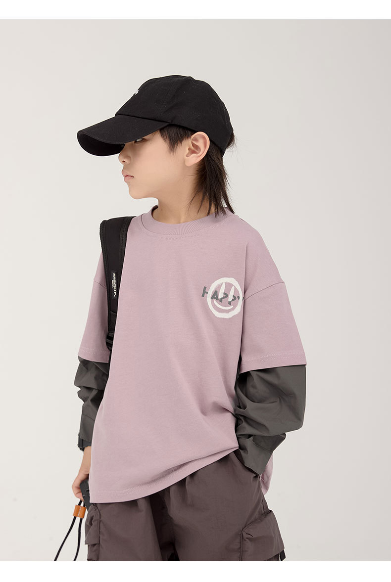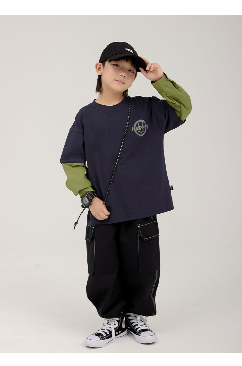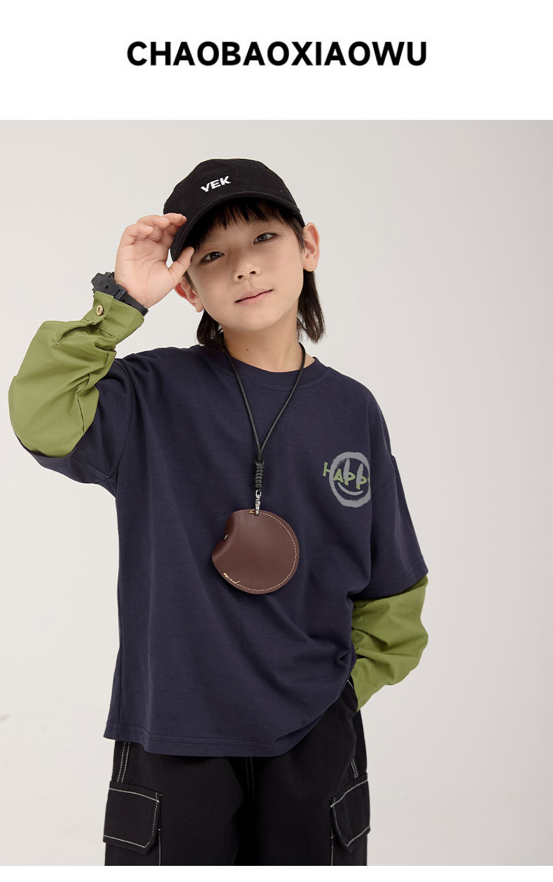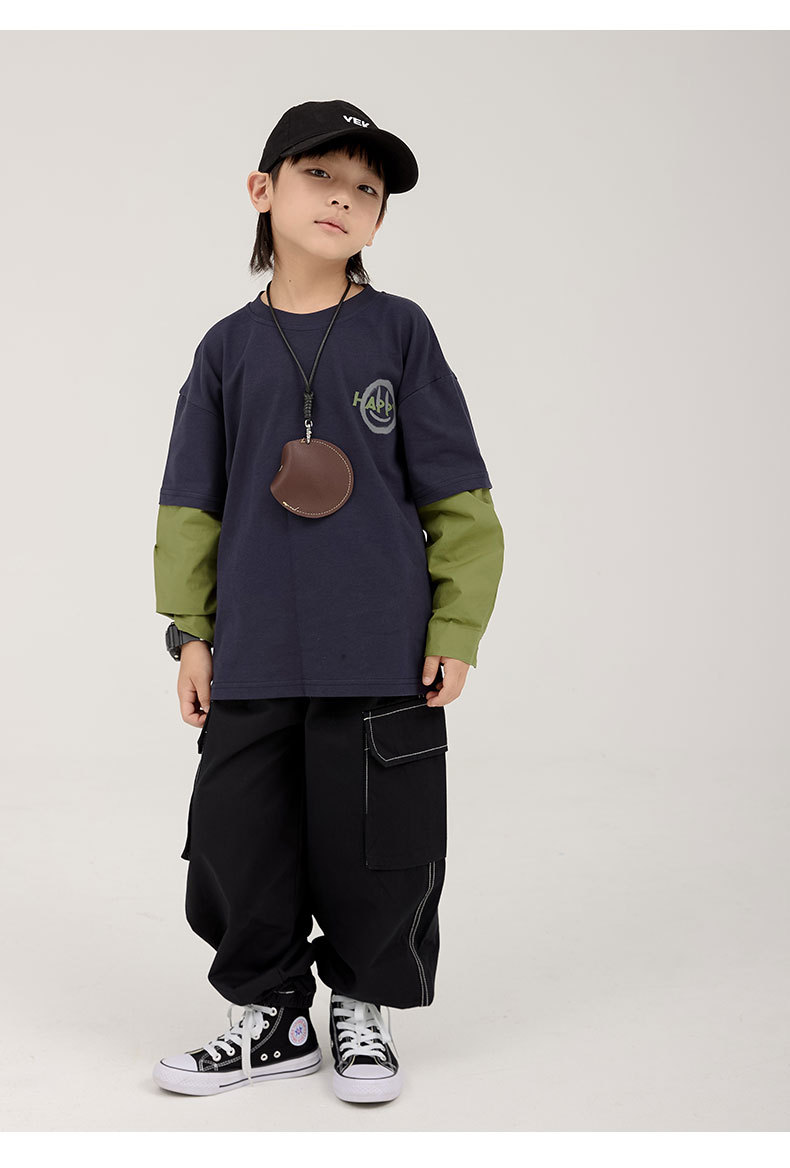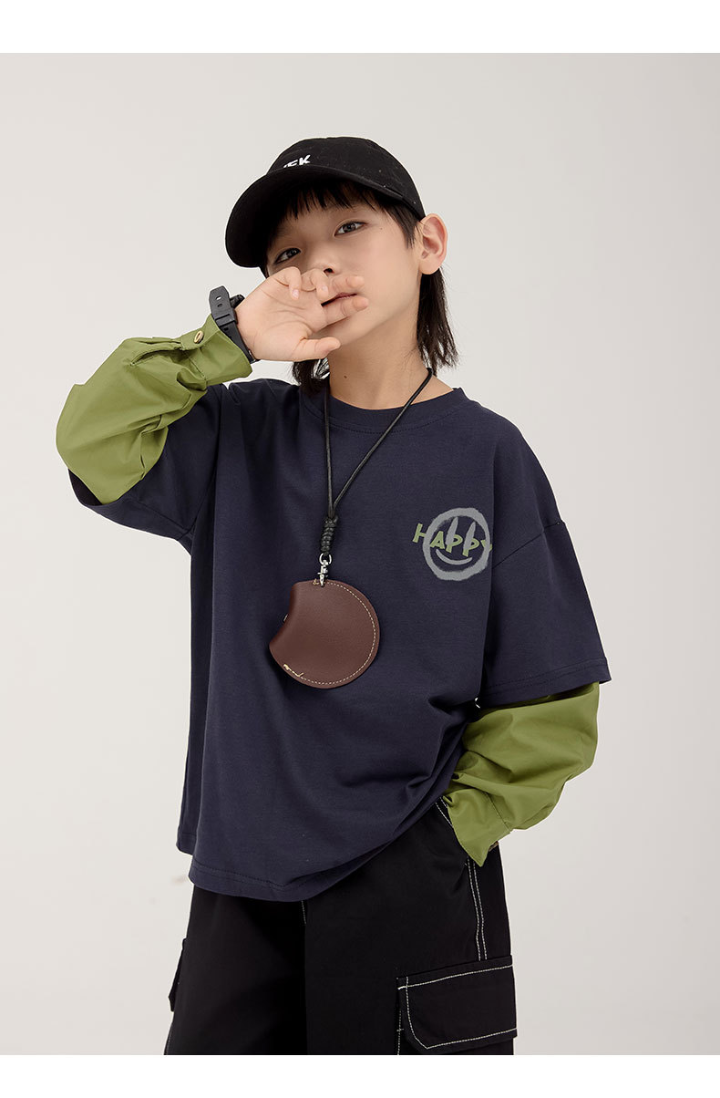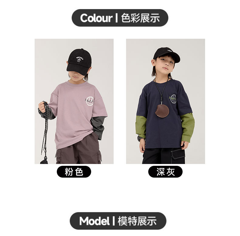 소년 긴팔 2025 새로운 어린이 한국 스타일 티셔츠 소년 아기 봄, 가을 잘 생긴 가짜 투피스 캐주얼 탑 유행스토어 가기