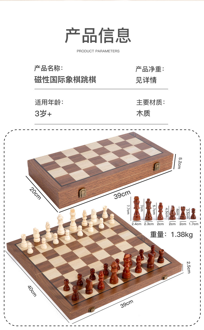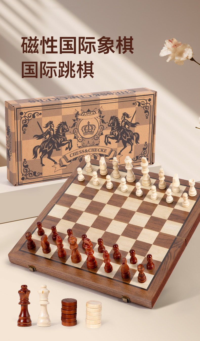 고급 더블 백 나무 검은 호두 접이식 체스 단단한 나무 자석 체스 2 대 1 세트 cpc ce스토어 가기