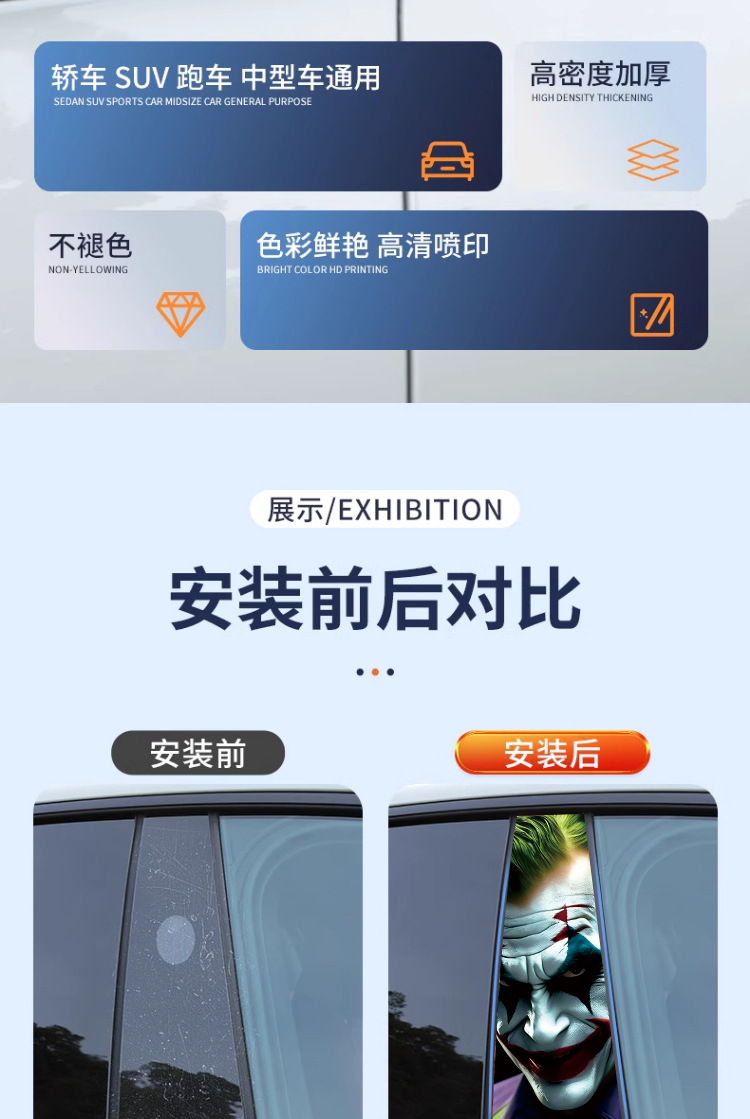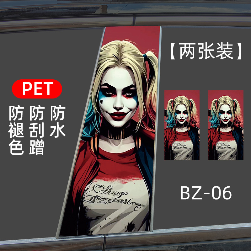 광대 스티커 자동차 중간 열 스티커 독특한 창조적 인 B-기둥 보호 필름 징크스 장식 스티커 중간 열 수정 스티커스토어 가기