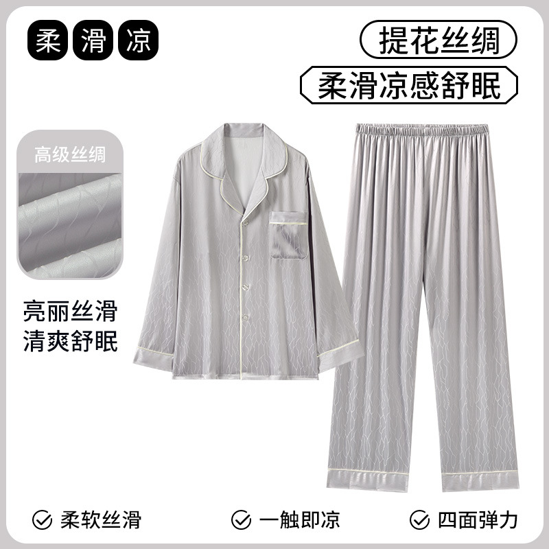 [아버지의 날 선물] 시원하고 부드러운 얼음 실크 잠옷 남성용 가정복 세트 아버지를 위한 선물 대형 사이즈