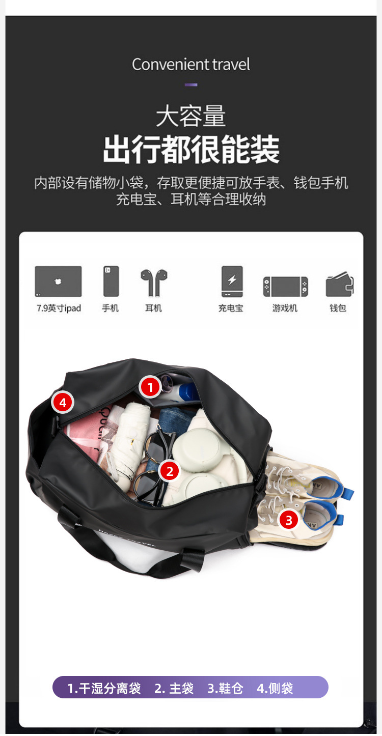 단거리 여행 수납가방, 경량 수하물가방, 출장용 대용량 핸드백, 여행용 피트니스백, 트레이닝백