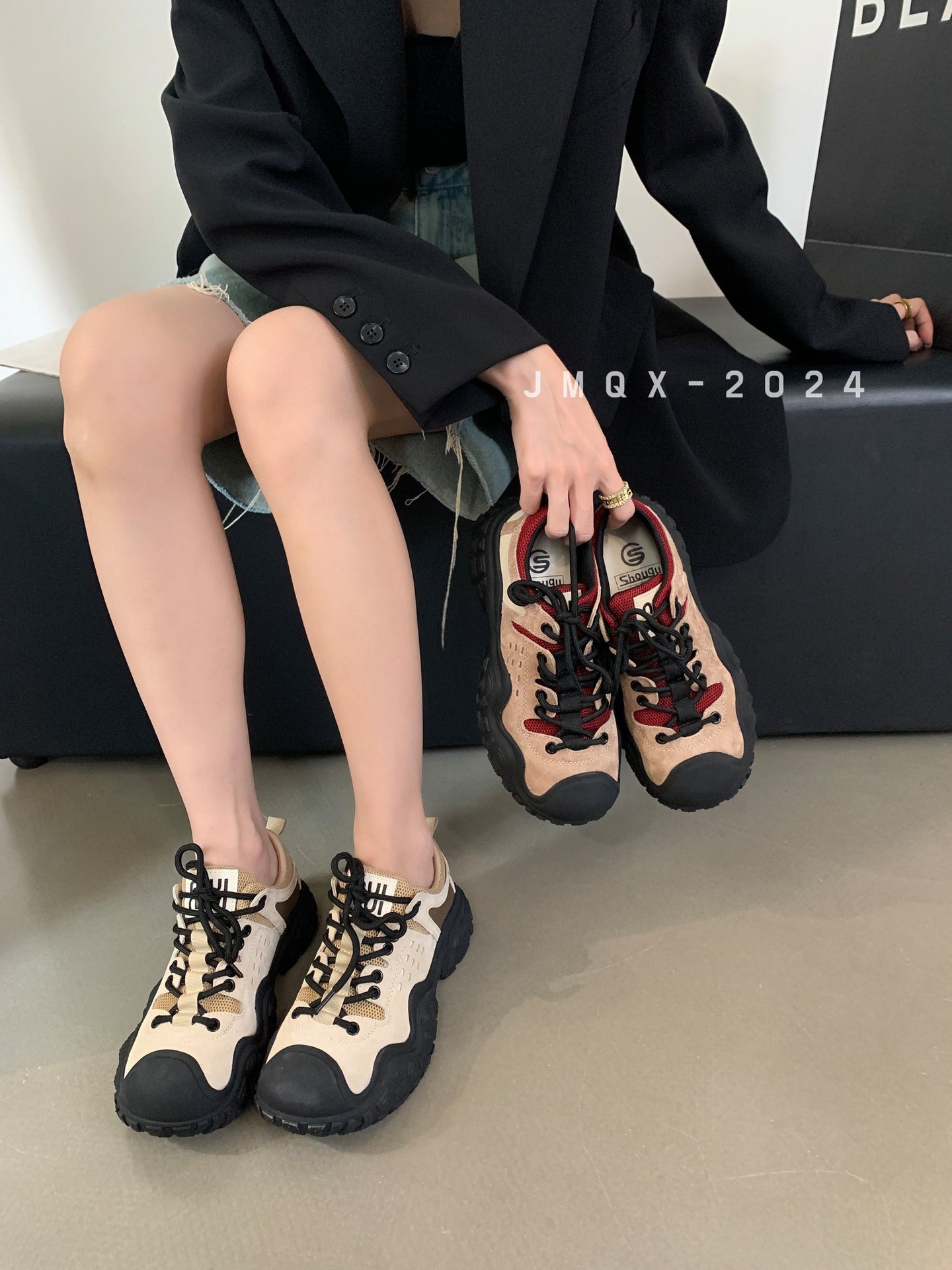 유럽 2024 새로운 여성 신발 라운드 헤드 컬러 매칭 높이 증가 Torre 신발 캐주얼 스포츠 여성 신발 야외 등산 신발 트렌디