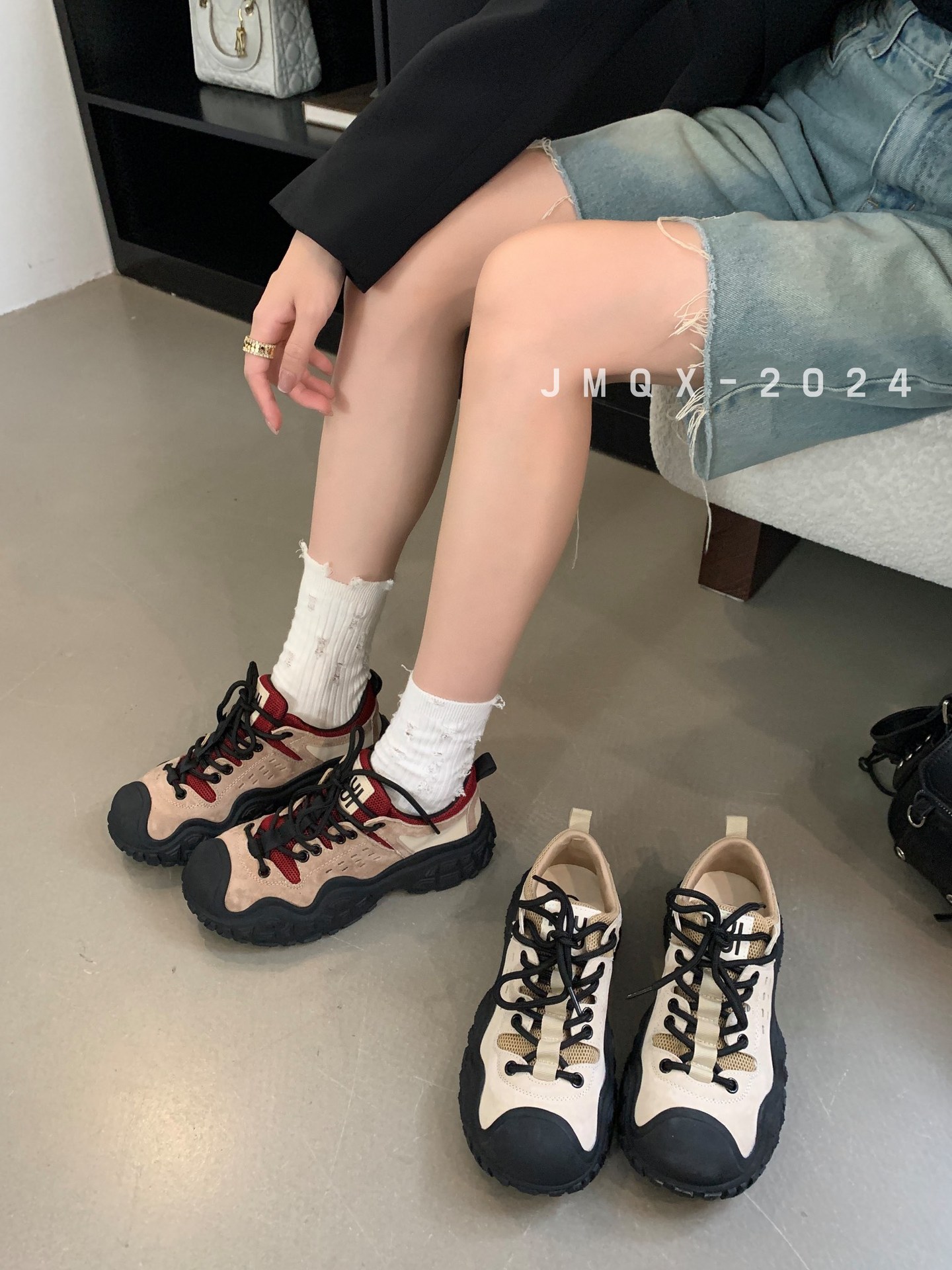 유럽 2024 새로운 여성 신발 라운드 헤드 컬러 매칭 높이 증가 Torre 신발 캐주얼 스포츠 여성 신발 야외 등산 신발 트렌디스토어 가기