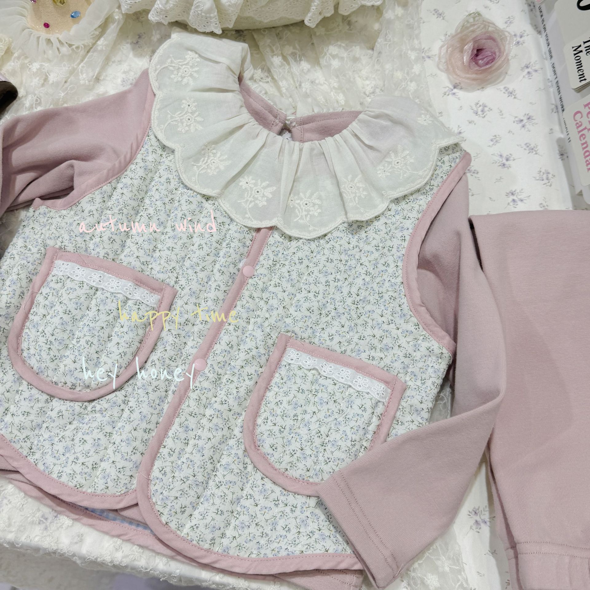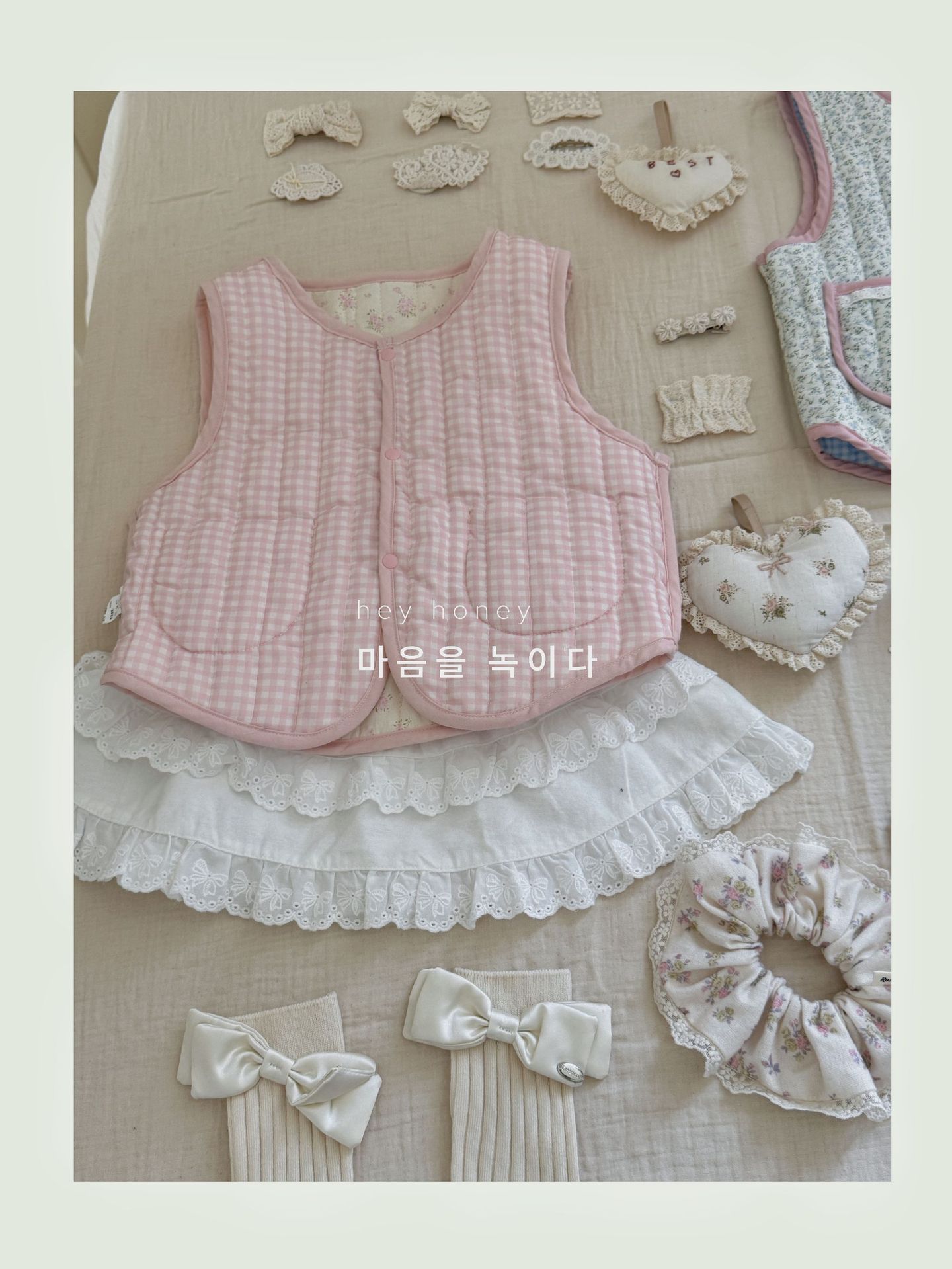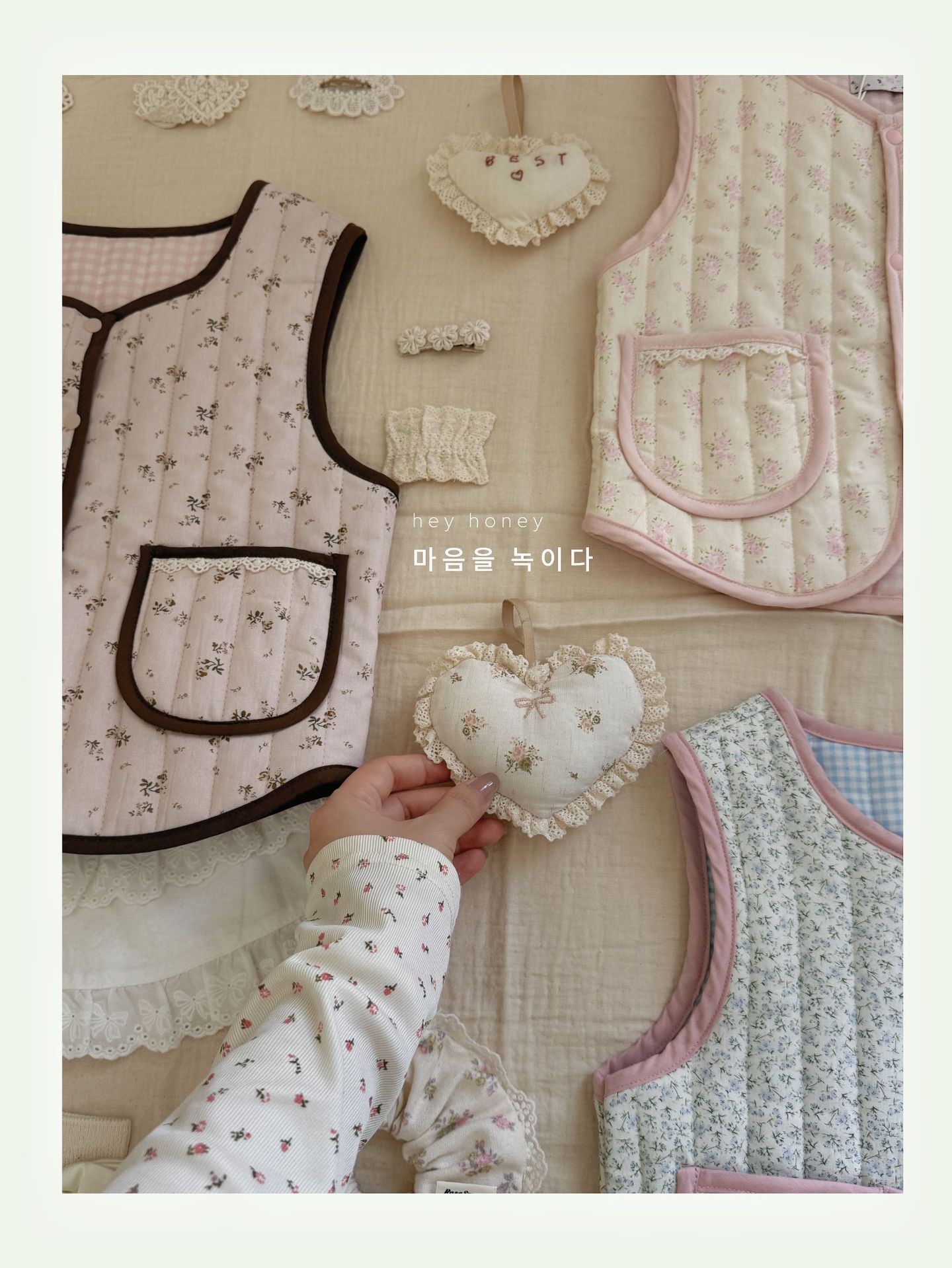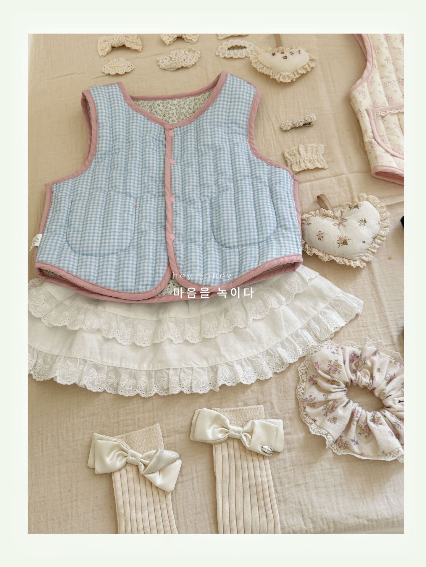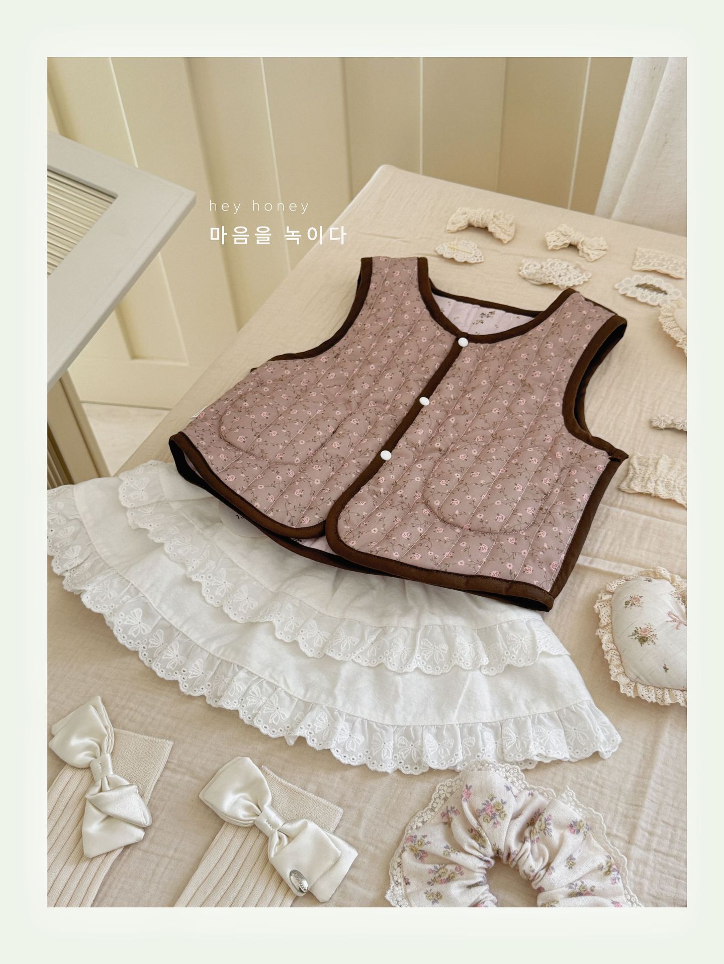 대형 및 소형 롤 24 어린이 가을, 겨울 퀼트 조끼 한국 스타일 소녀 따뜻한 연인 프린트 조끼 양면 면