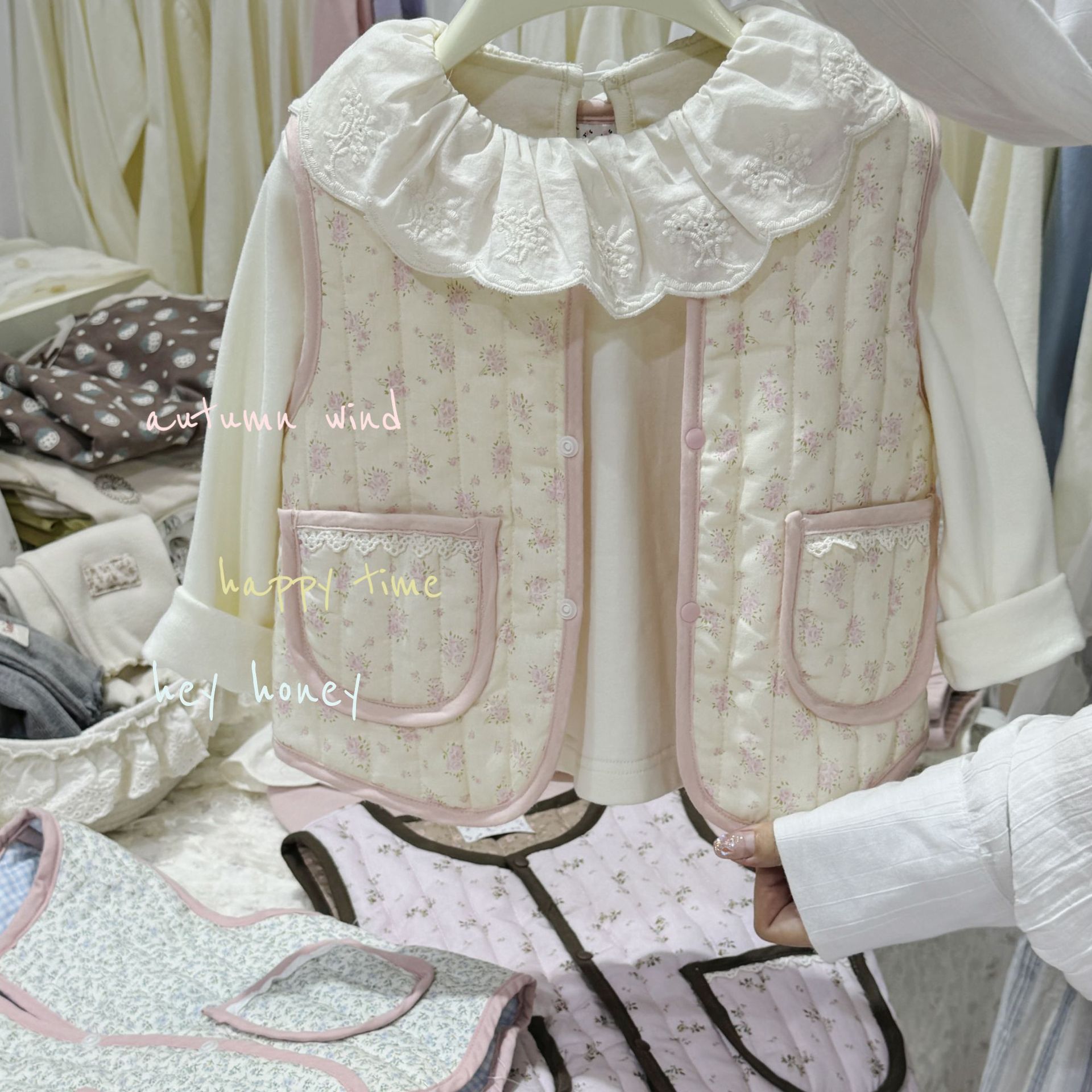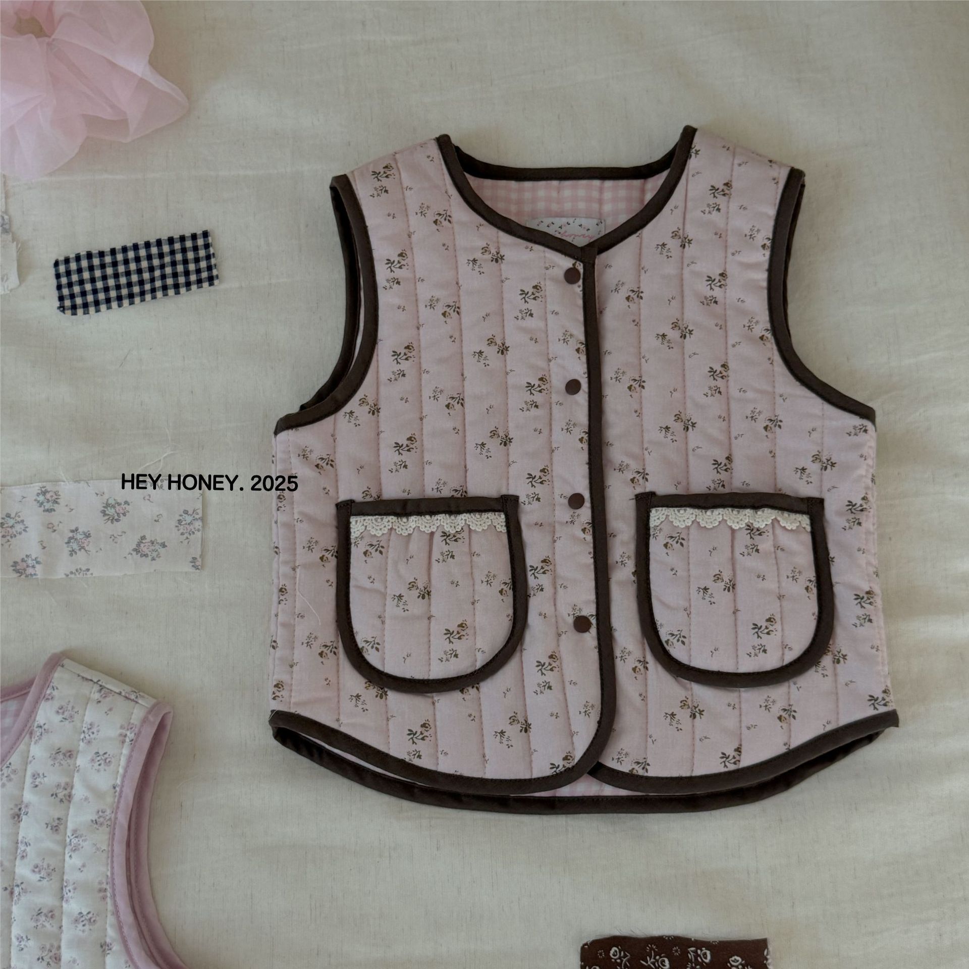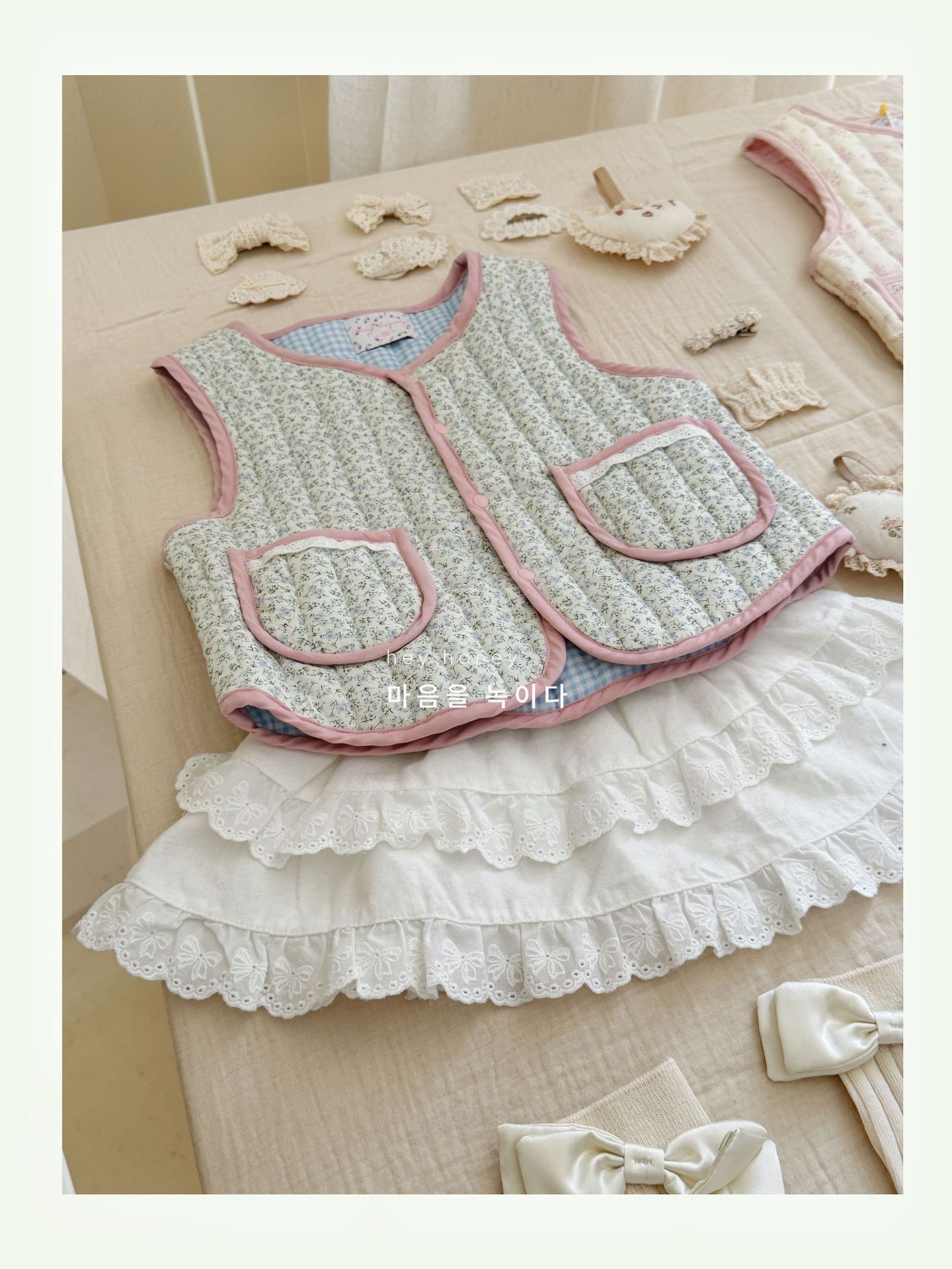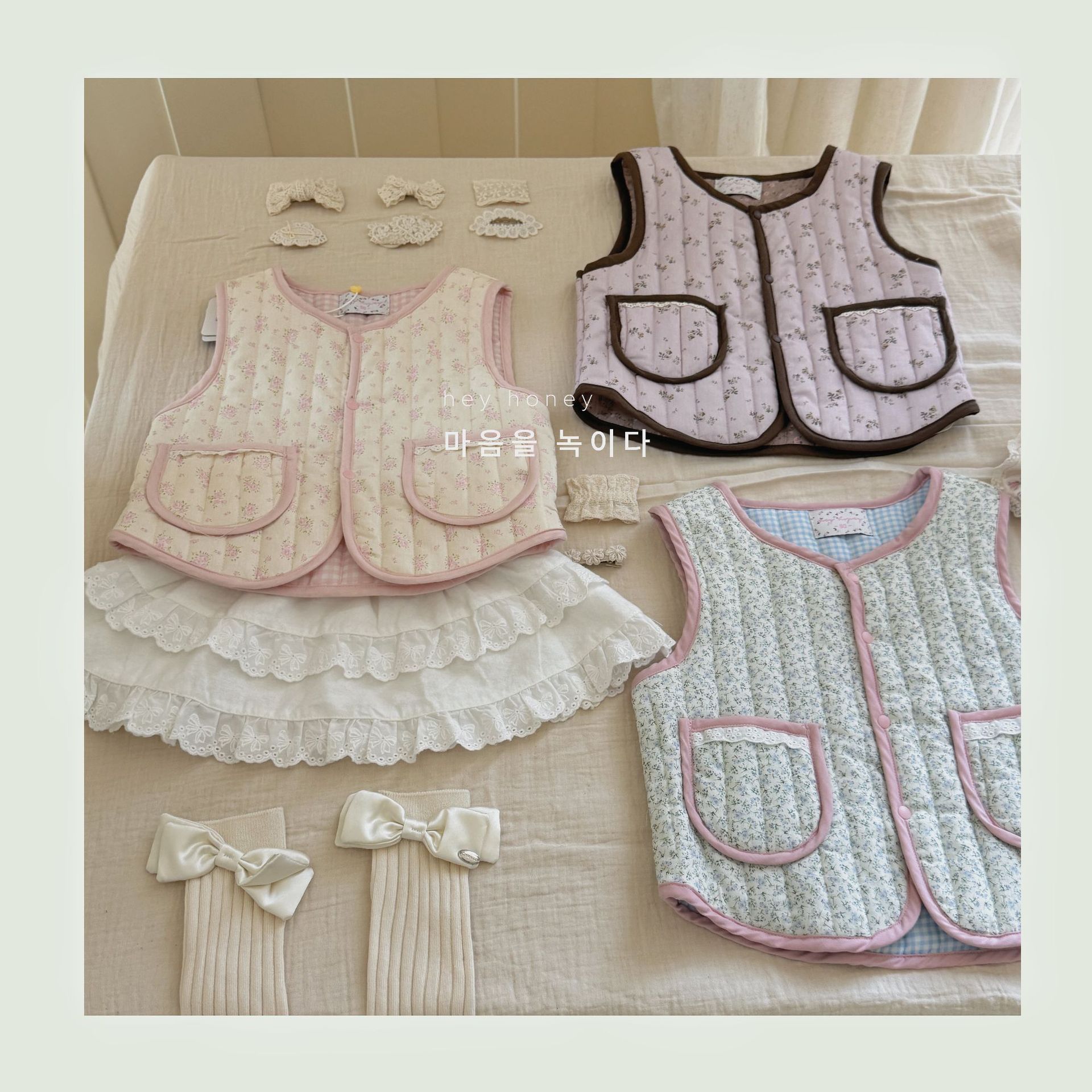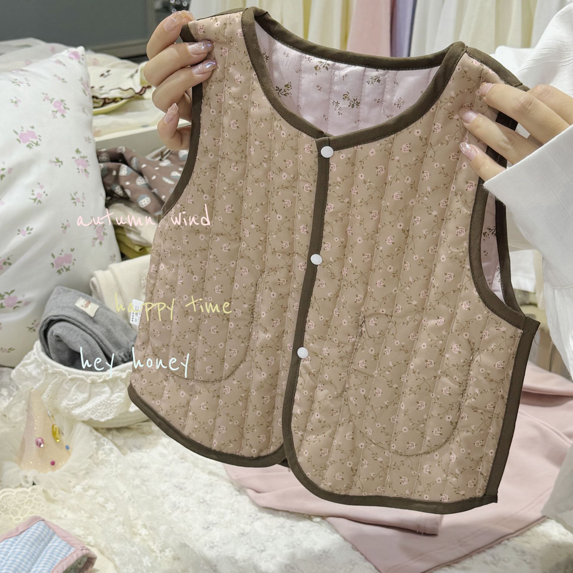 대형 및 소형 롤 24 어린이 가을, 겨울 퀼트 조끼 한국 스타일 소녀 따뜻한 연인 프린트 조끼 양면 면스토어 가기