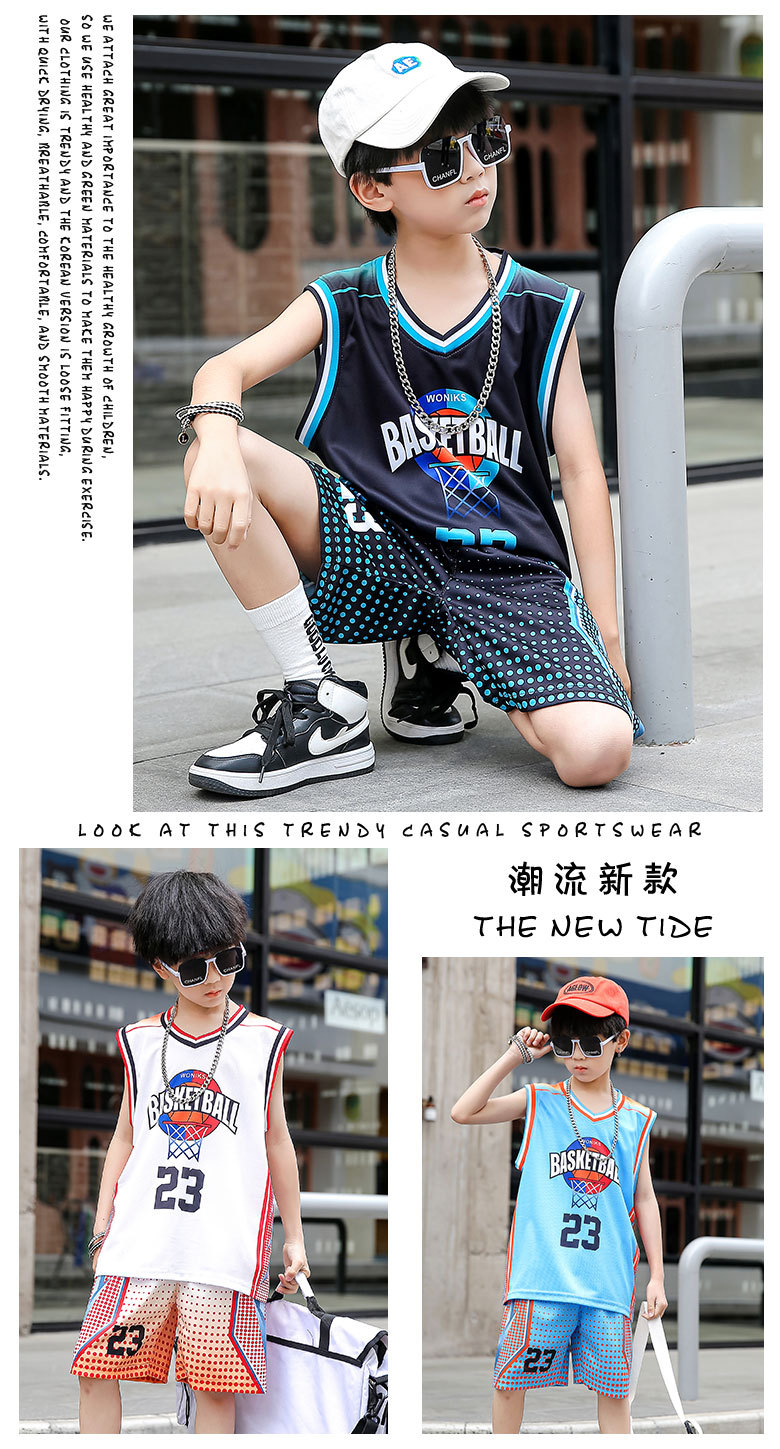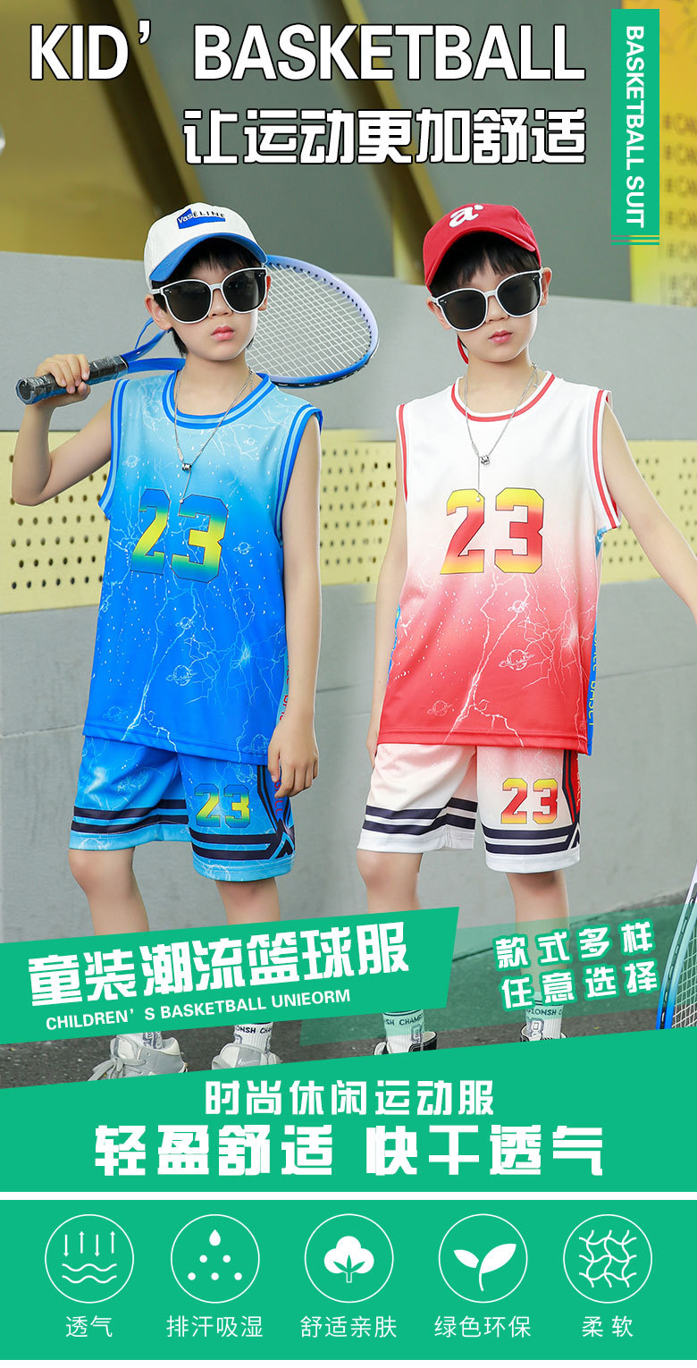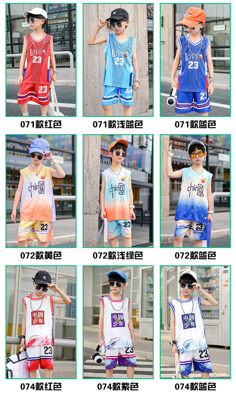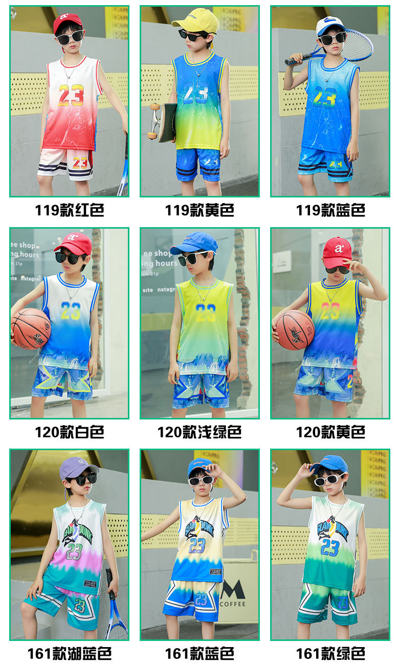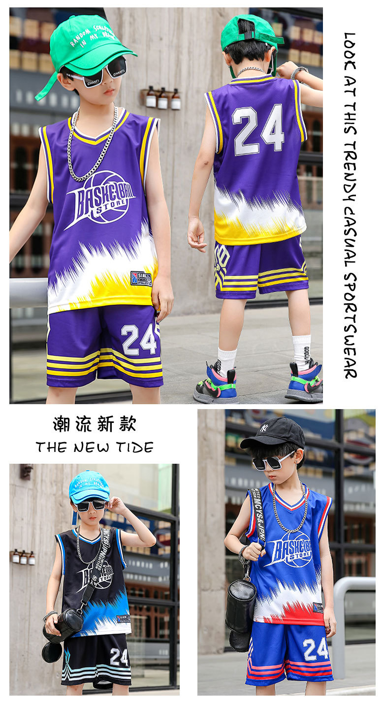 새로운 어린이 농구 옷 세트 소년 여름 조끼 소녀 패션 쿨웨어 그라디언트 야외 캐주얼 운동복스토어 가기