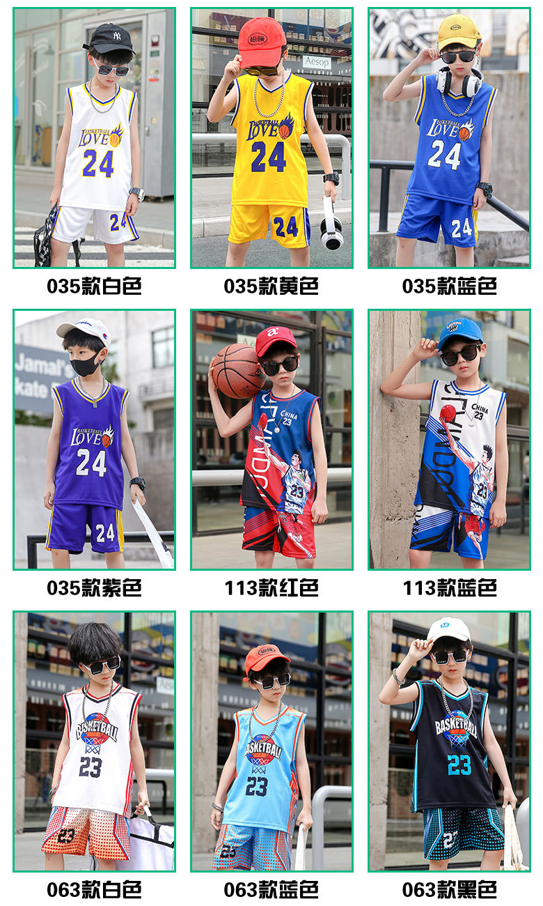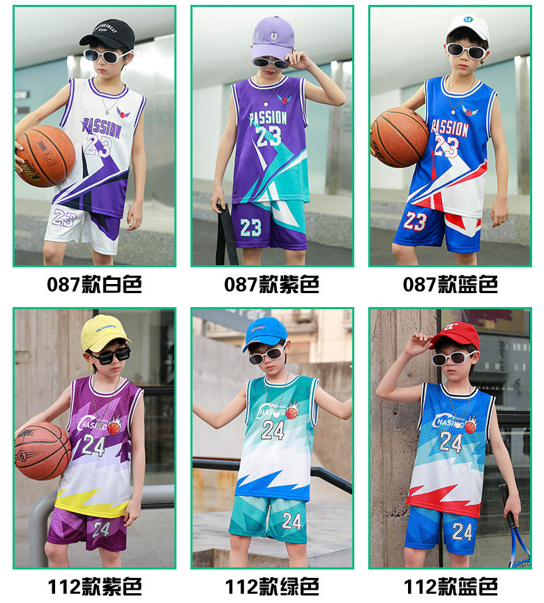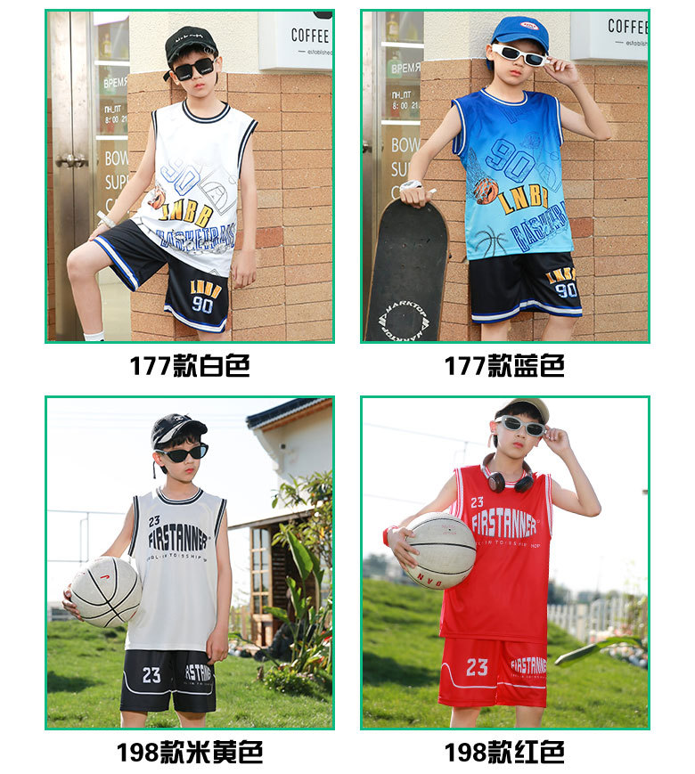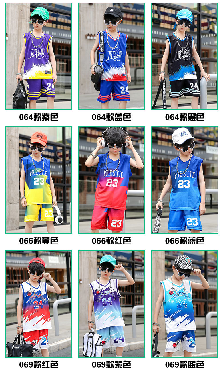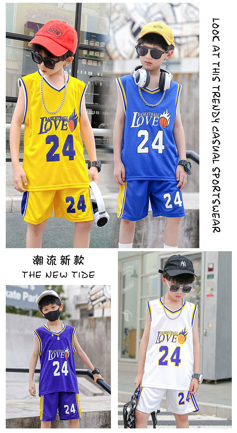 새로운 어린이 농구 옷 세트 소년 여름 조끼 소녀 패션 쿨웨어 그라디언트 야외 캐주얼 운동복스토어 가기