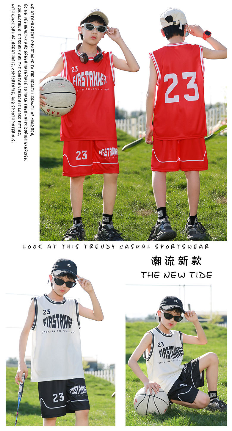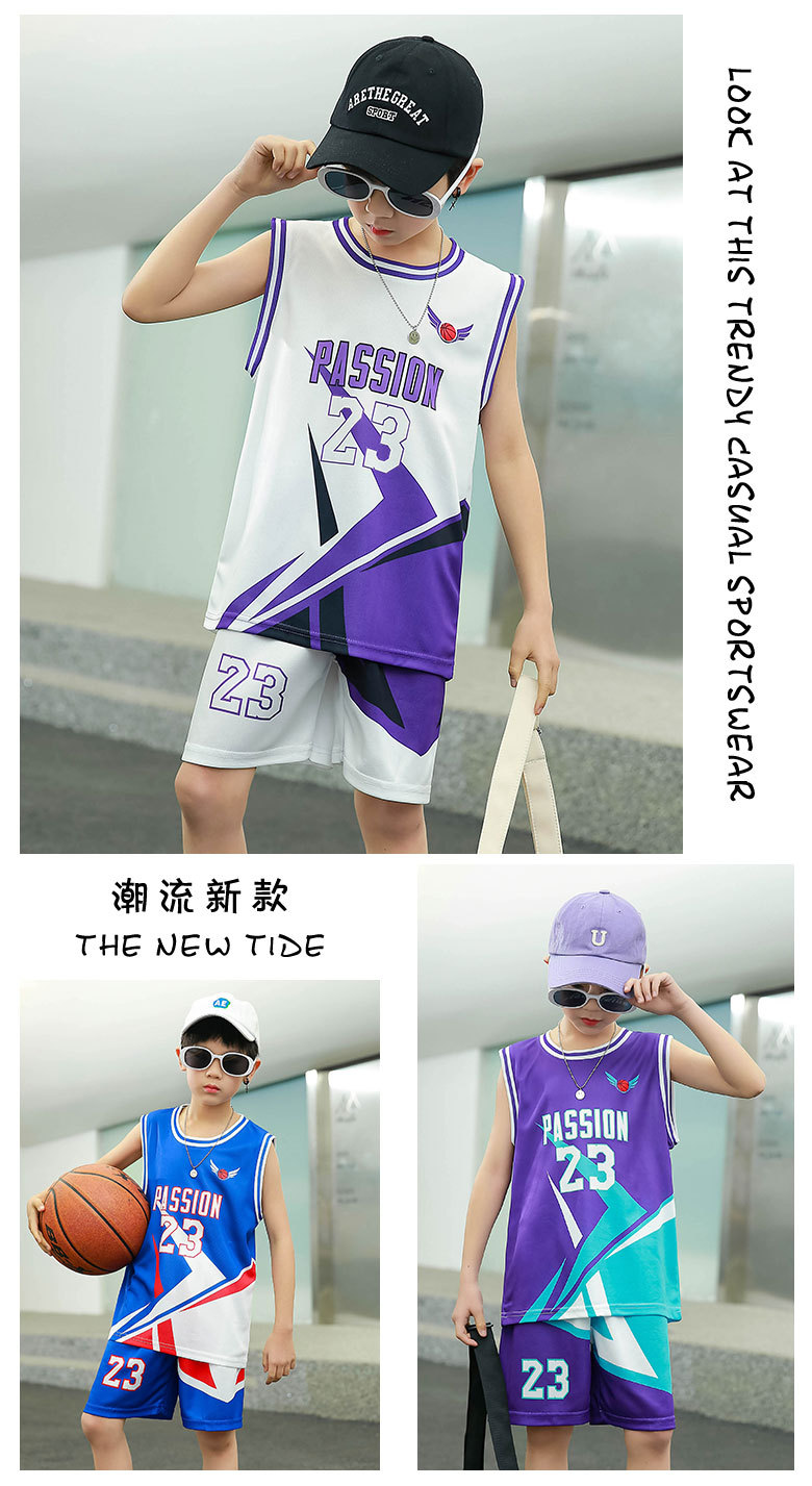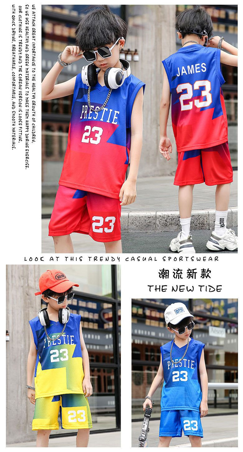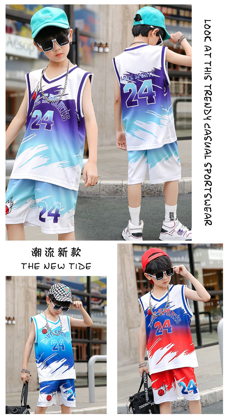 새로운 어린이 농구 옷 세트 소년 여름 조끼 소녀 패션 쿨웨어 그라디언트 야외 캐주얼 운동복